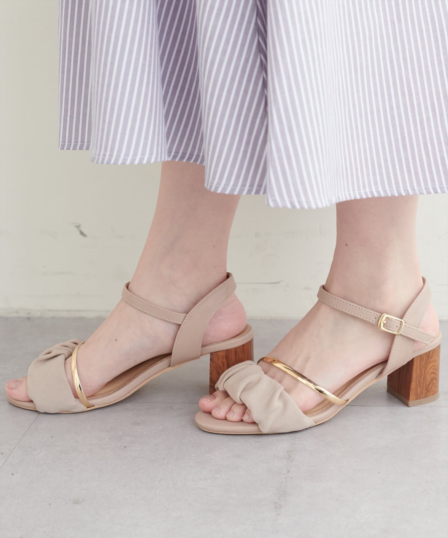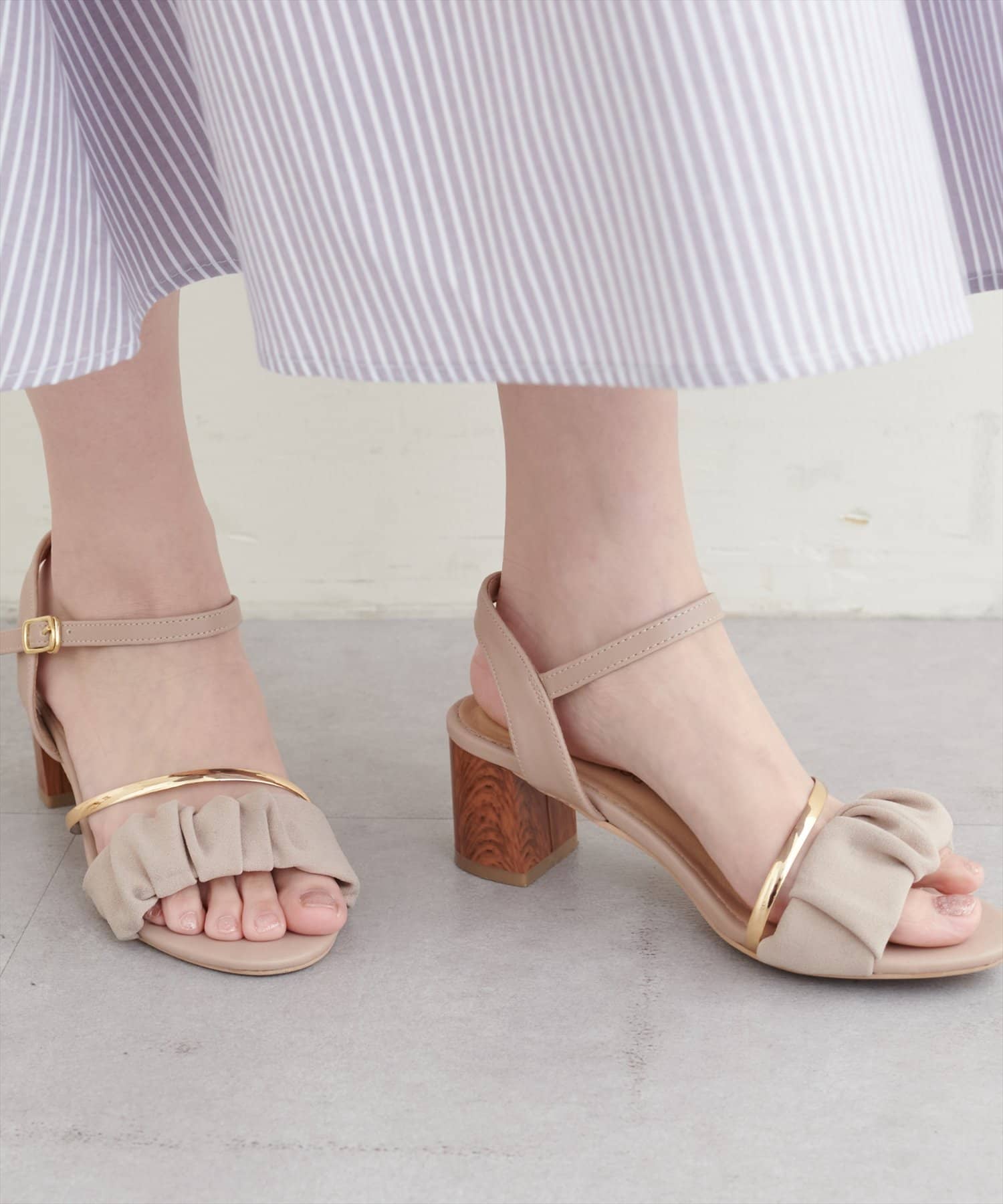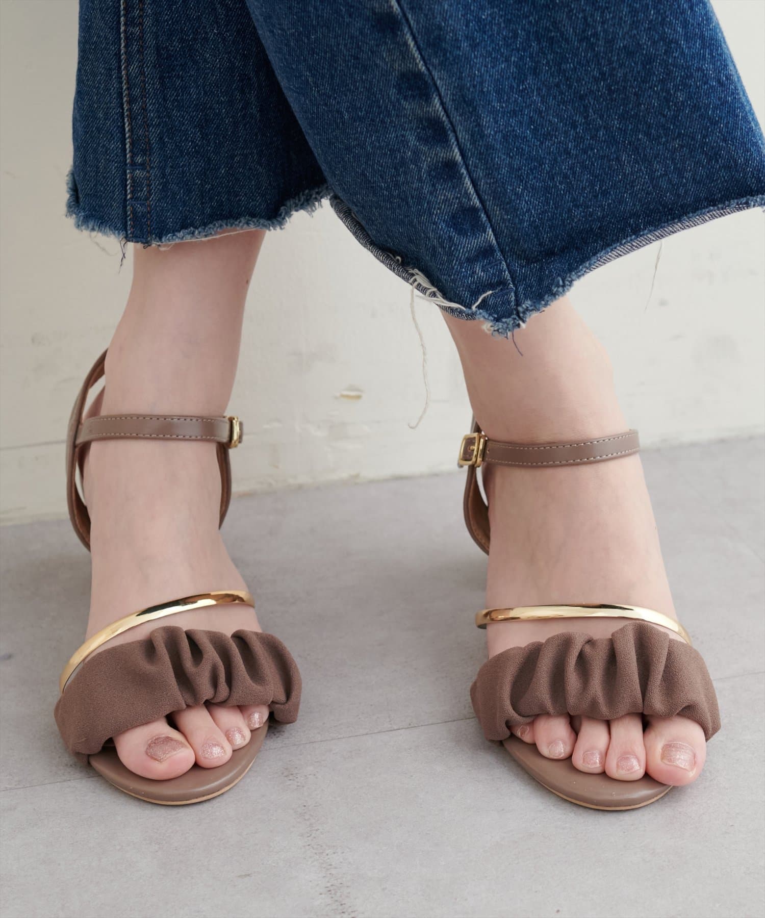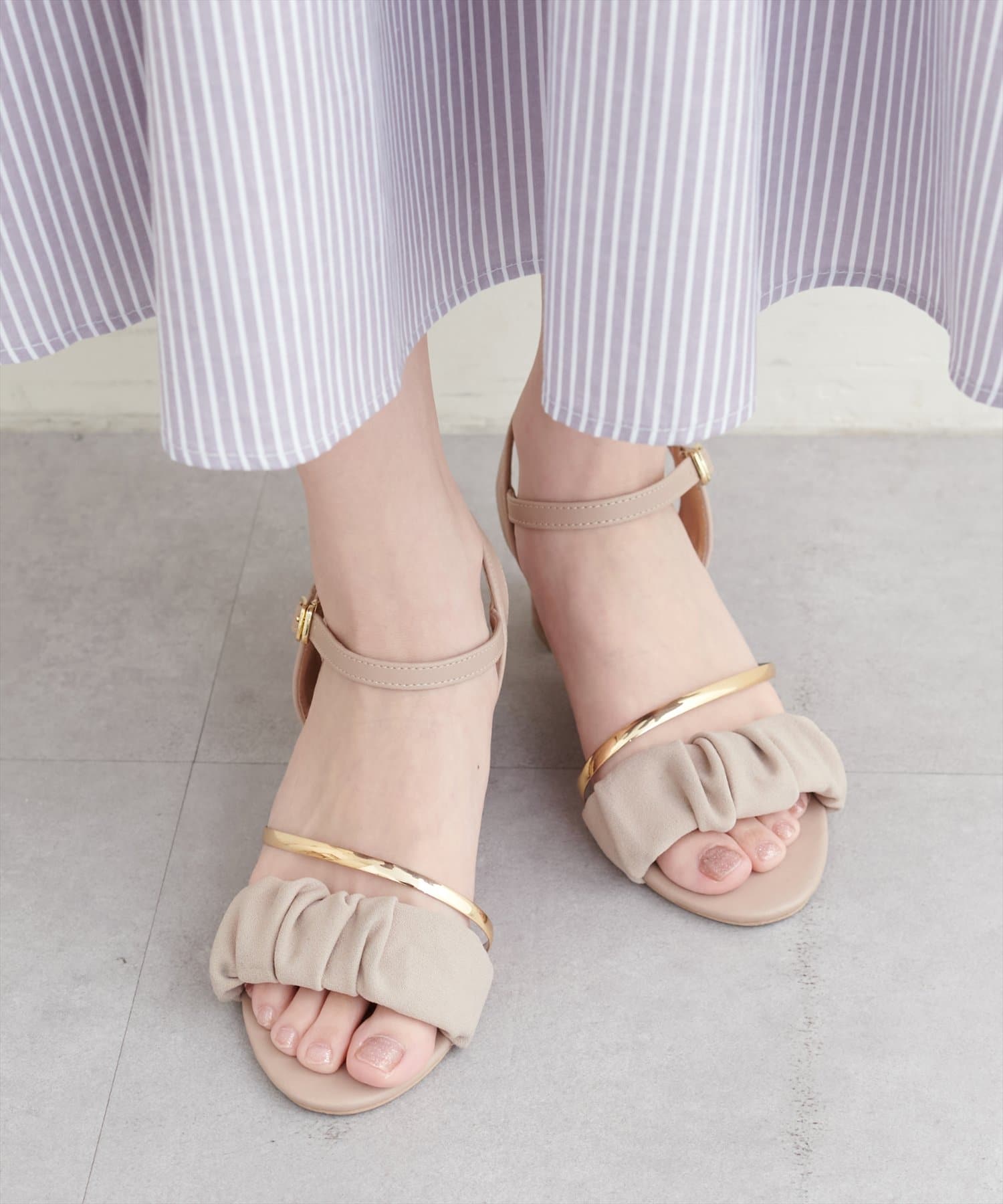 ゴールドライン付きギャザーサンダル