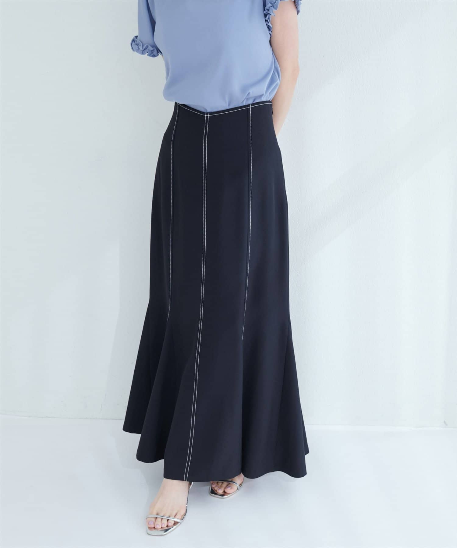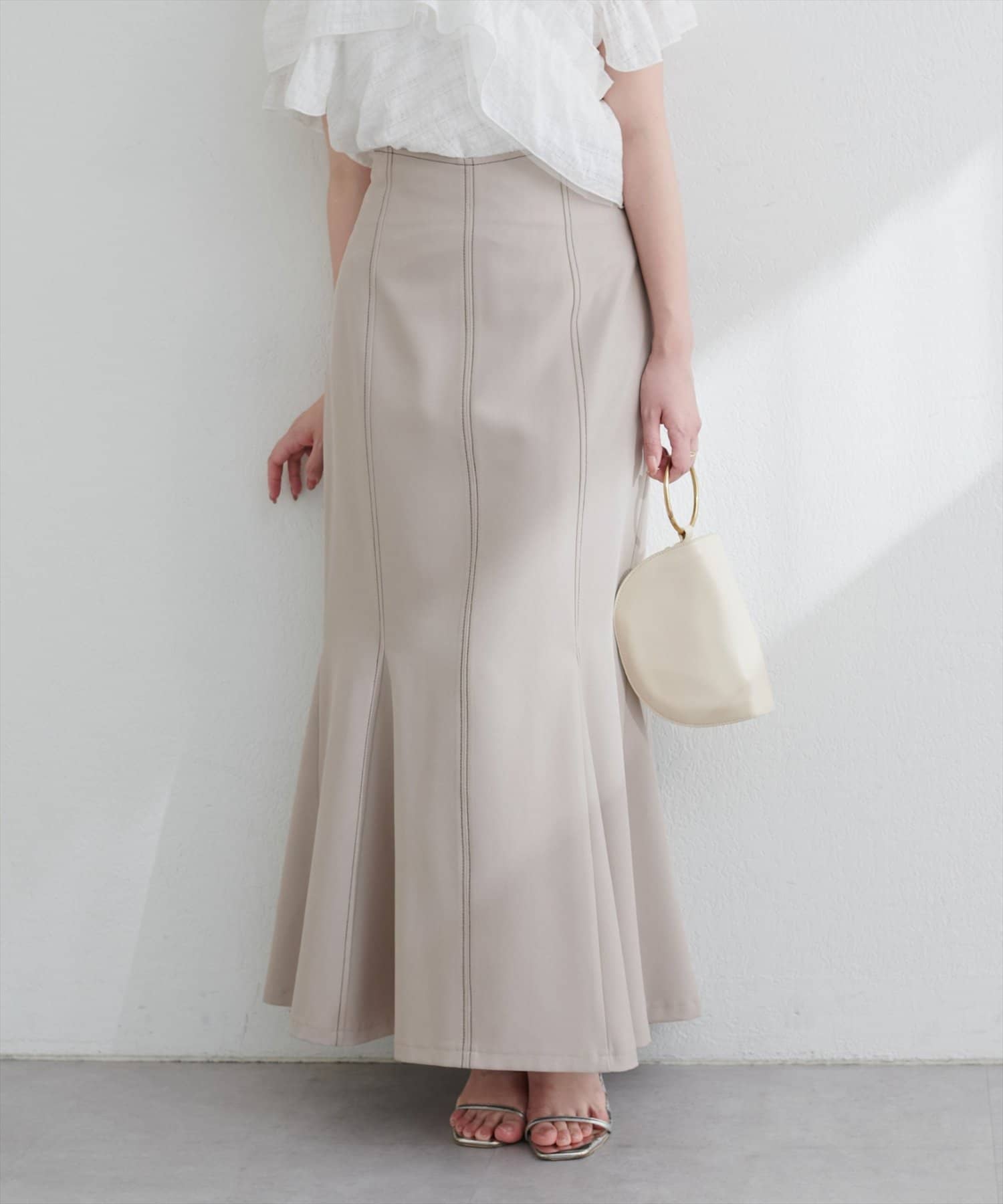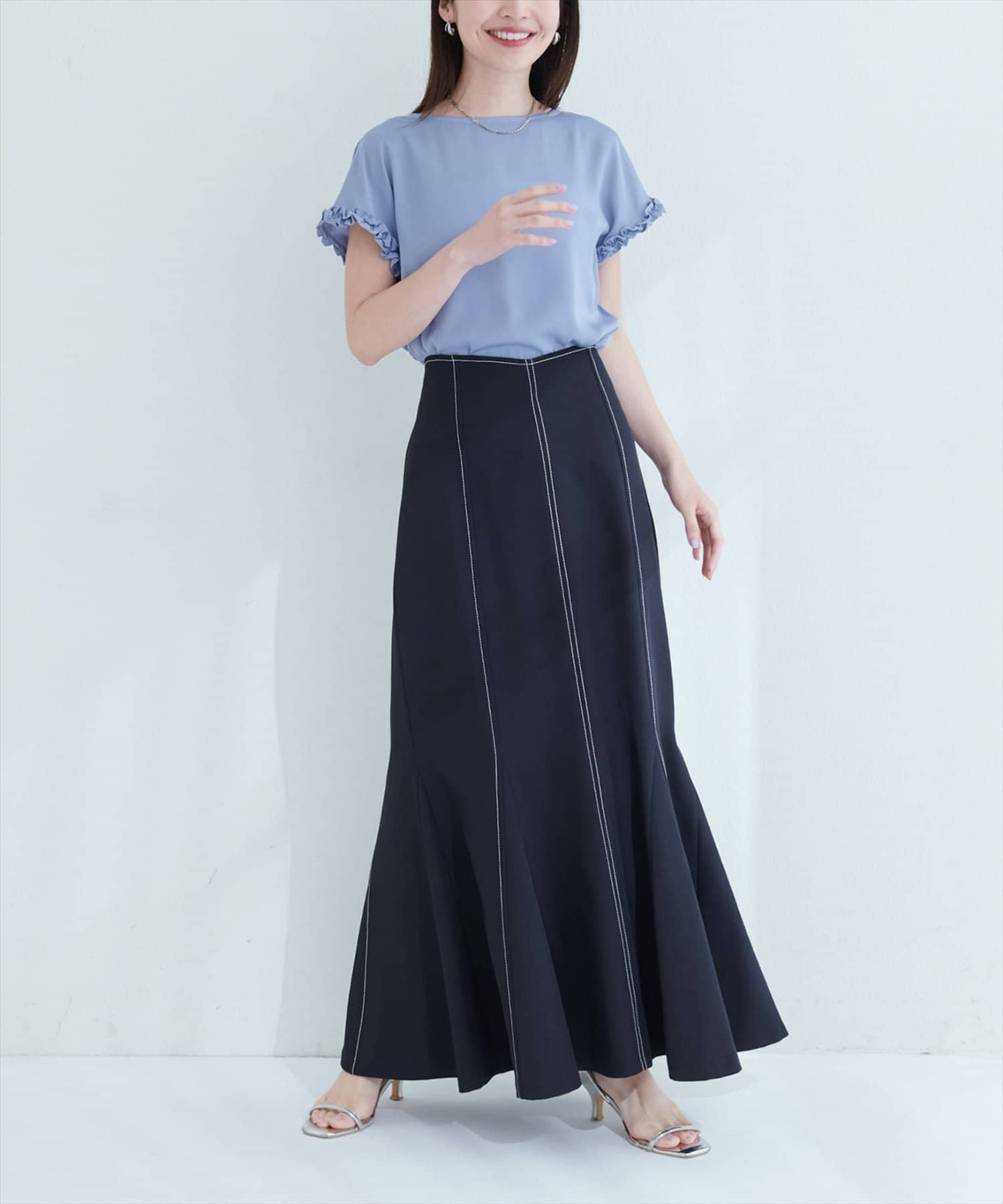 歩くたびに揺れるマーメイドラインが、エレガントで上品な印象を与えます。