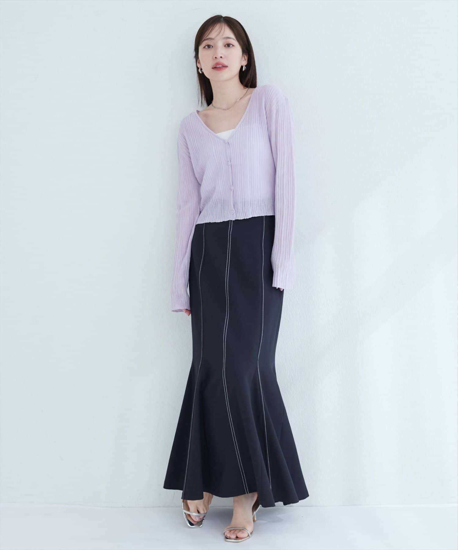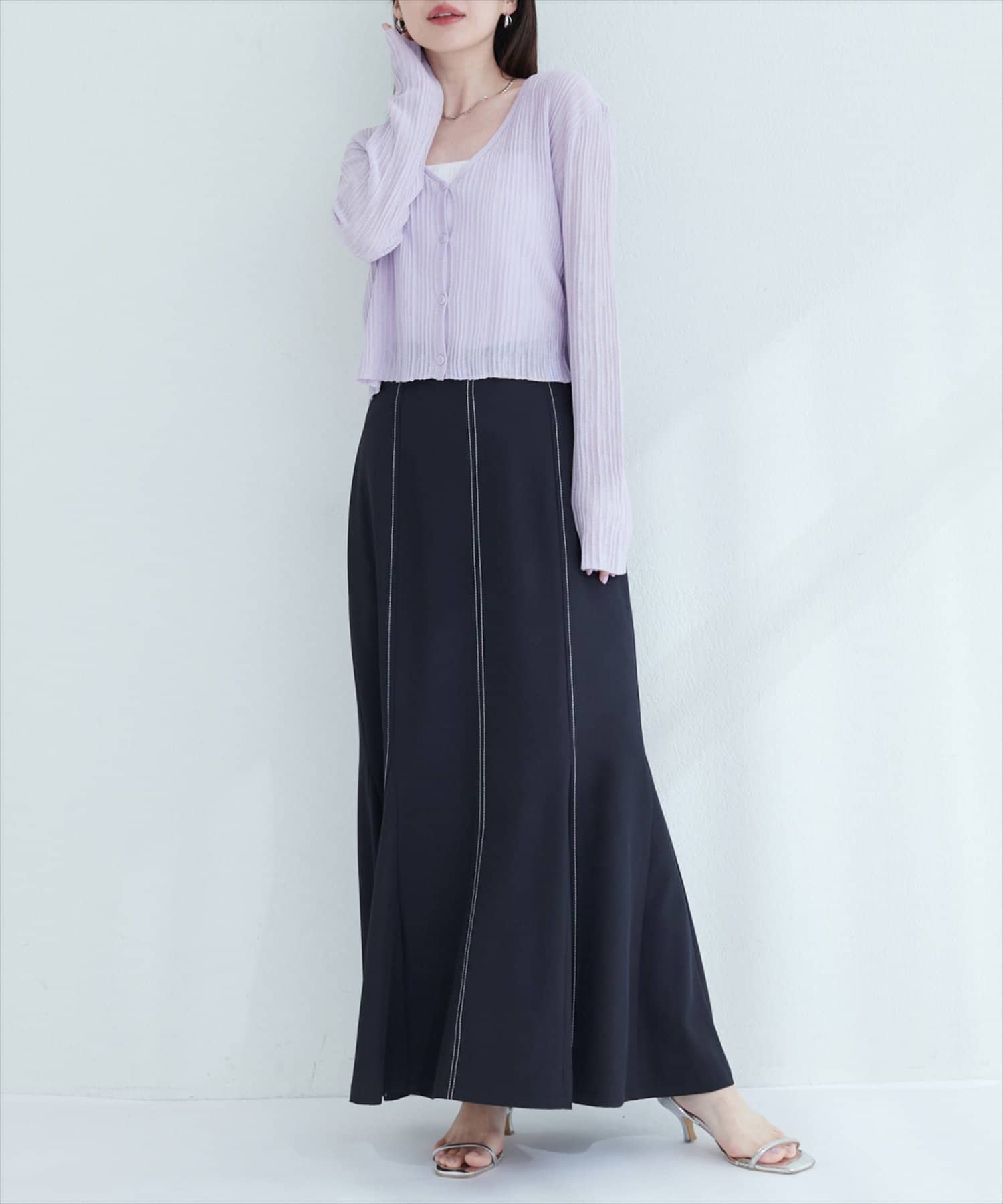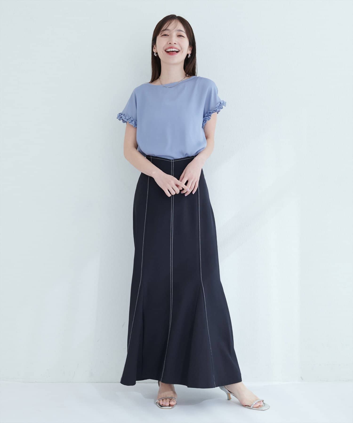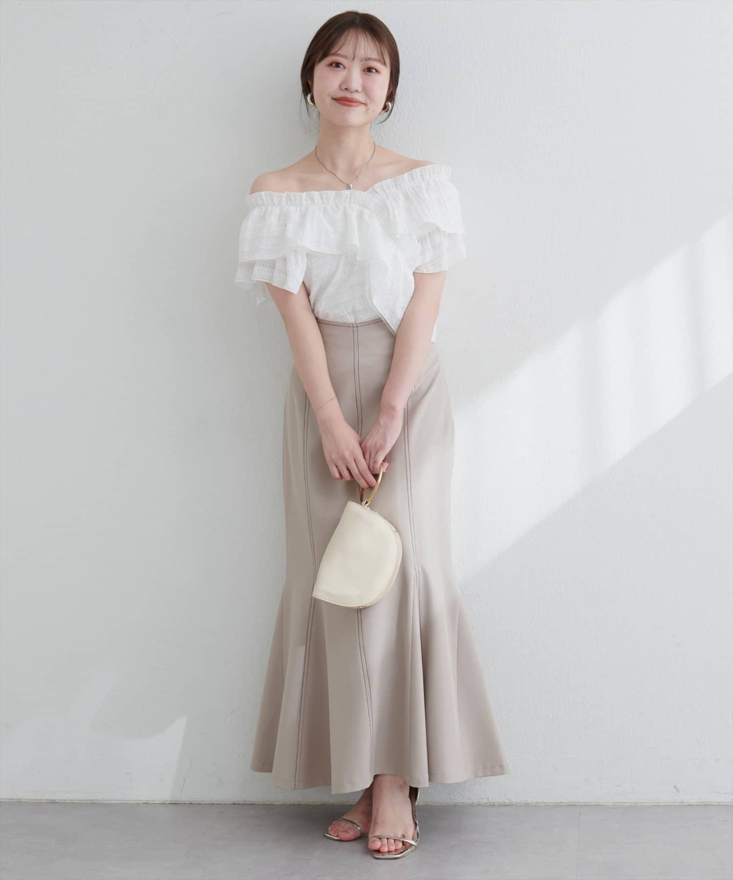歩くたびに揺れるマーメイドラインが、エレガントで上品な印象を与えます。