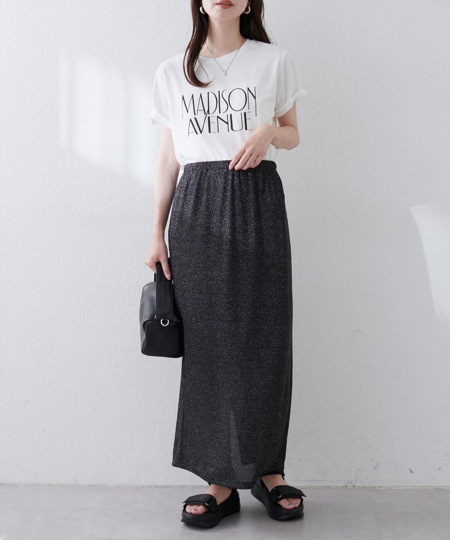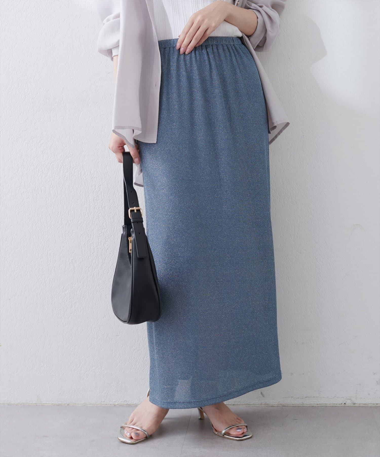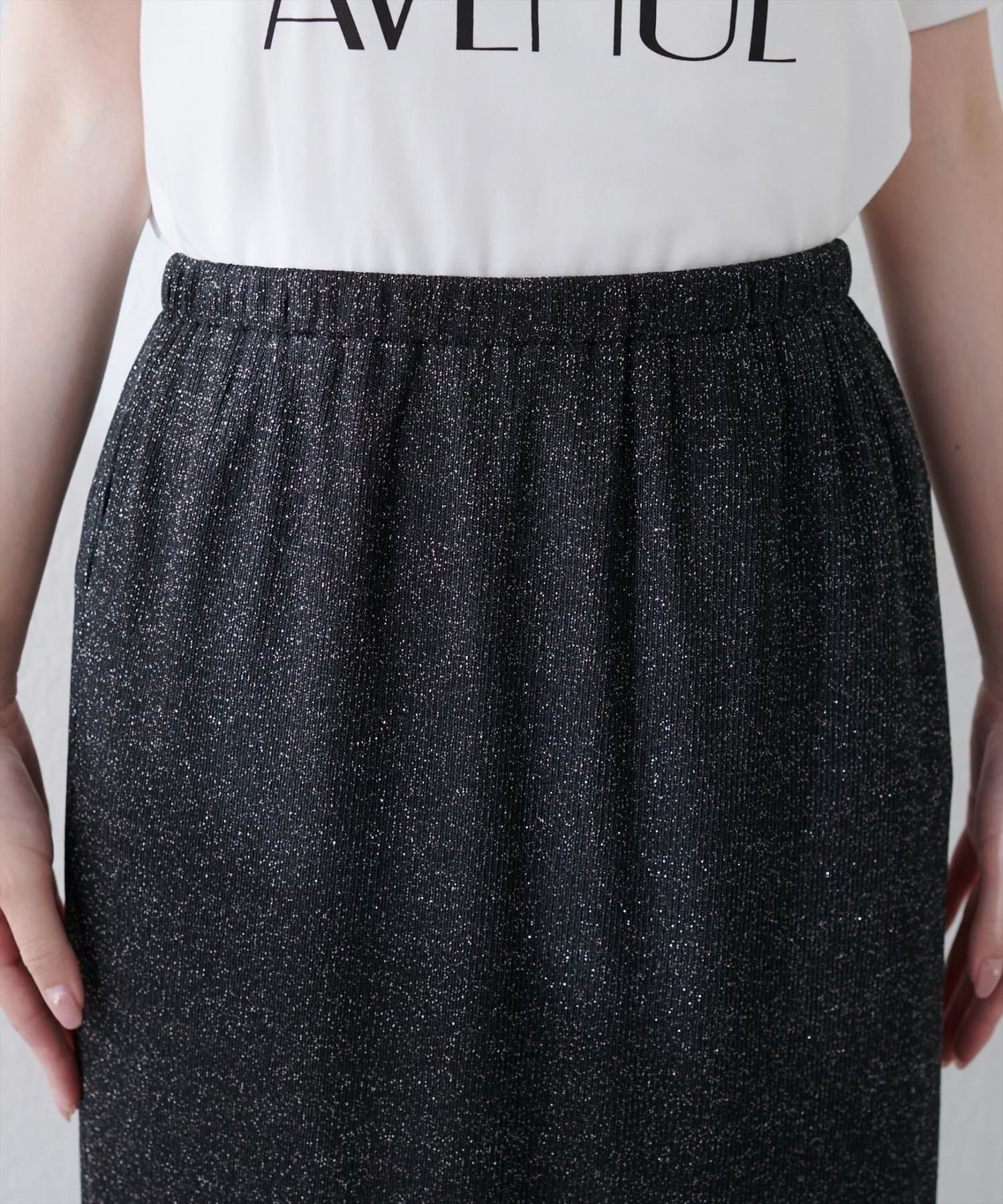 繊細なラメが上品な華やぎを添える、リラックス感のある上品スカート。