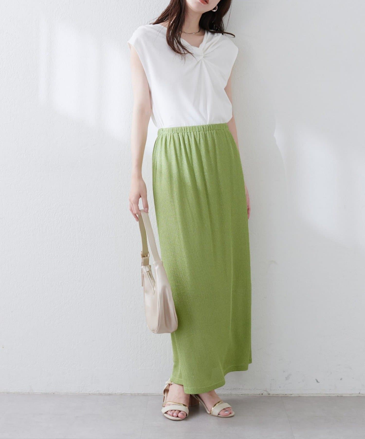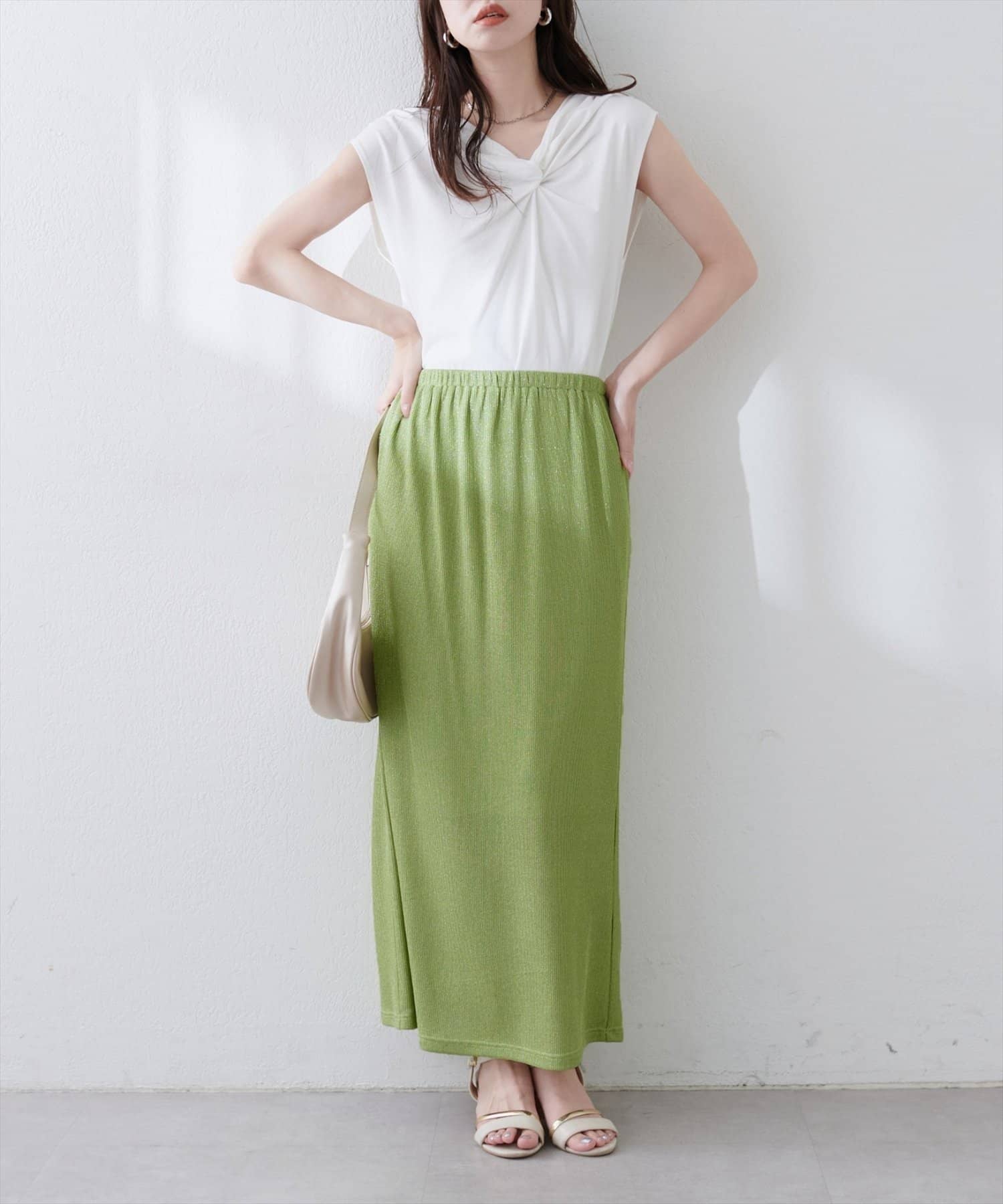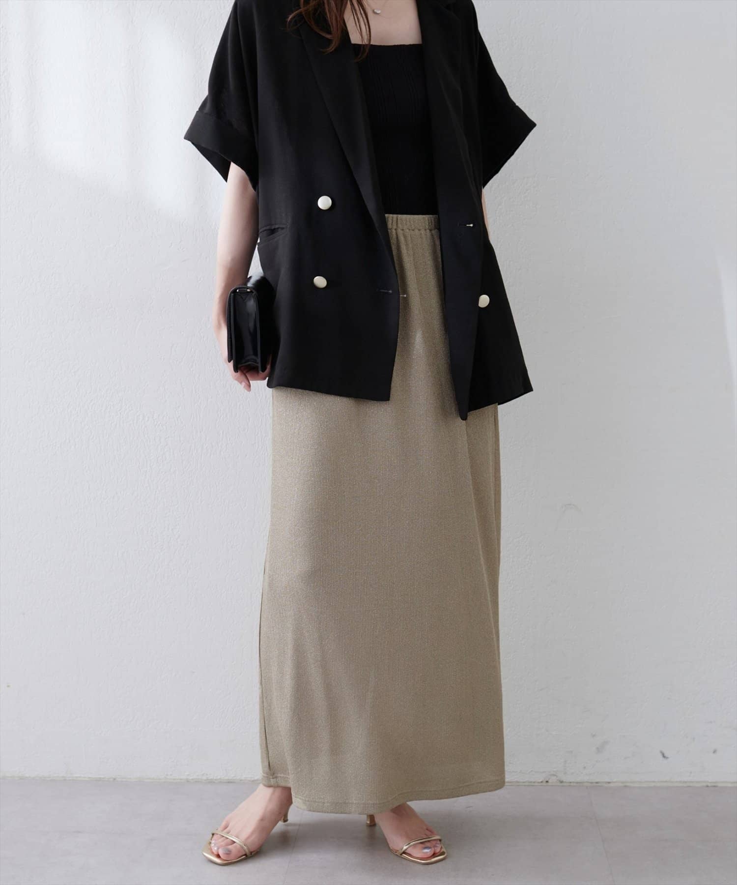 繊細なラメが上品な華やぎを添える、リラックス感のある上品スカート。