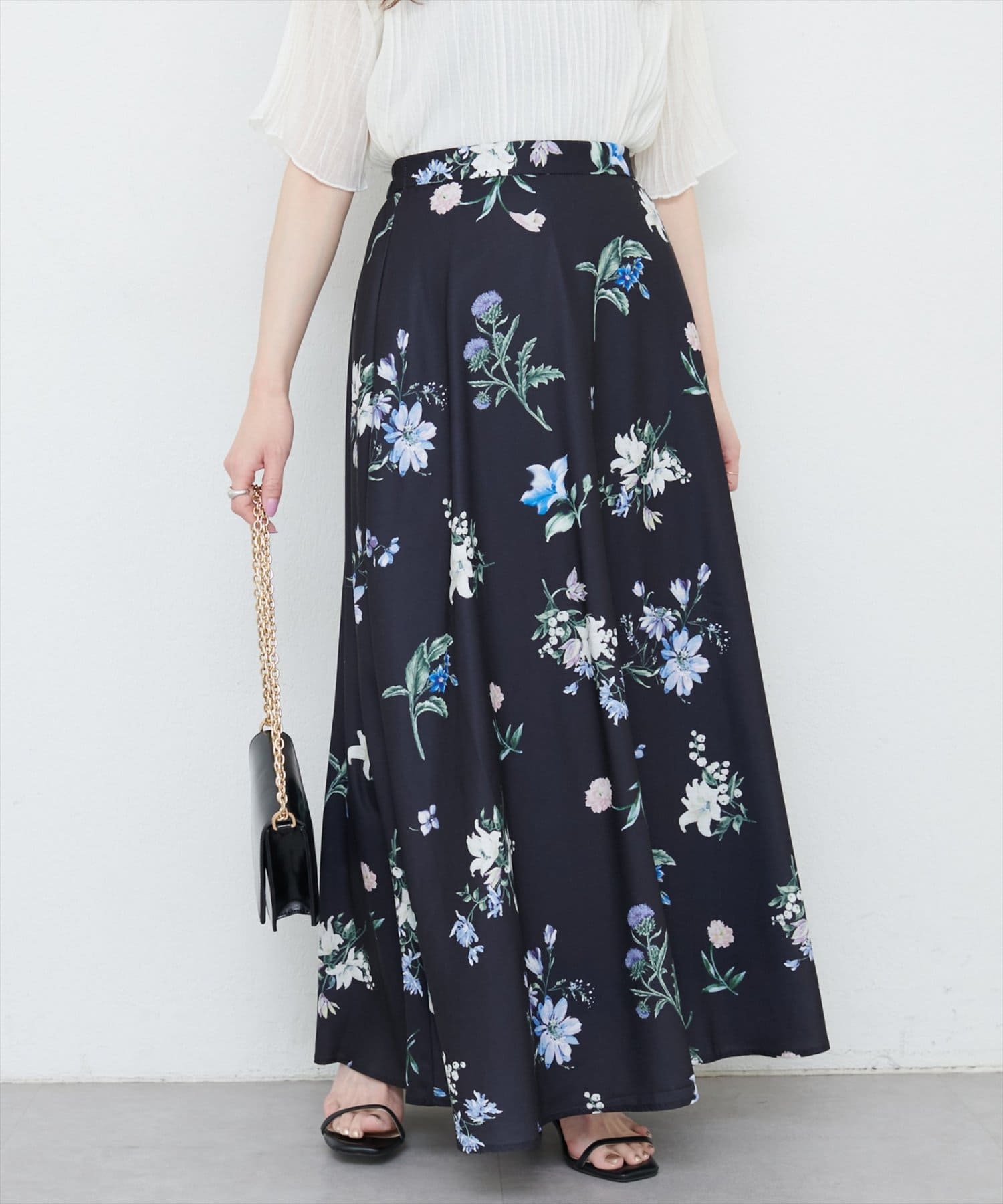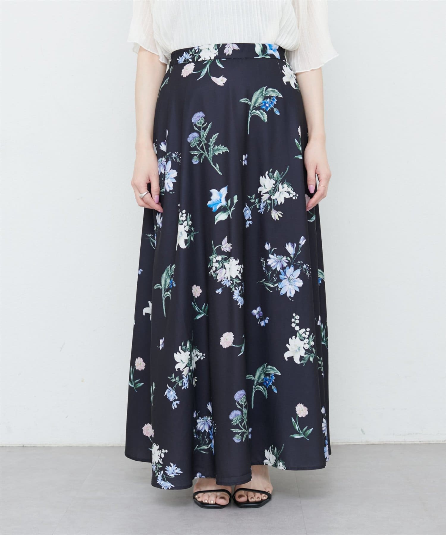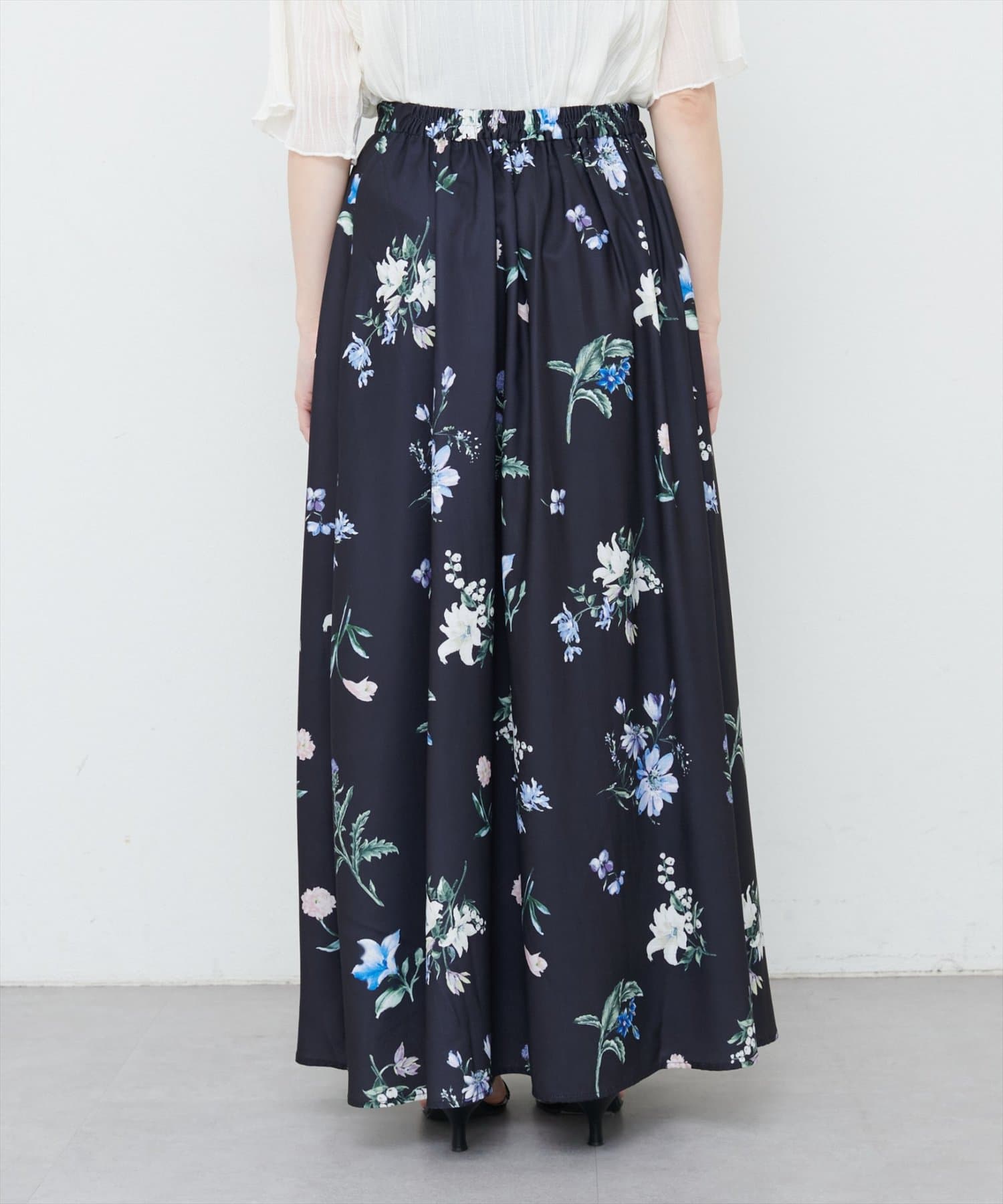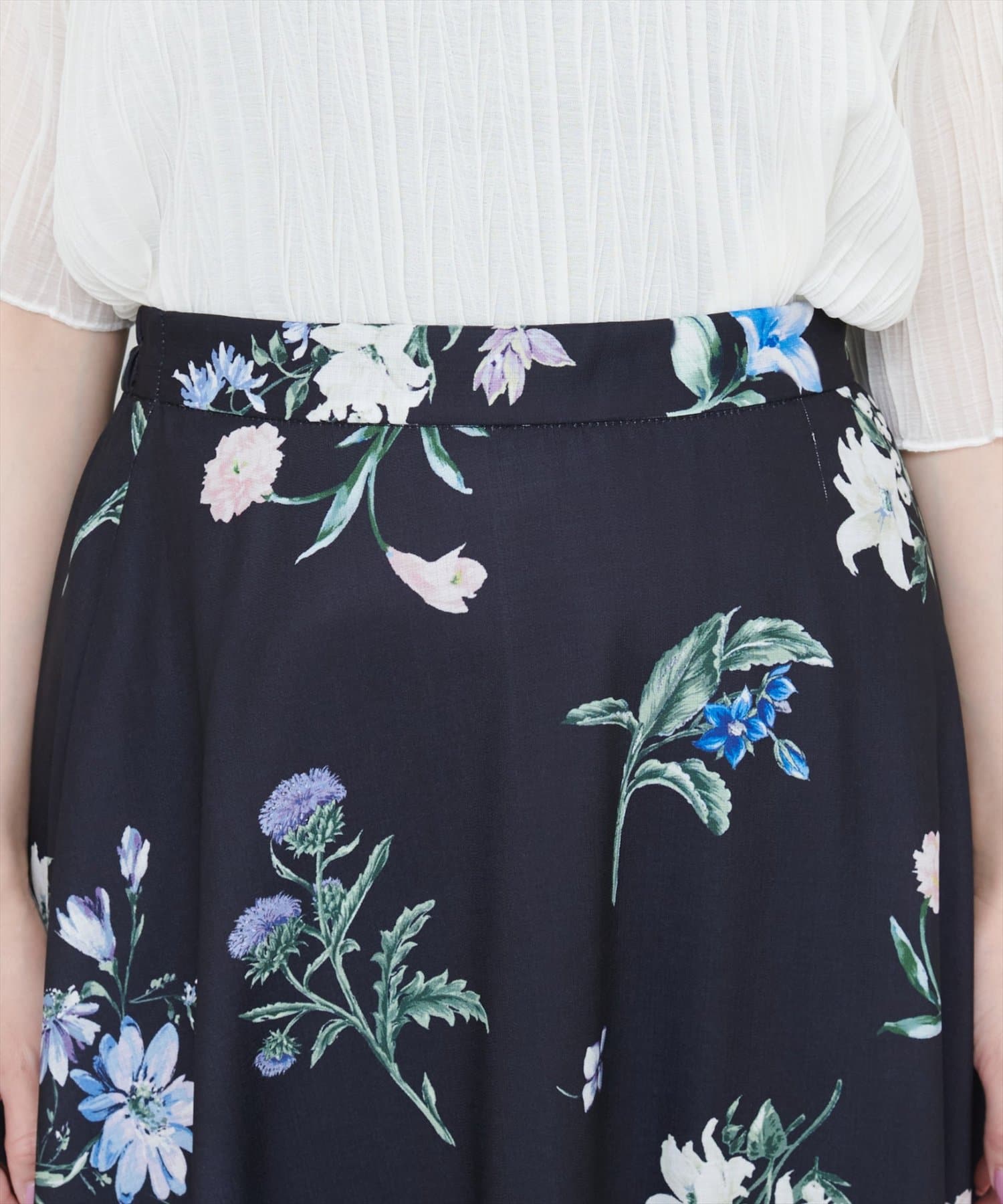 オリジナルの花柄素材をたっぷり使い、一面に咲き誇る繊細な花柄が美しいスカート。