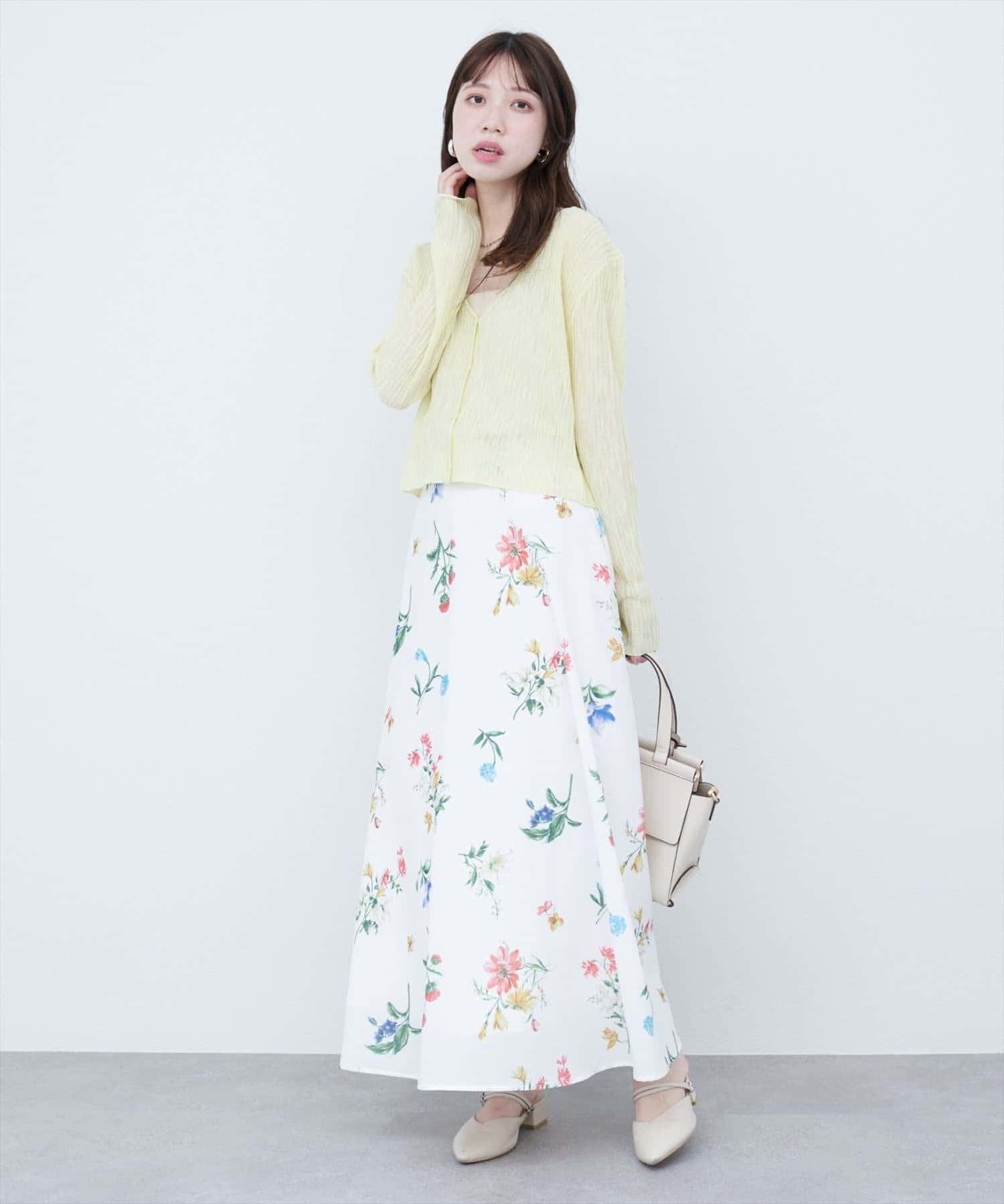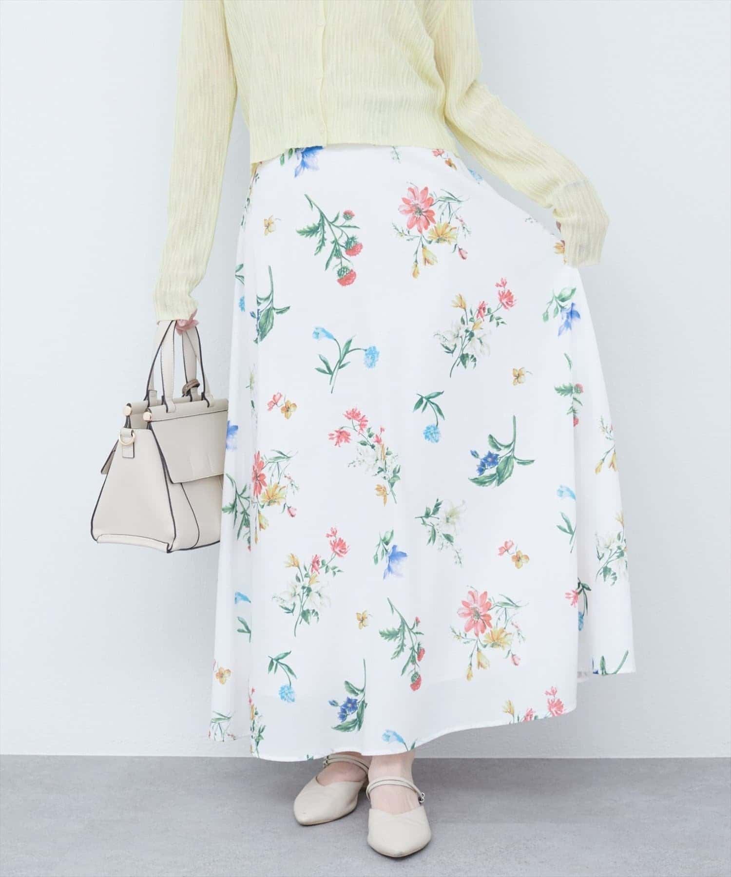 オリジナルの花柄素材をたっぷり使い、一面に咲き誇る繊細な花柄が美しいスカート。