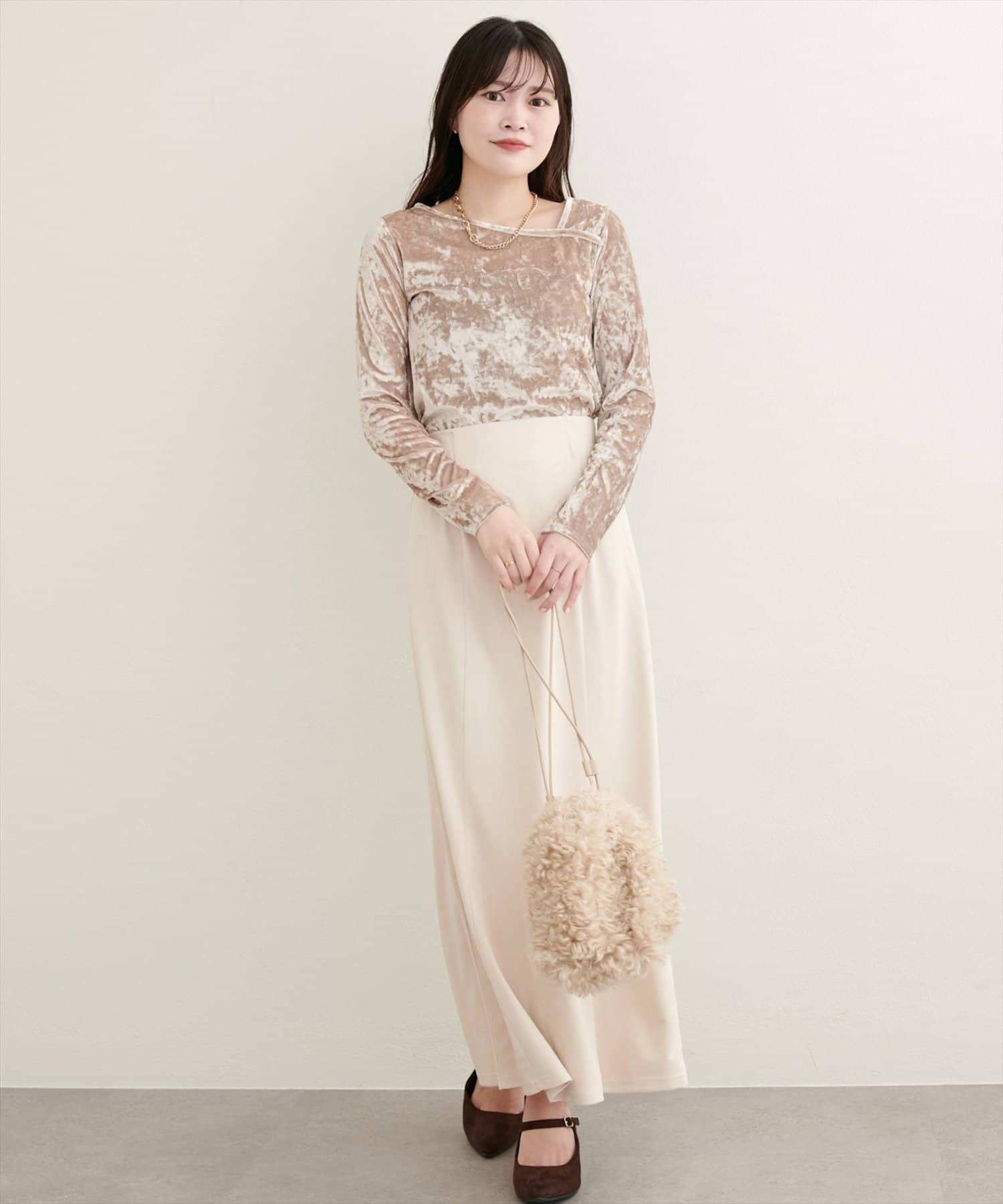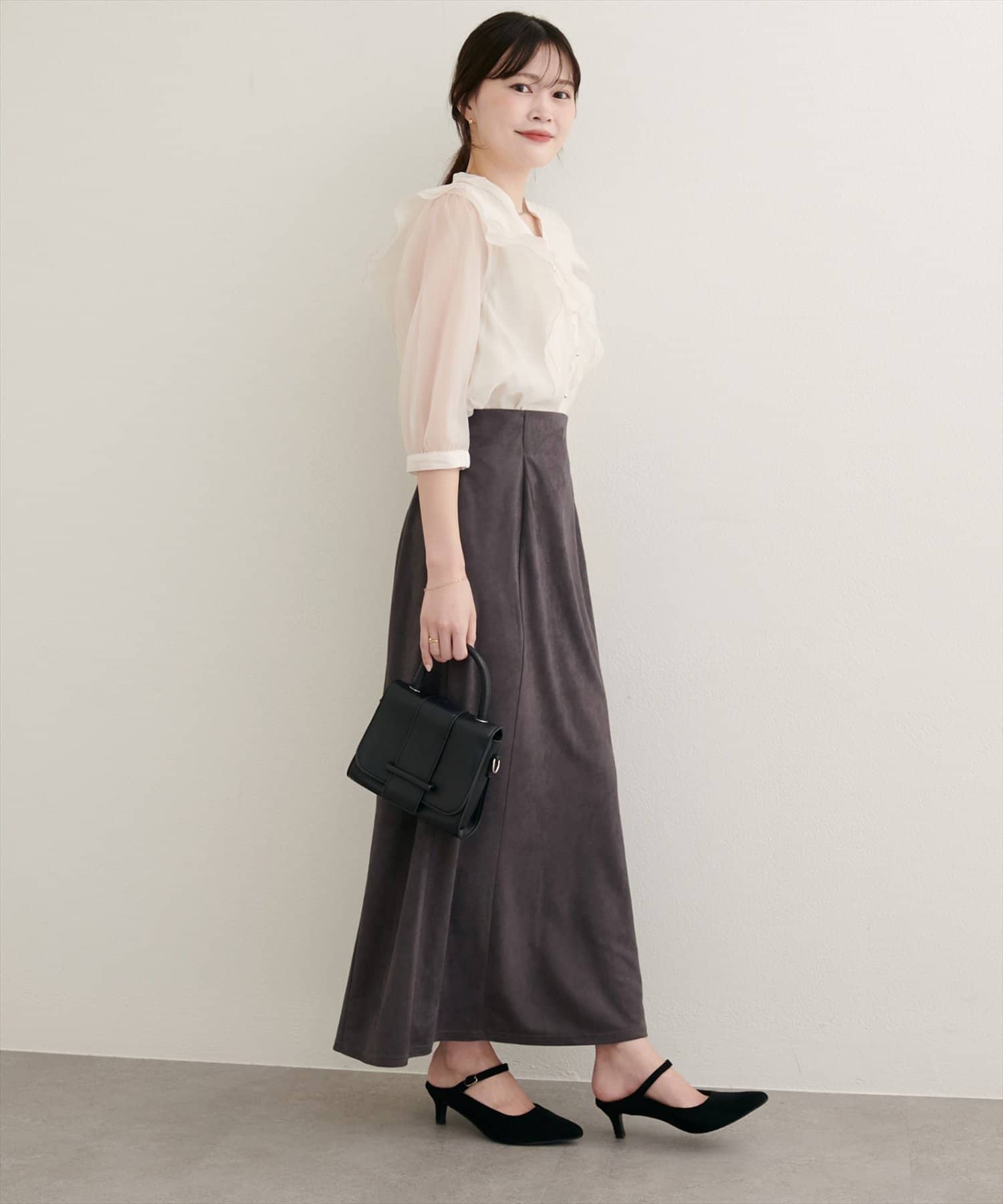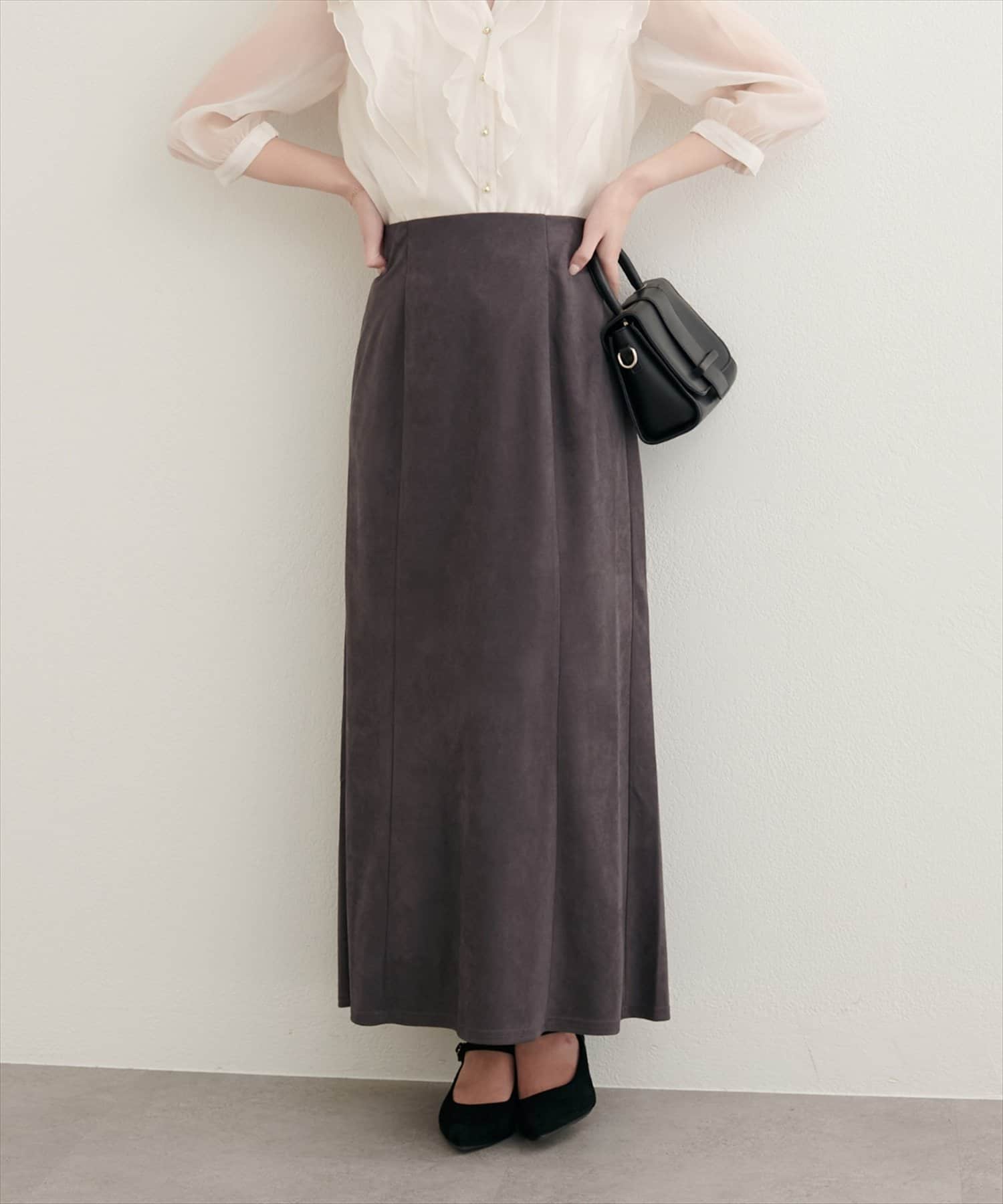 上品な雰囲気と滑らかな肌触りが魅力のスウェードマーメイドスカート。
