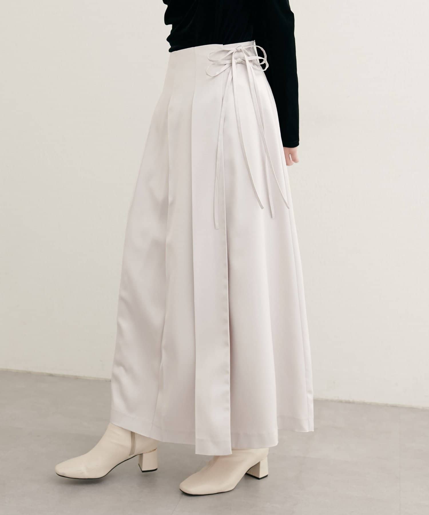 動くたびに揺れる裾が、女性らしさを引き立てる一枚です。