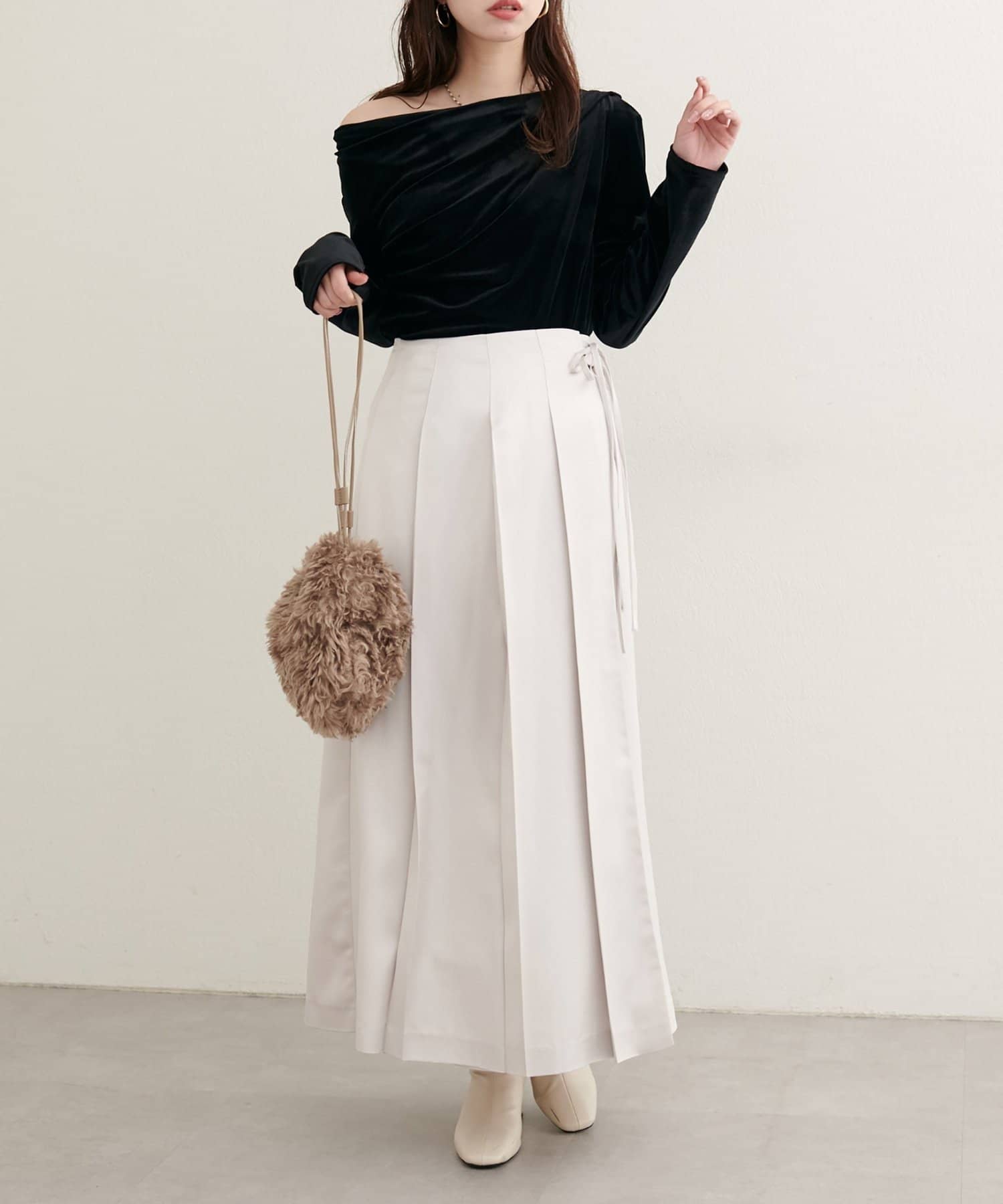 プリーツ加工を施すことで、エレガントで洗練された印象をプラス。