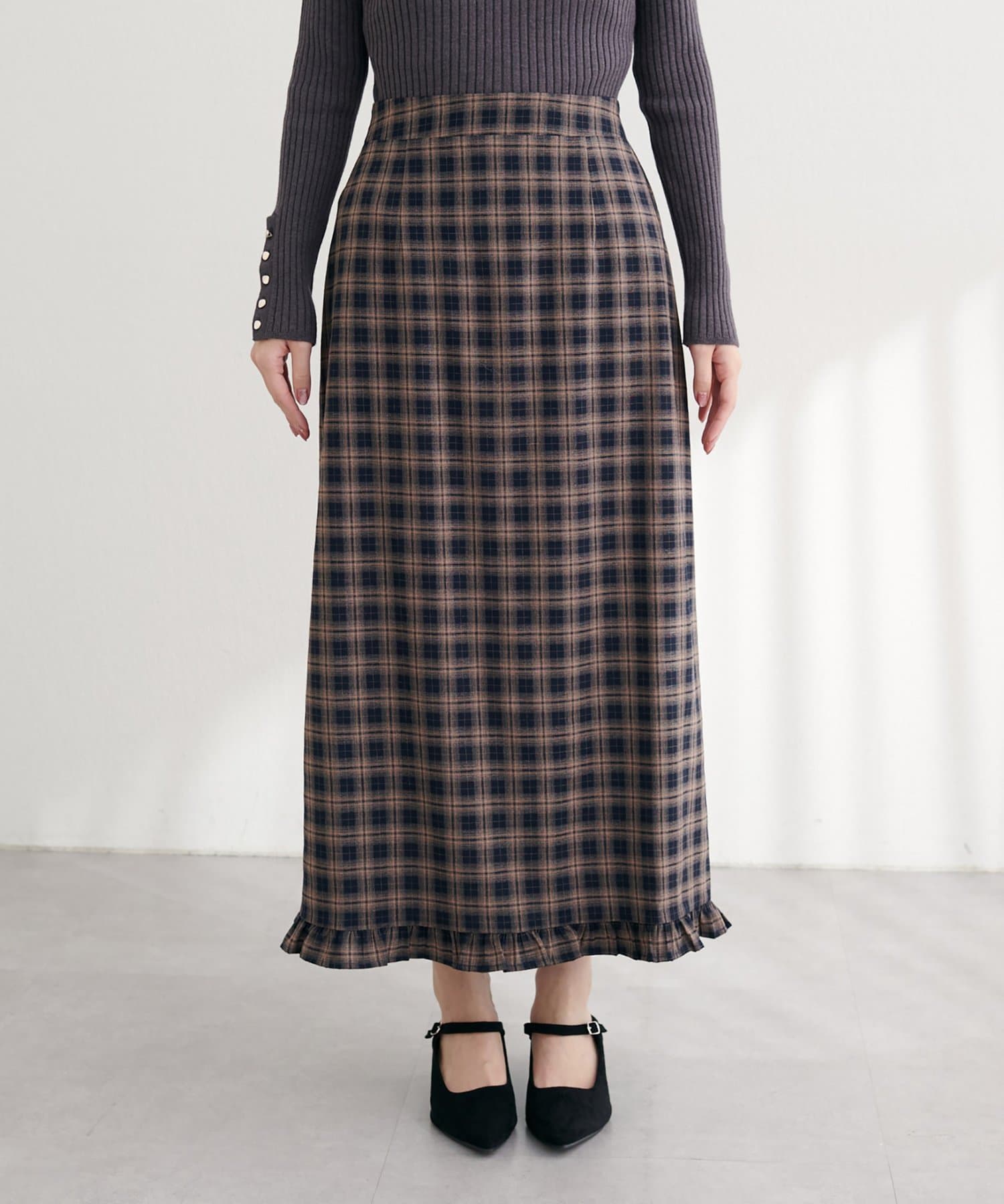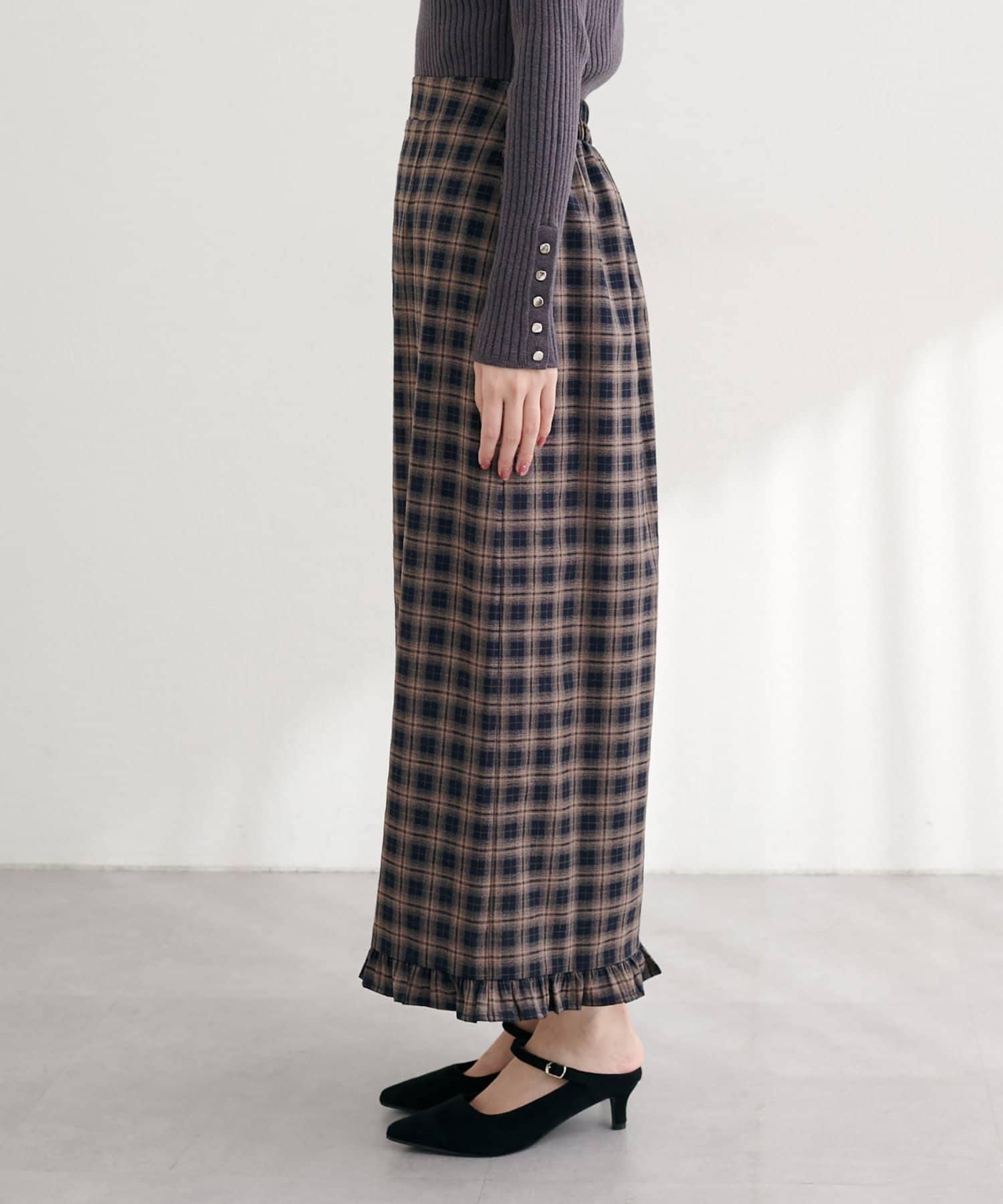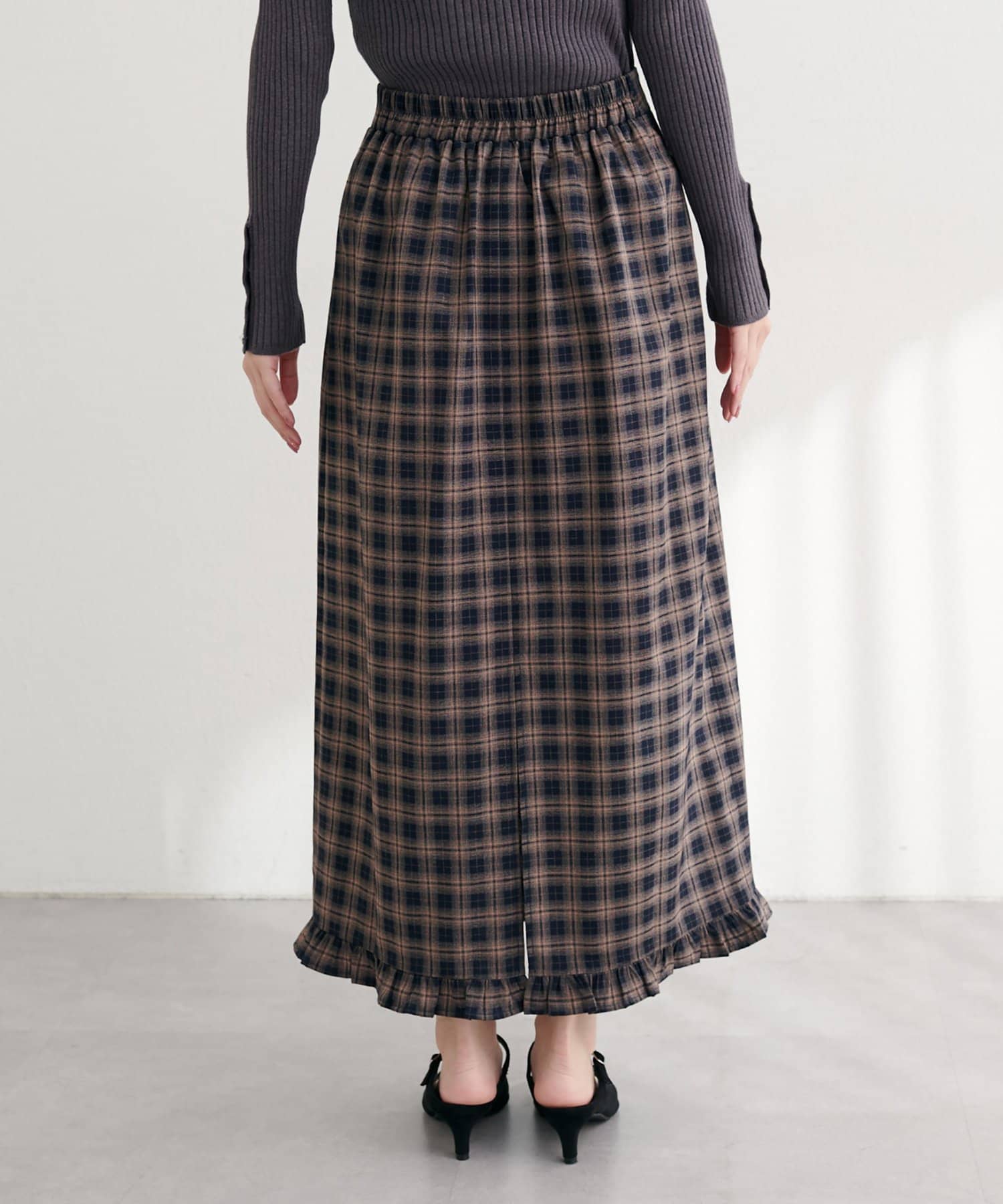 【WEB限定】裾フリルチェック柄スカート