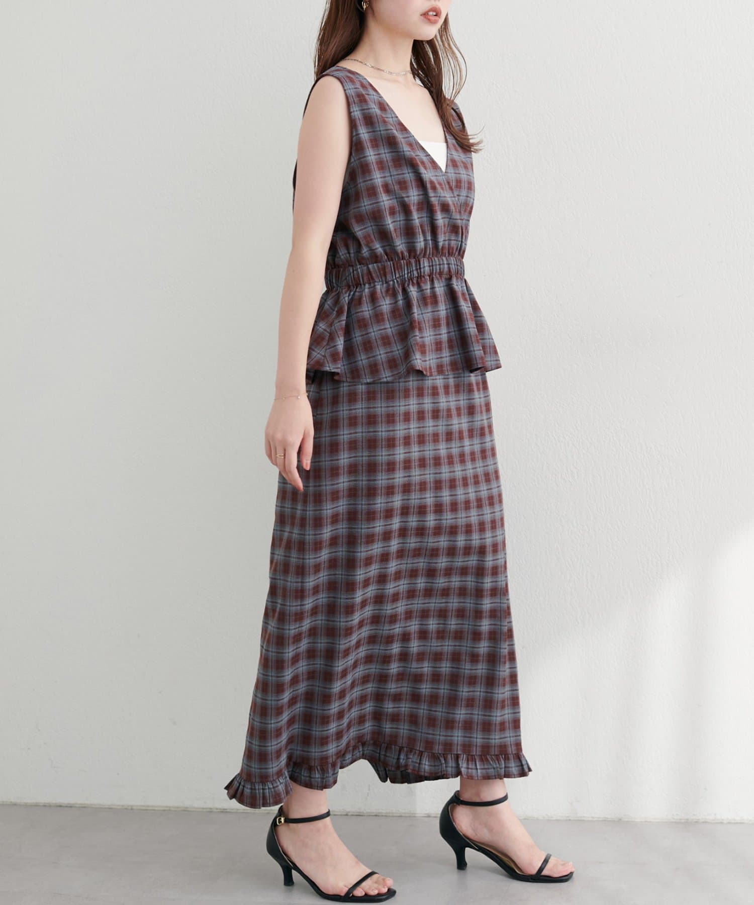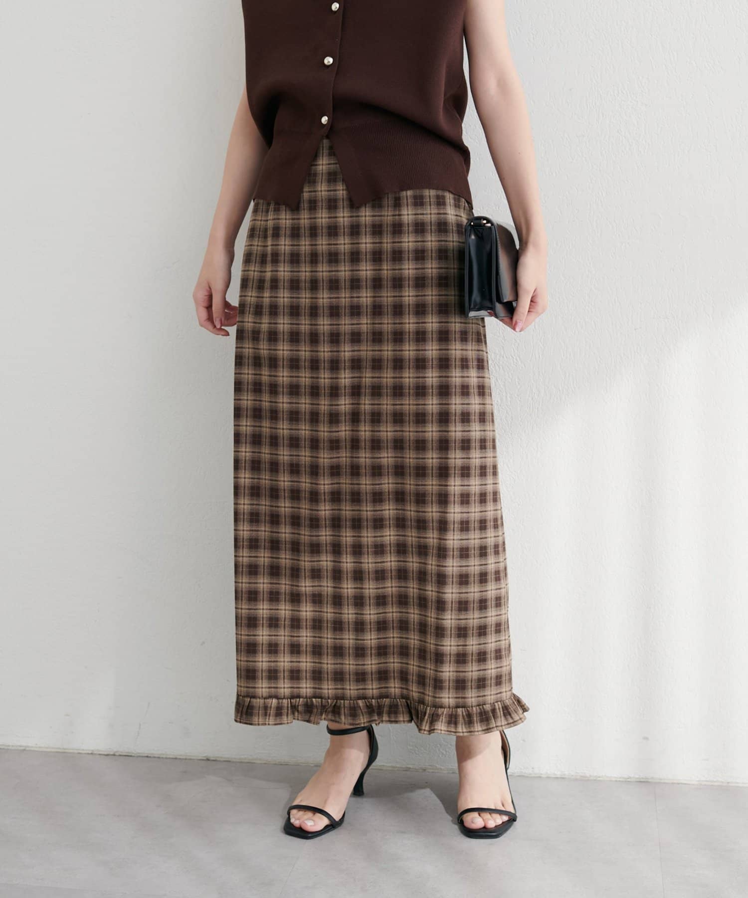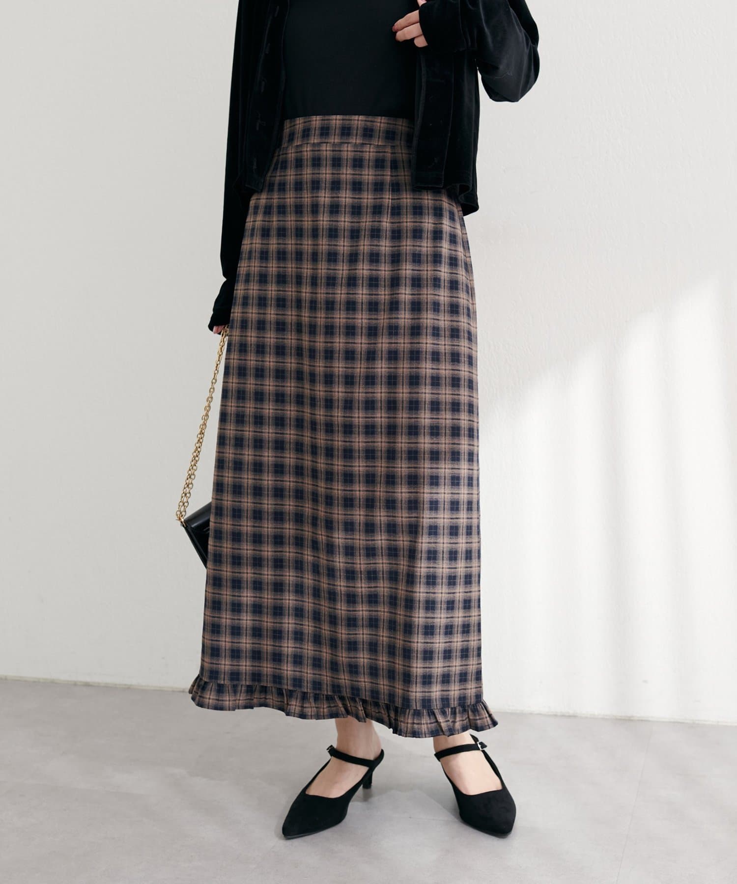 【WEB限定】裾フリルチェック柄スカート