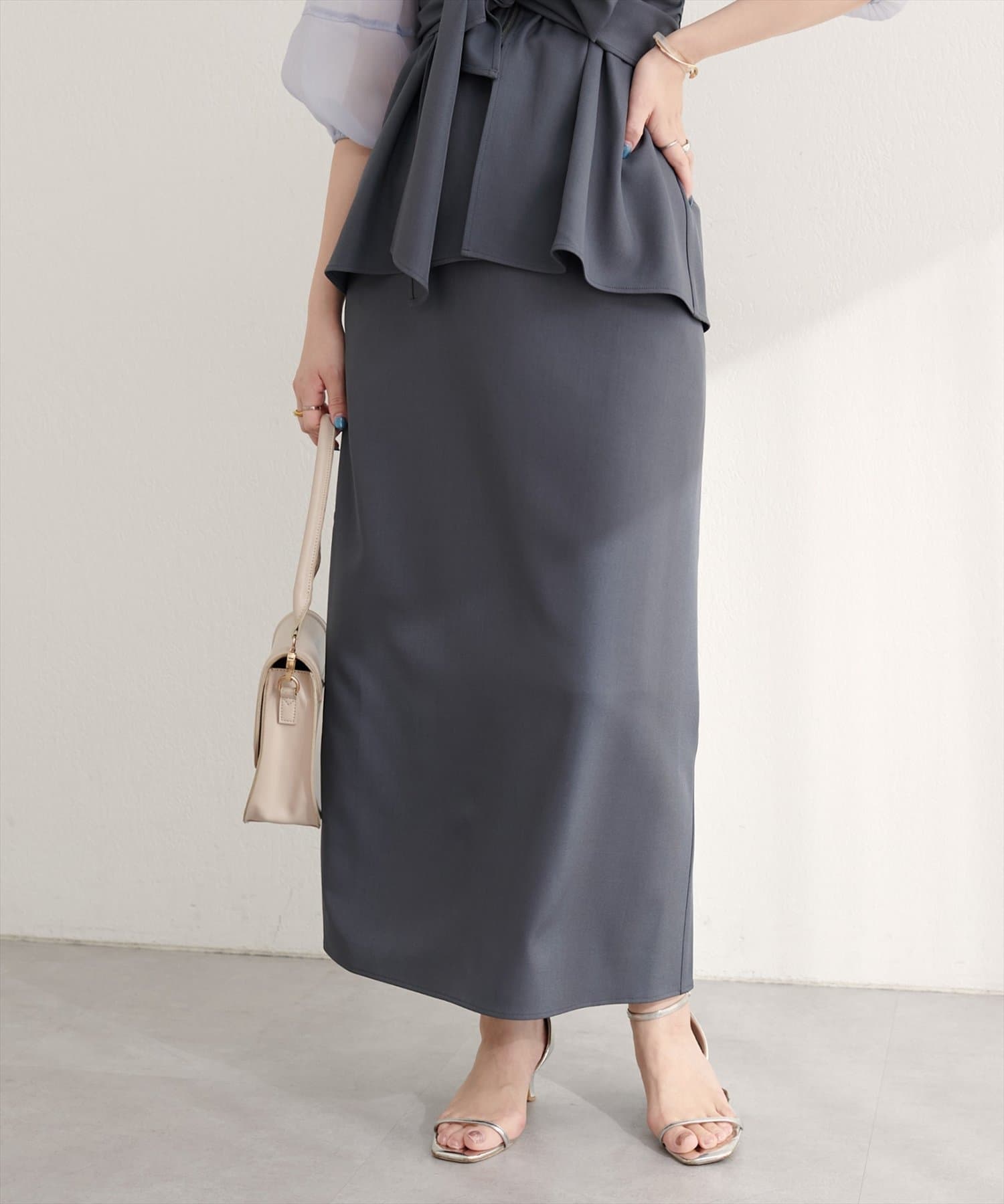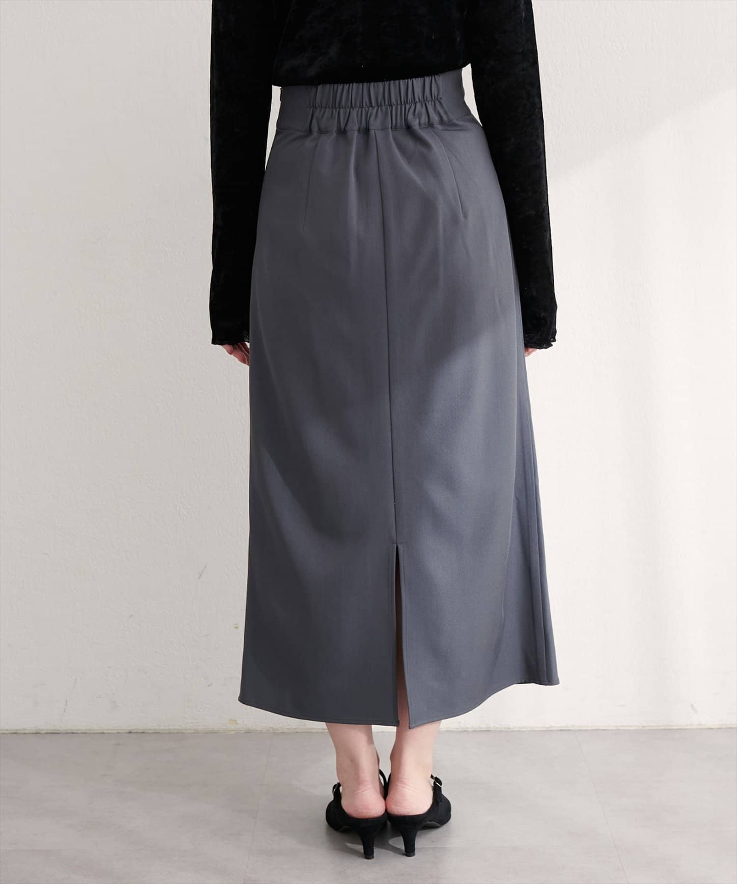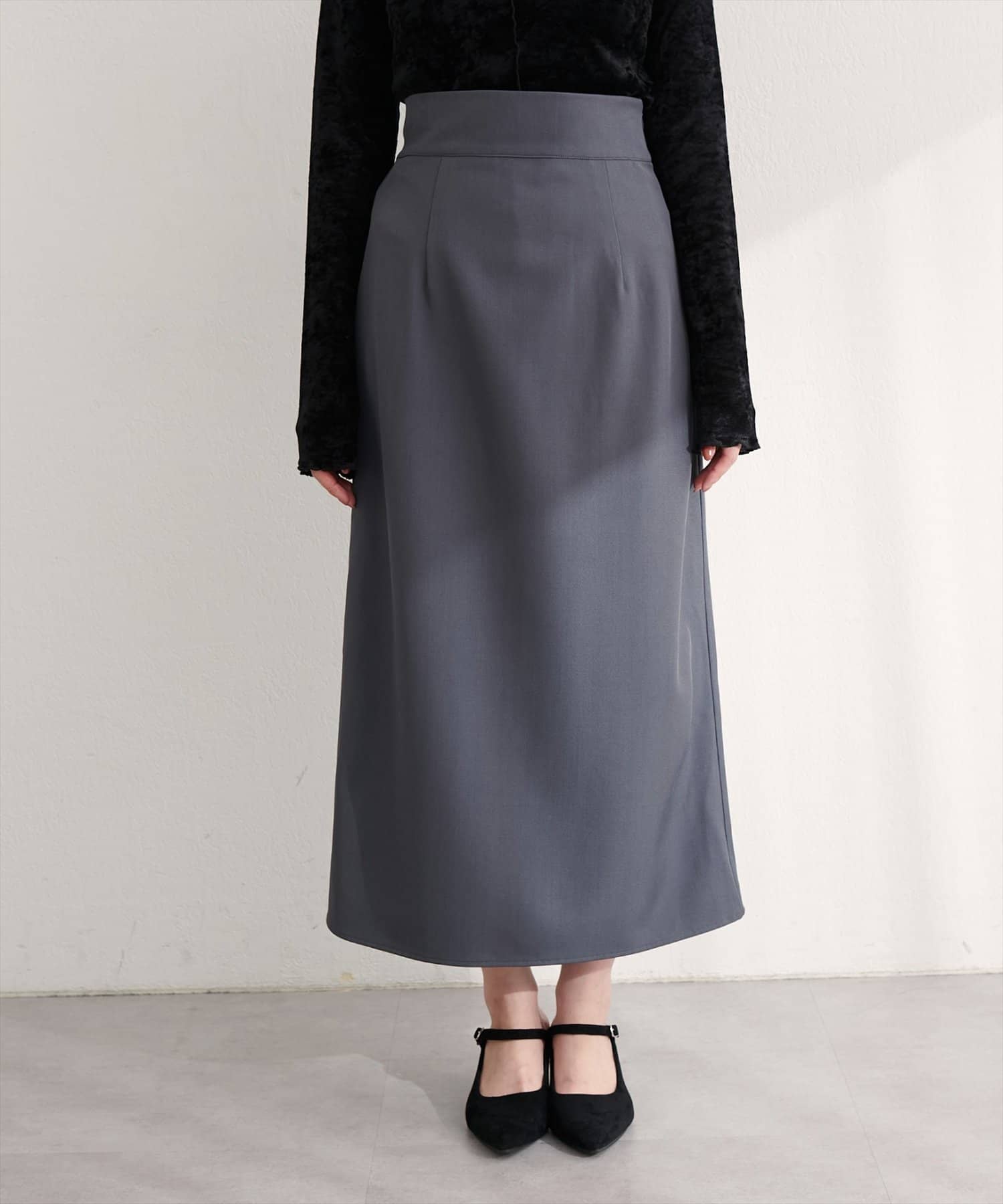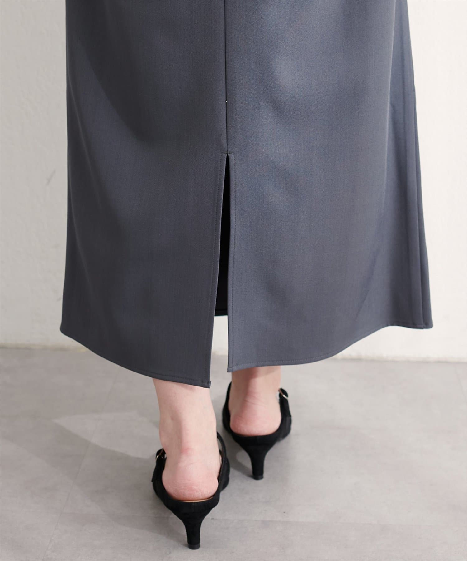スカートはIラインシルエットなので、すっきりとした印象に。