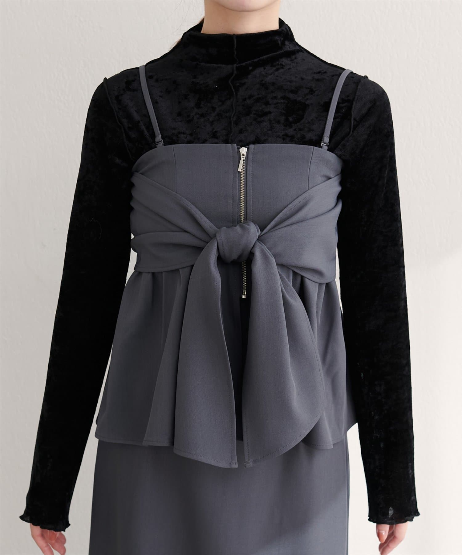 ビスチェの存在感で、普段の着こなしがぐっとスタイリッシュに。