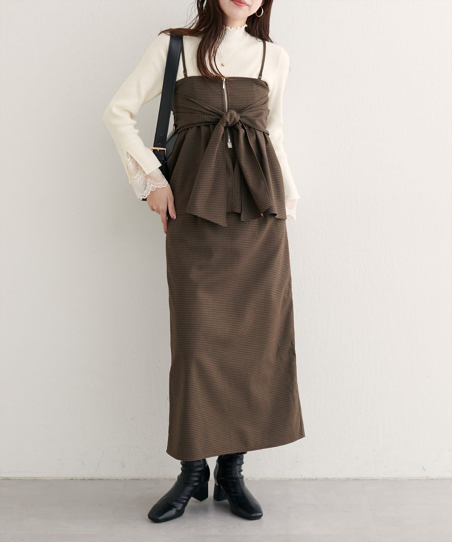 一点投入でこなれ感溢れる、着回し力抜群の2WAYビスチェ付きスカート。