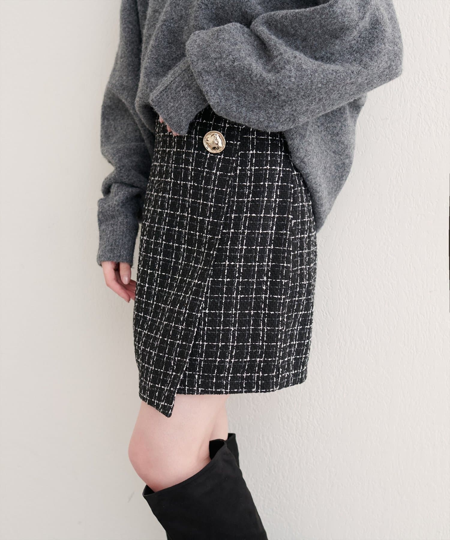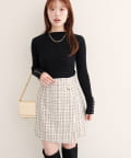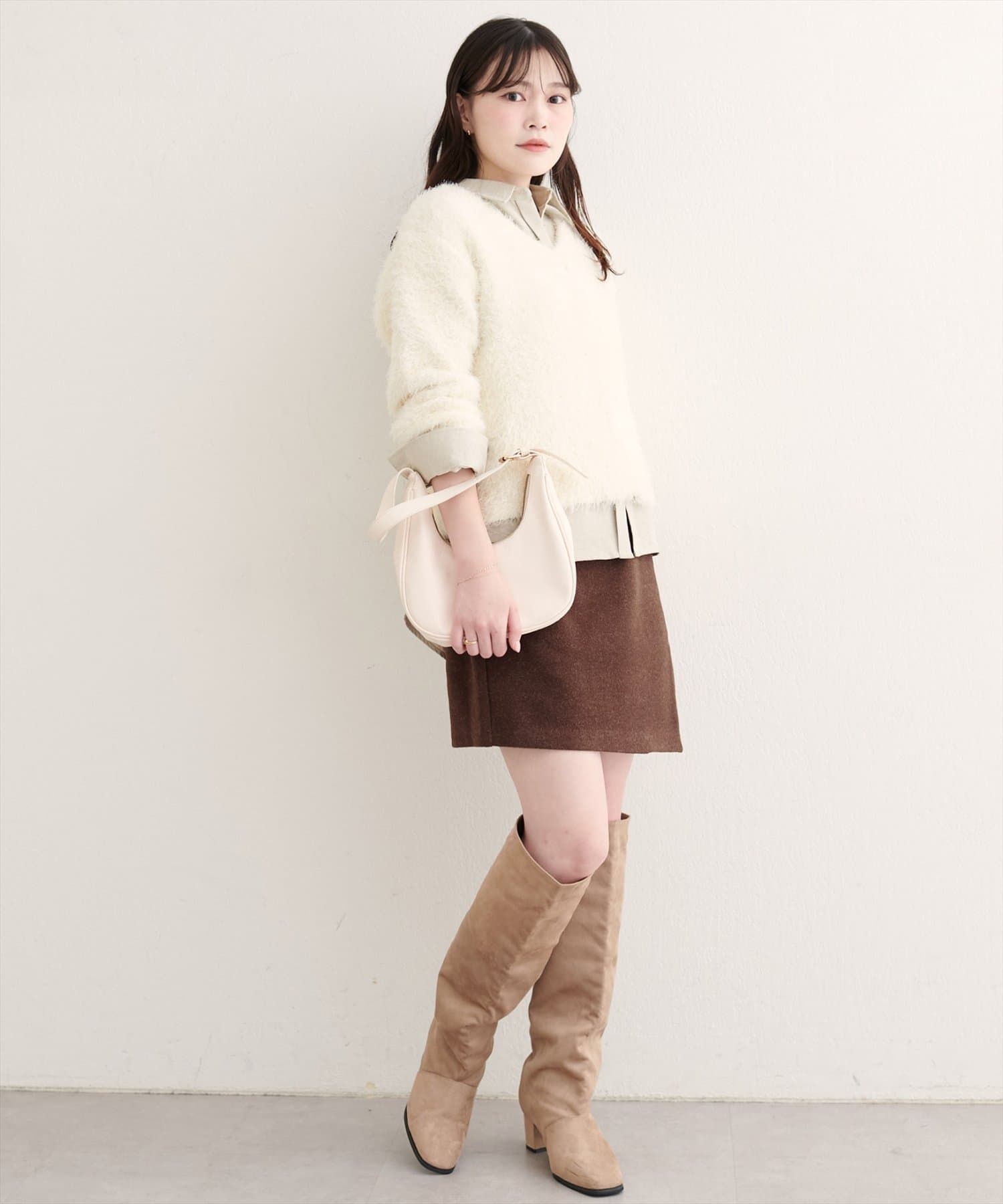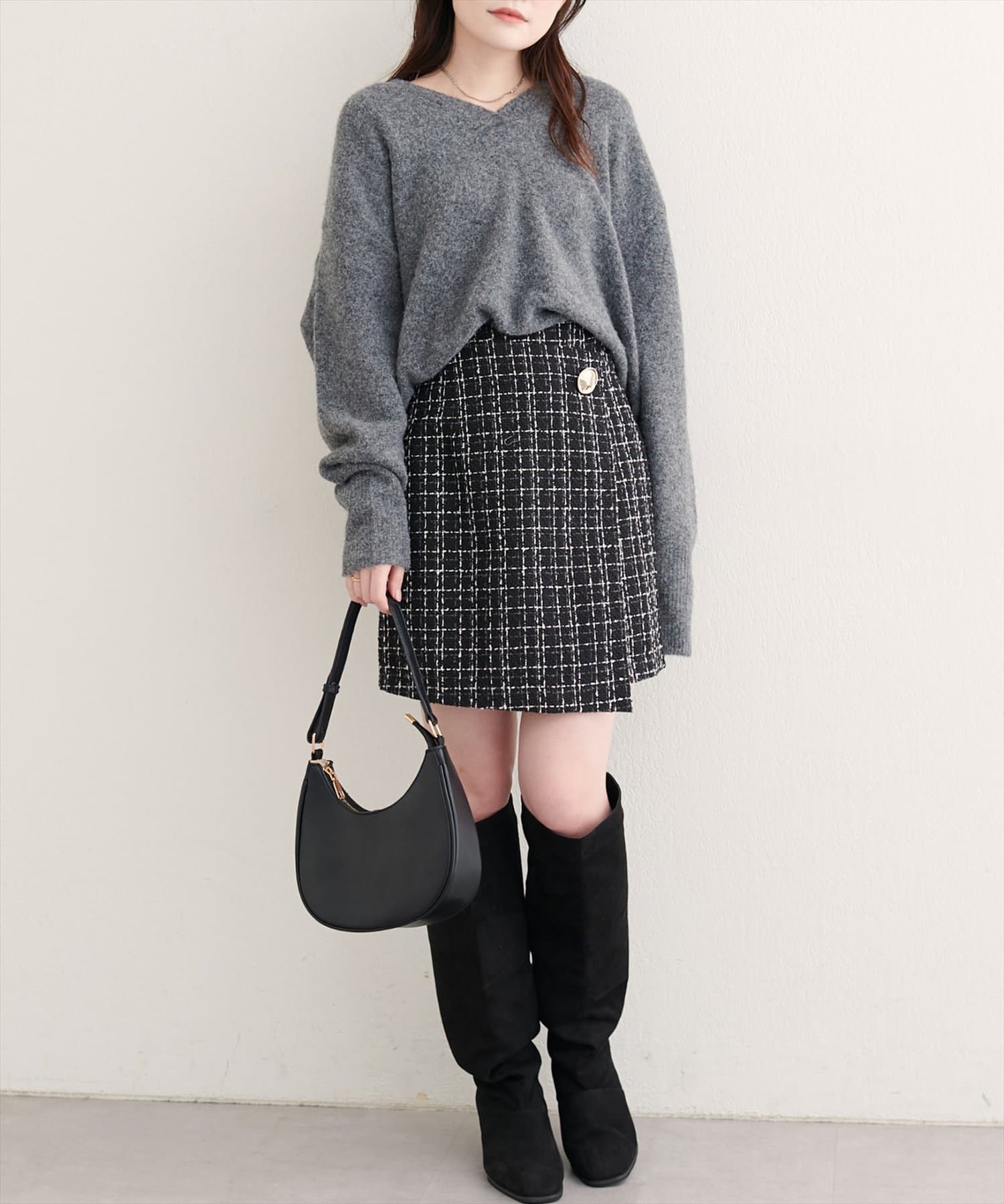 クロップド丈やオーバーサイズのニットを合わせるのがおすすめです。