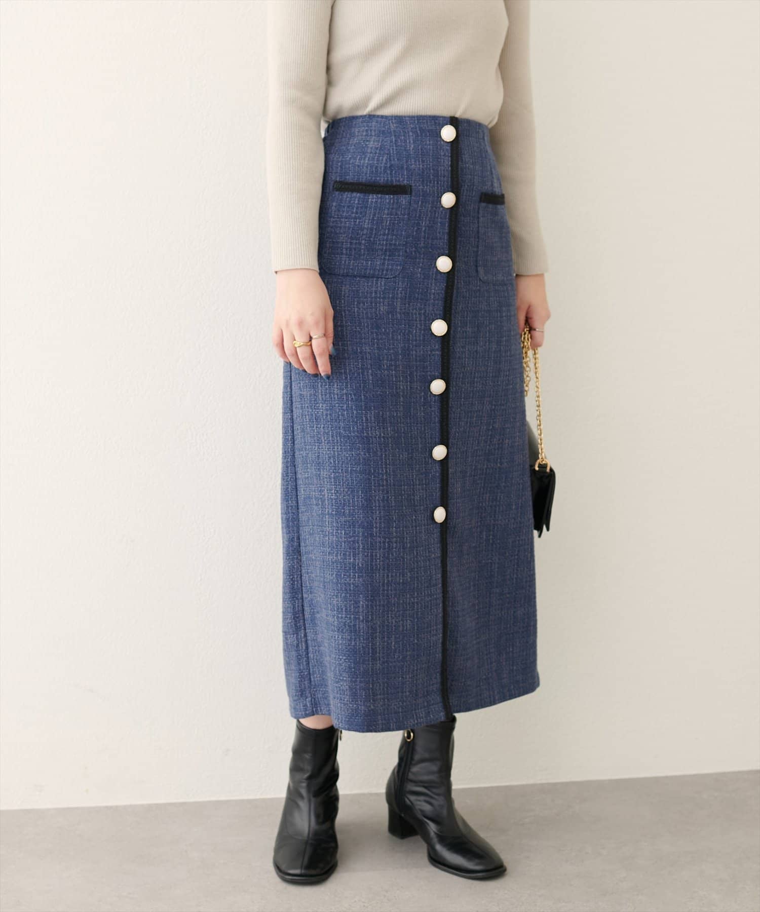 表面感のあるツイード調がコーディネートに表情を与えてくれるタイトスカートが登場。