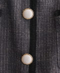 フロントのフェイク釦が存在感と高級感を与えてくれます。ポケットとフロント部分には刺繍のように見える