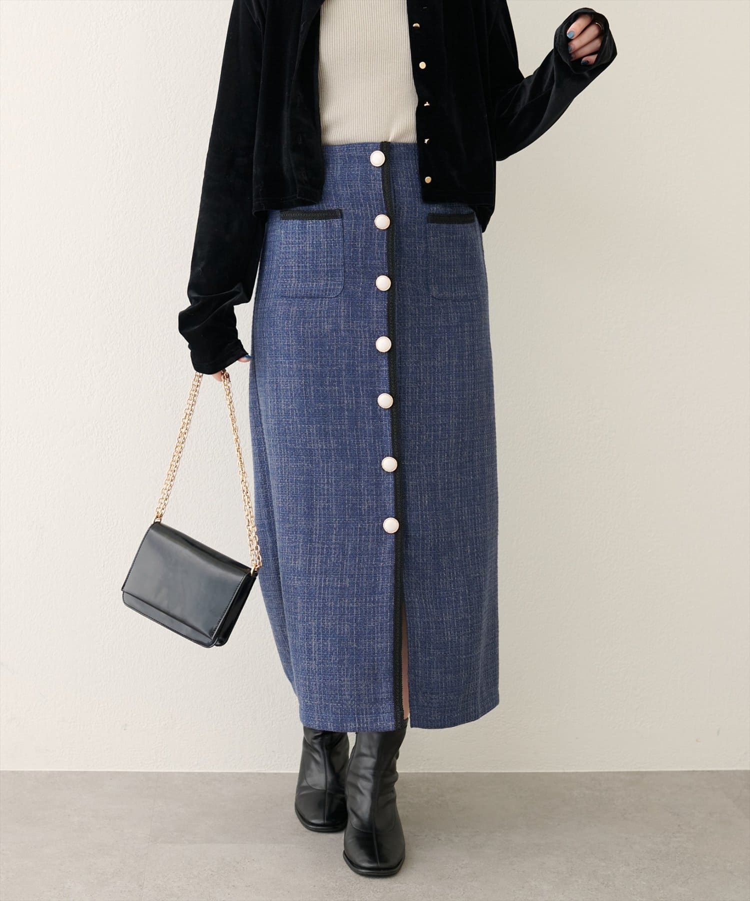 【WEB限定】ブレードテープ使いツイードスカート