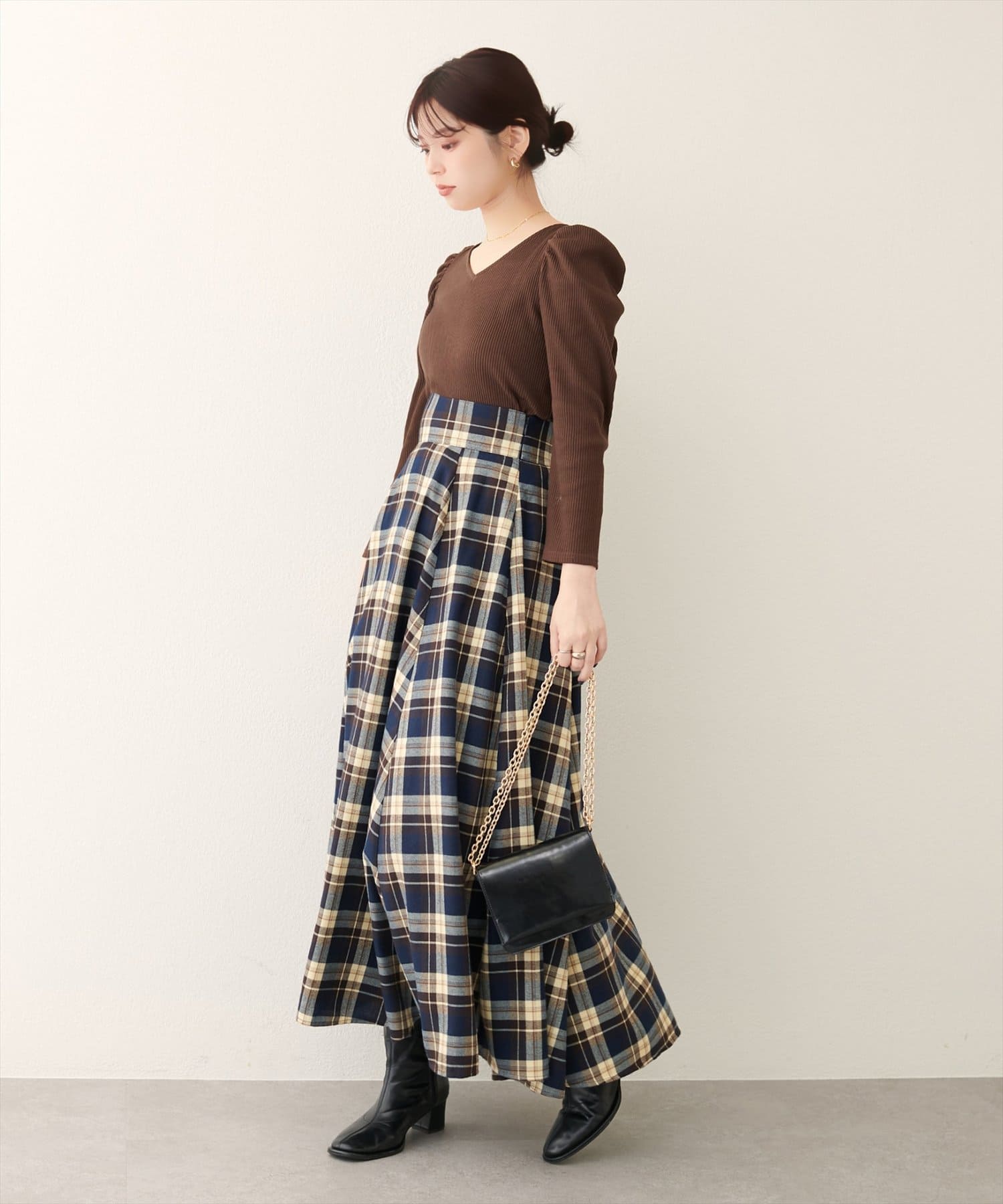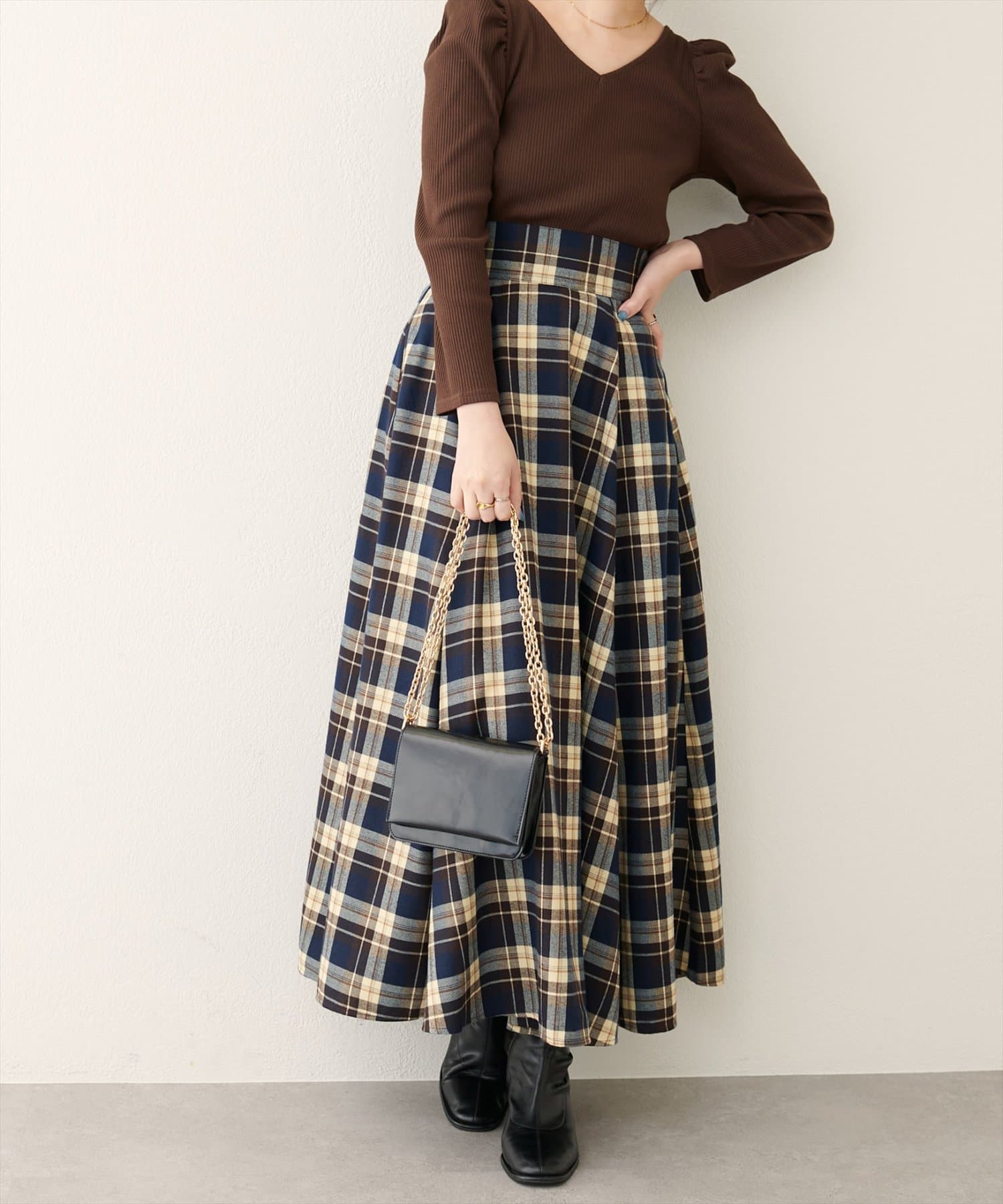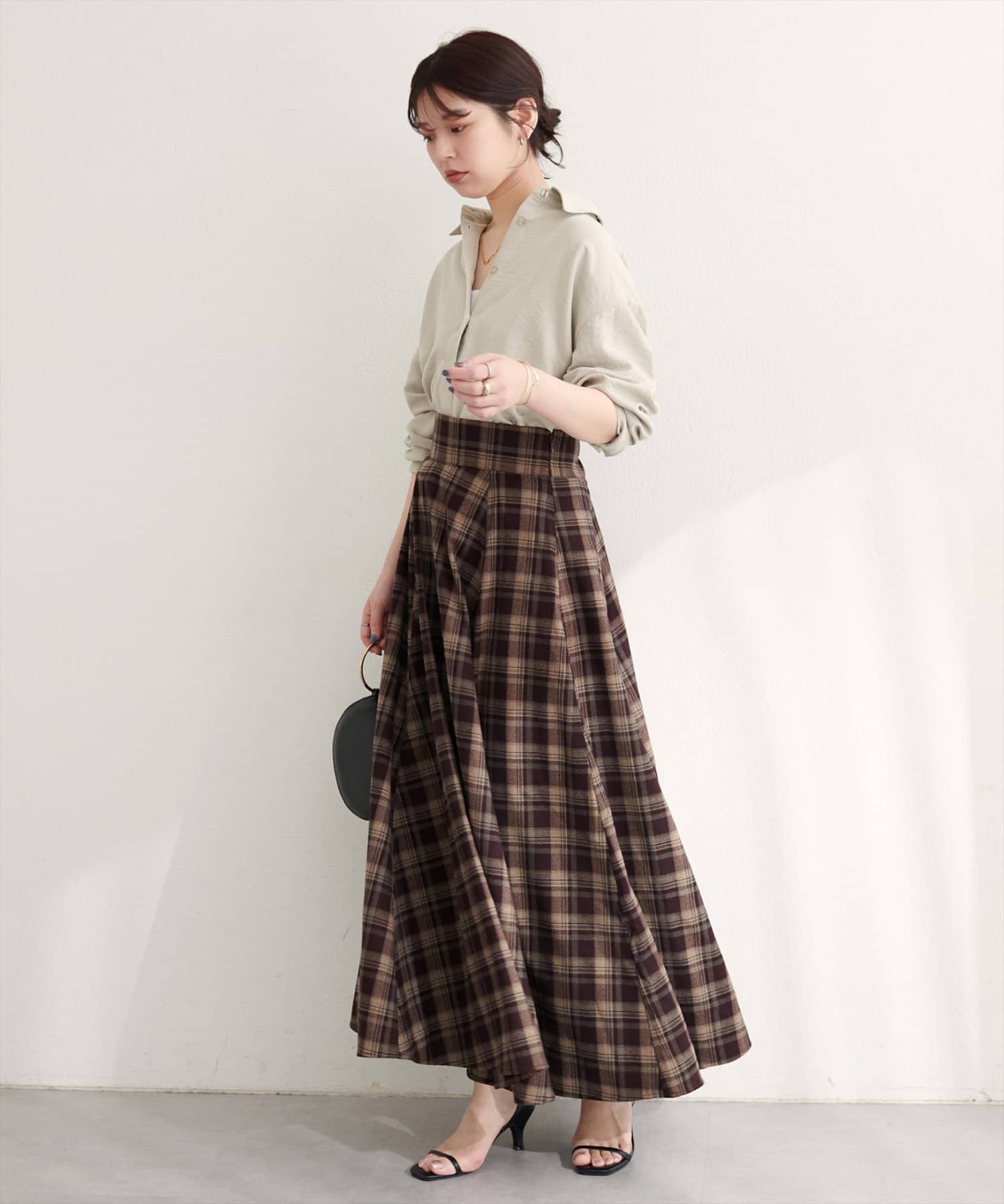いつものコーディネートに、上品なアクセントをプラスしてくれるチェック柄スカート。
