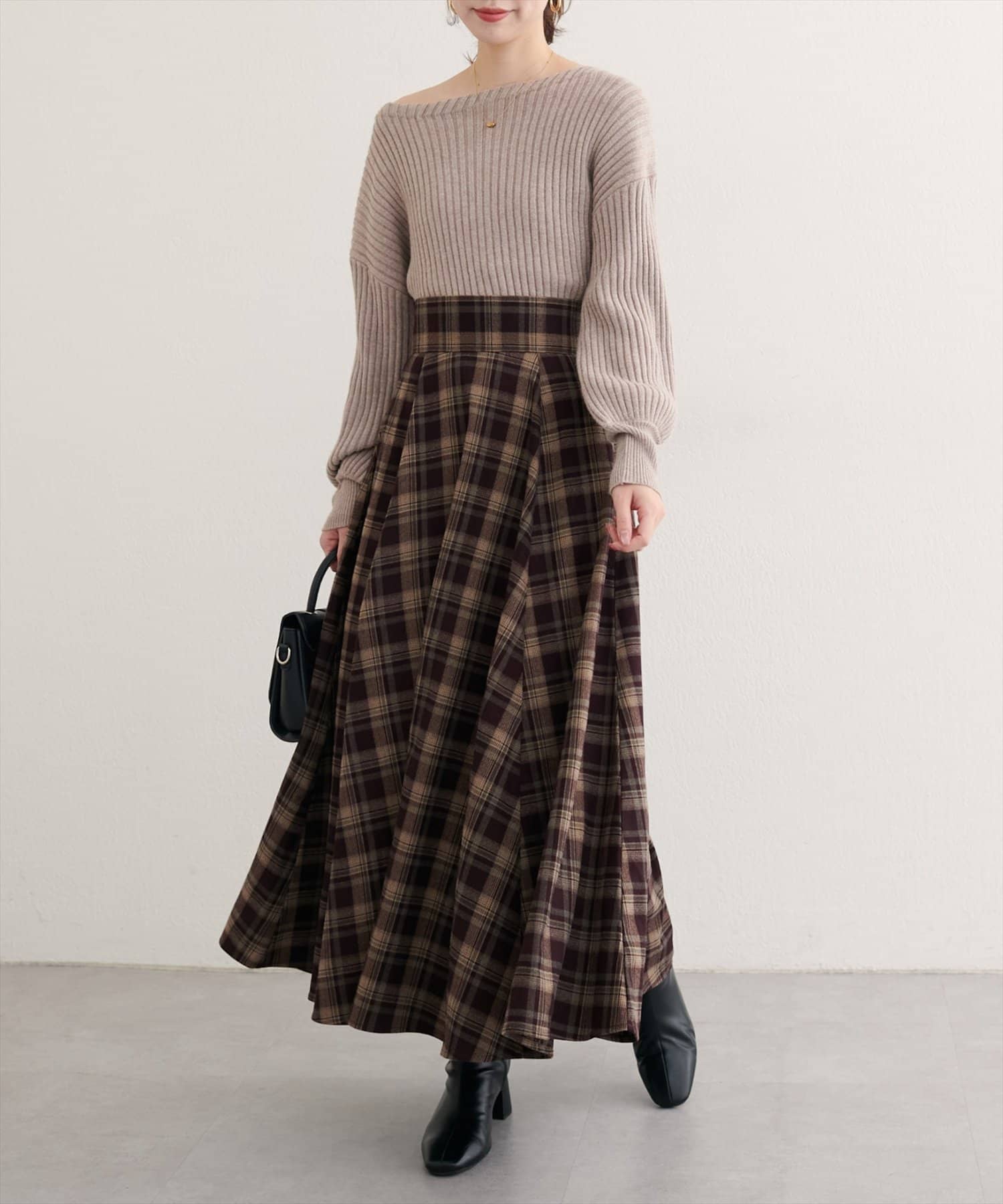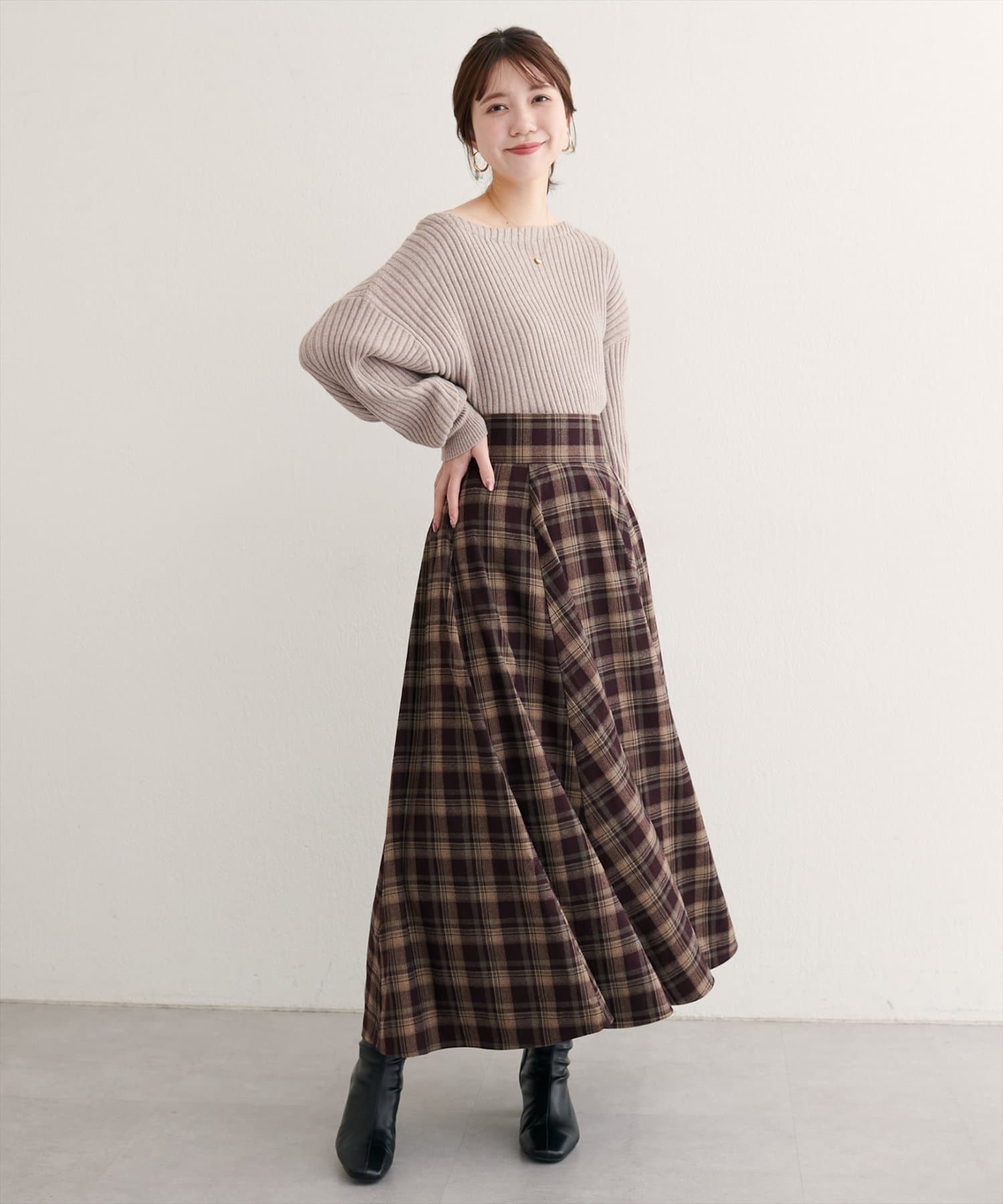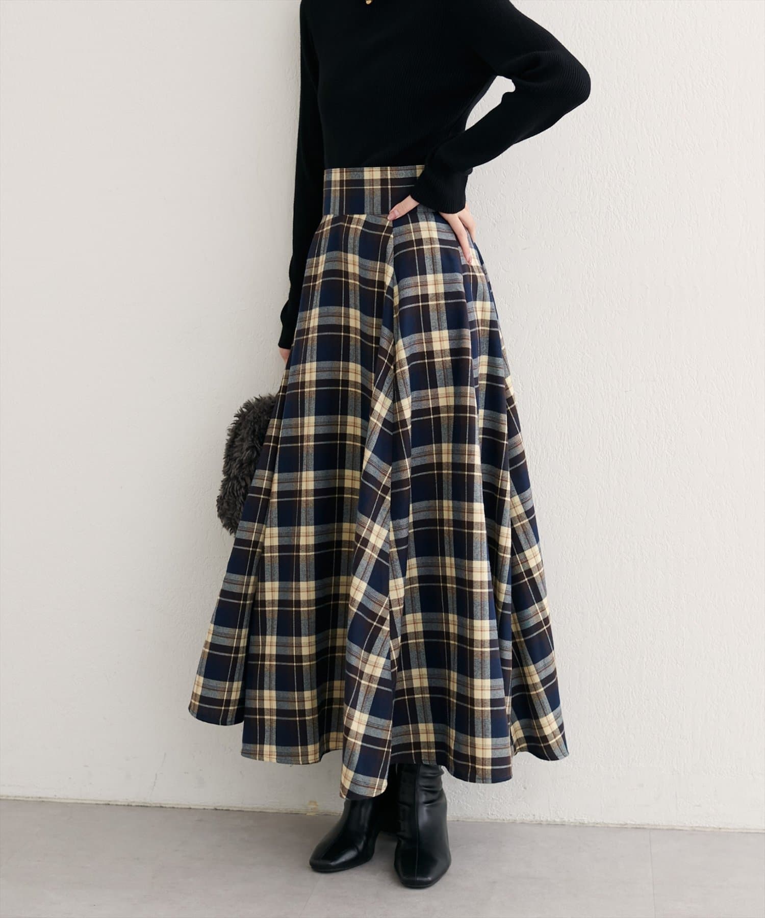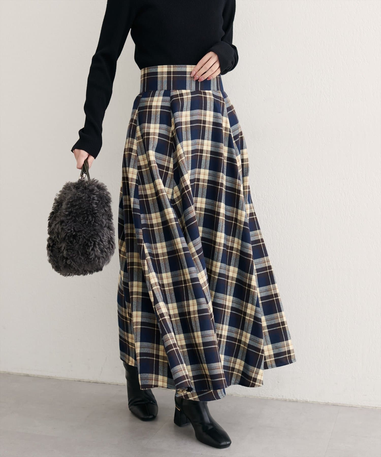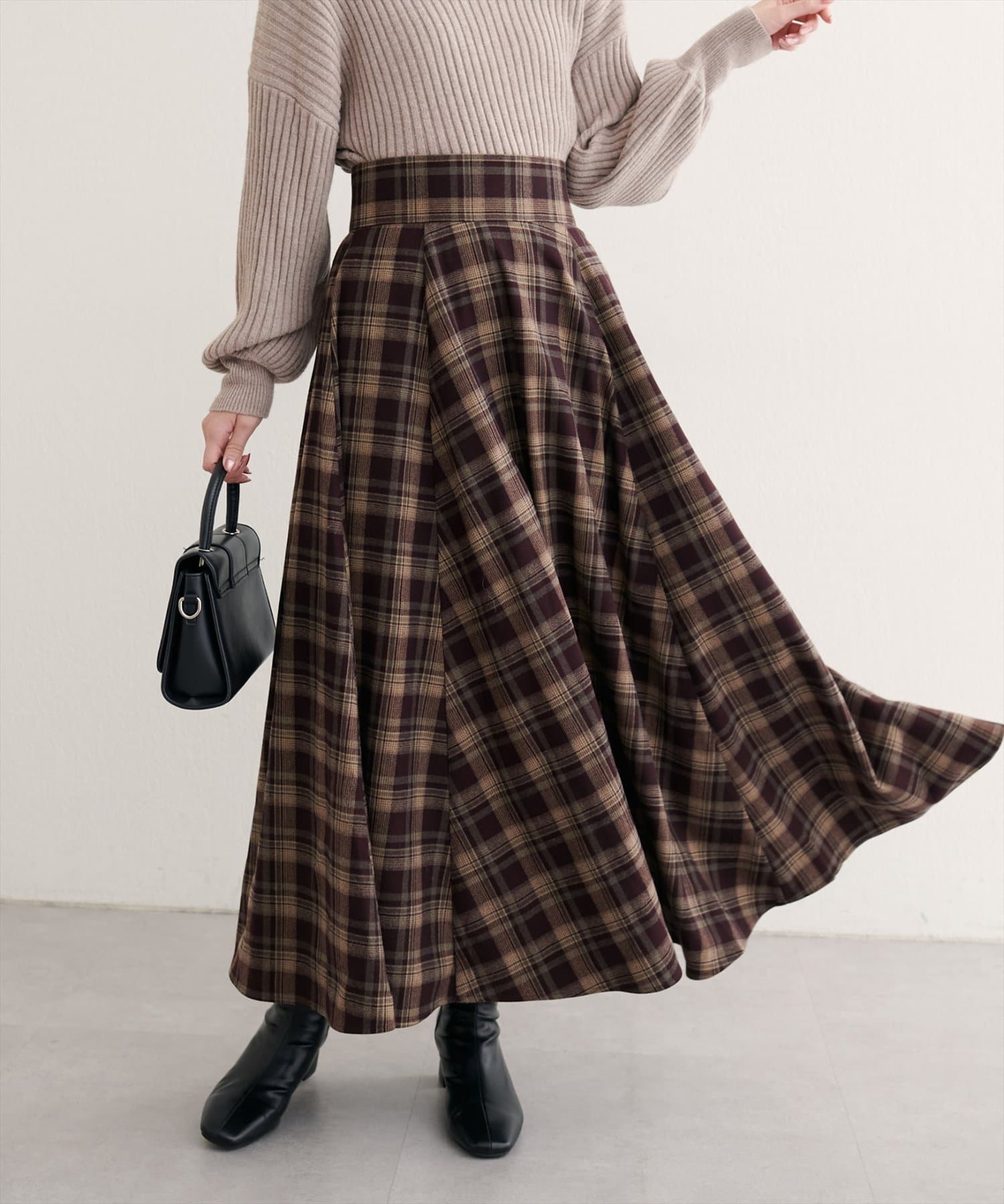 【WEB限定】ハイウエストサーキュラーチェックスカート