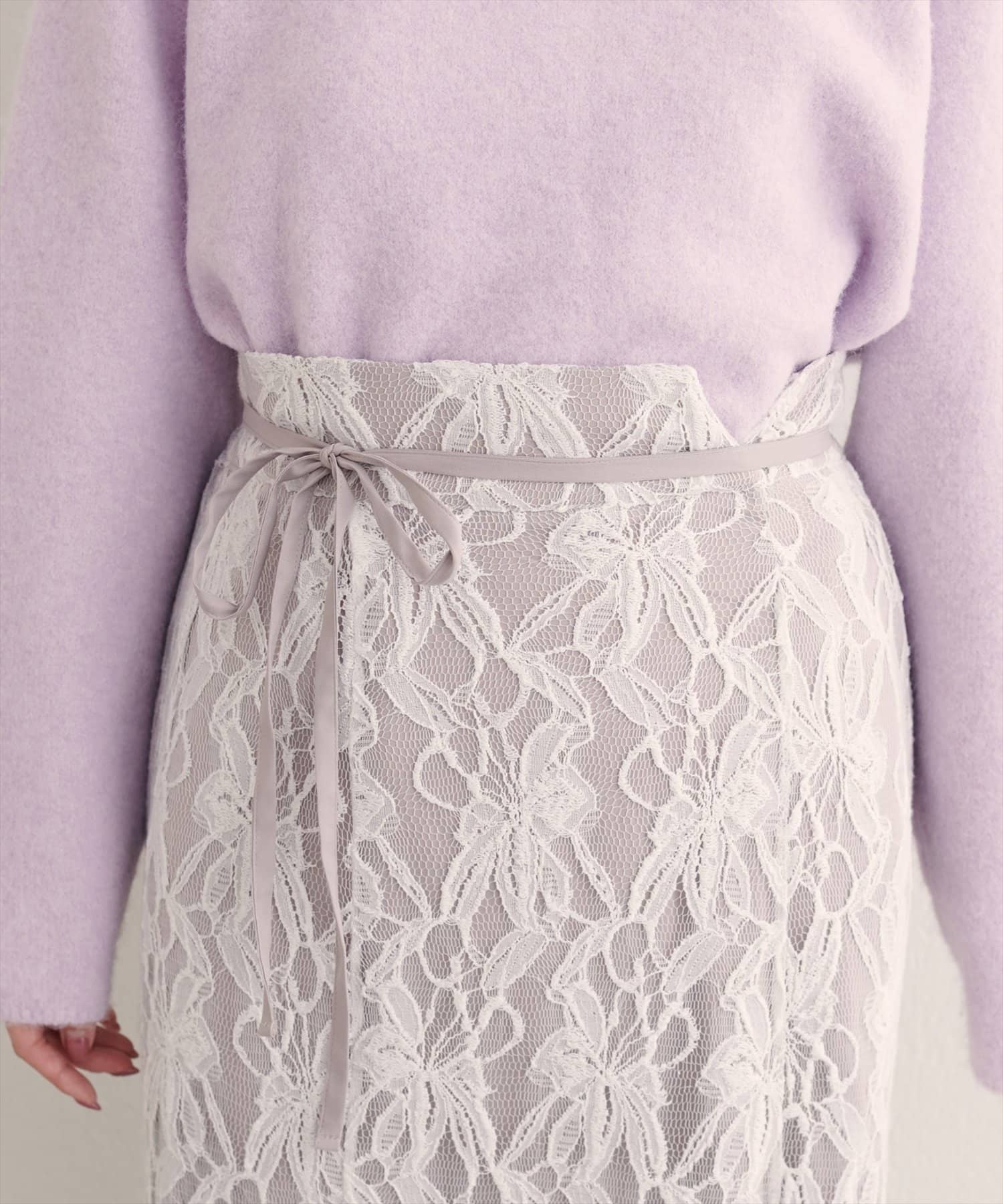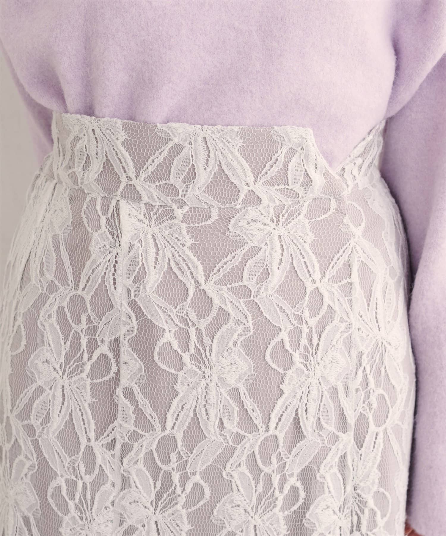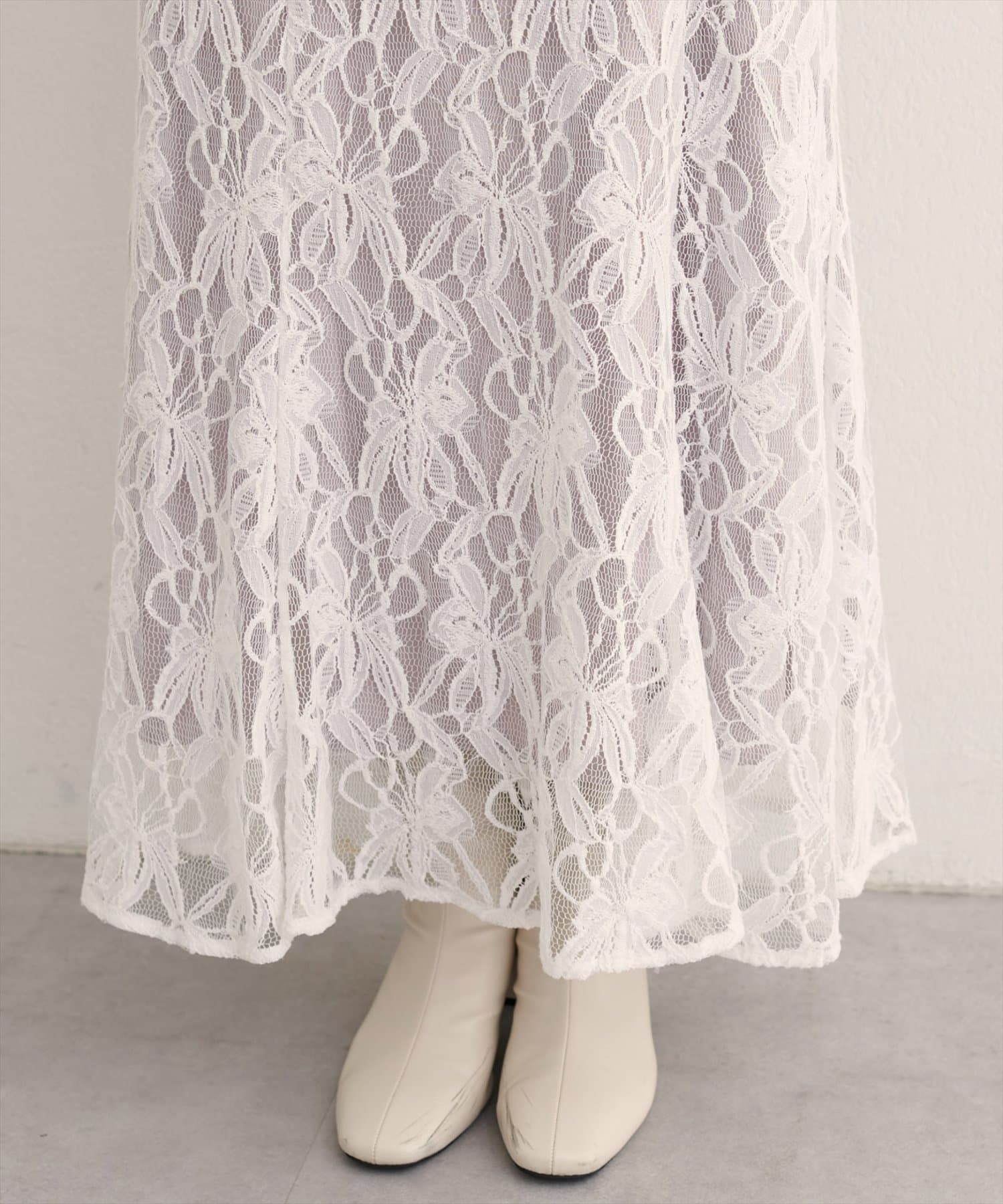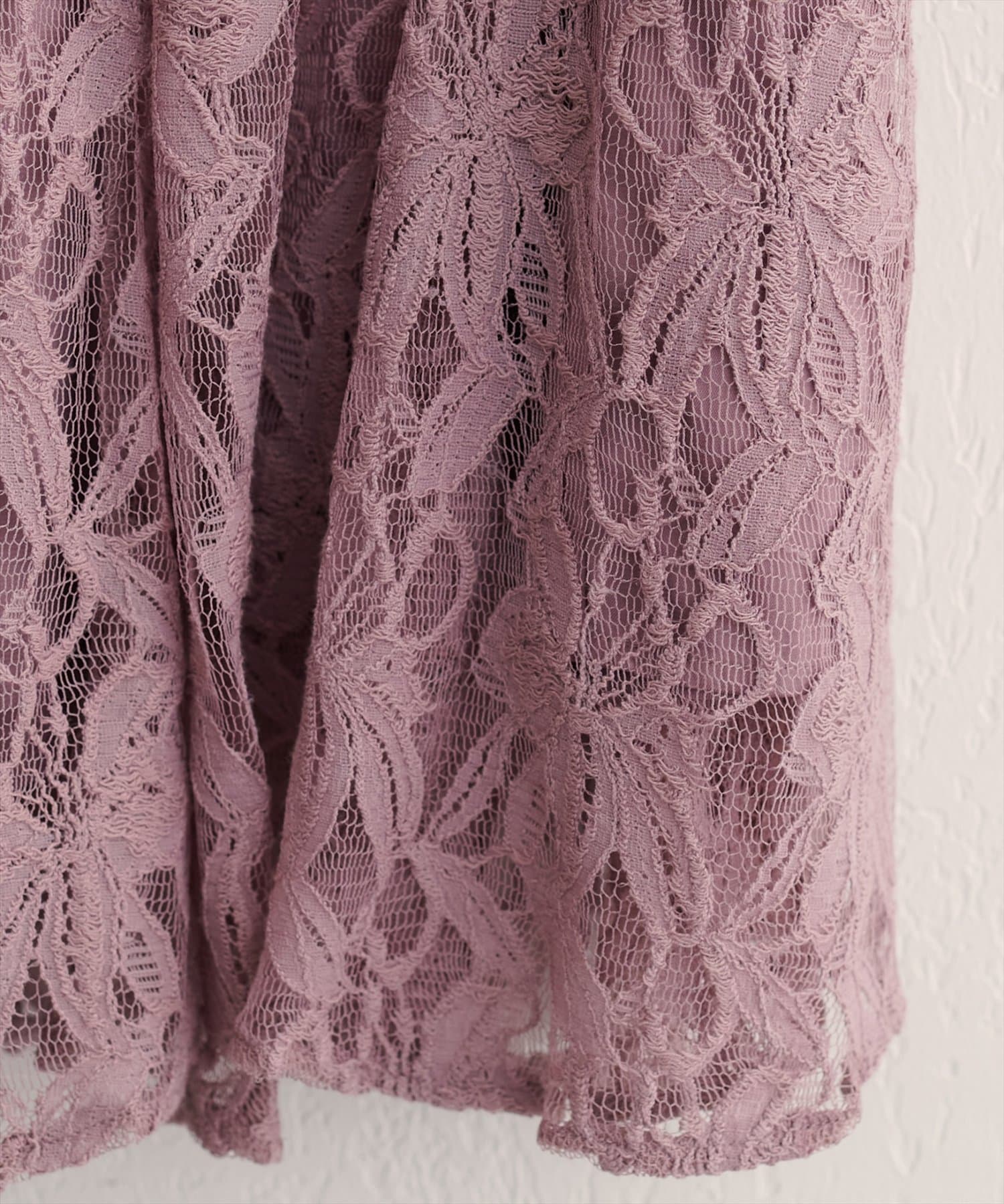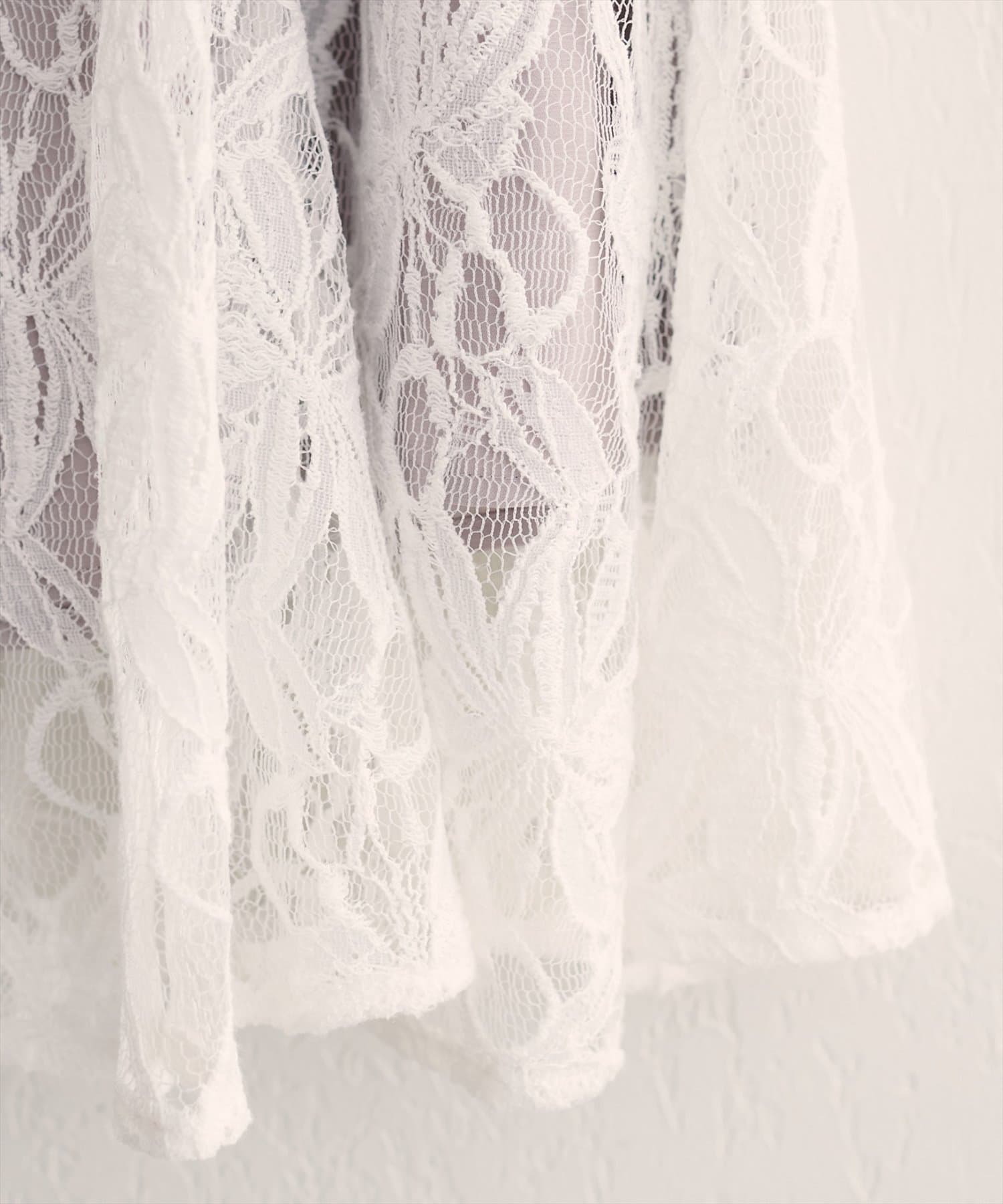 全体を彩るフラワーレースは、甘すぎず上品な印象を与えるデザイン。