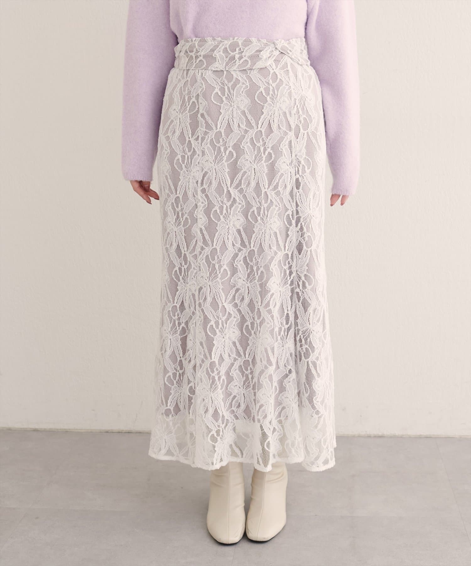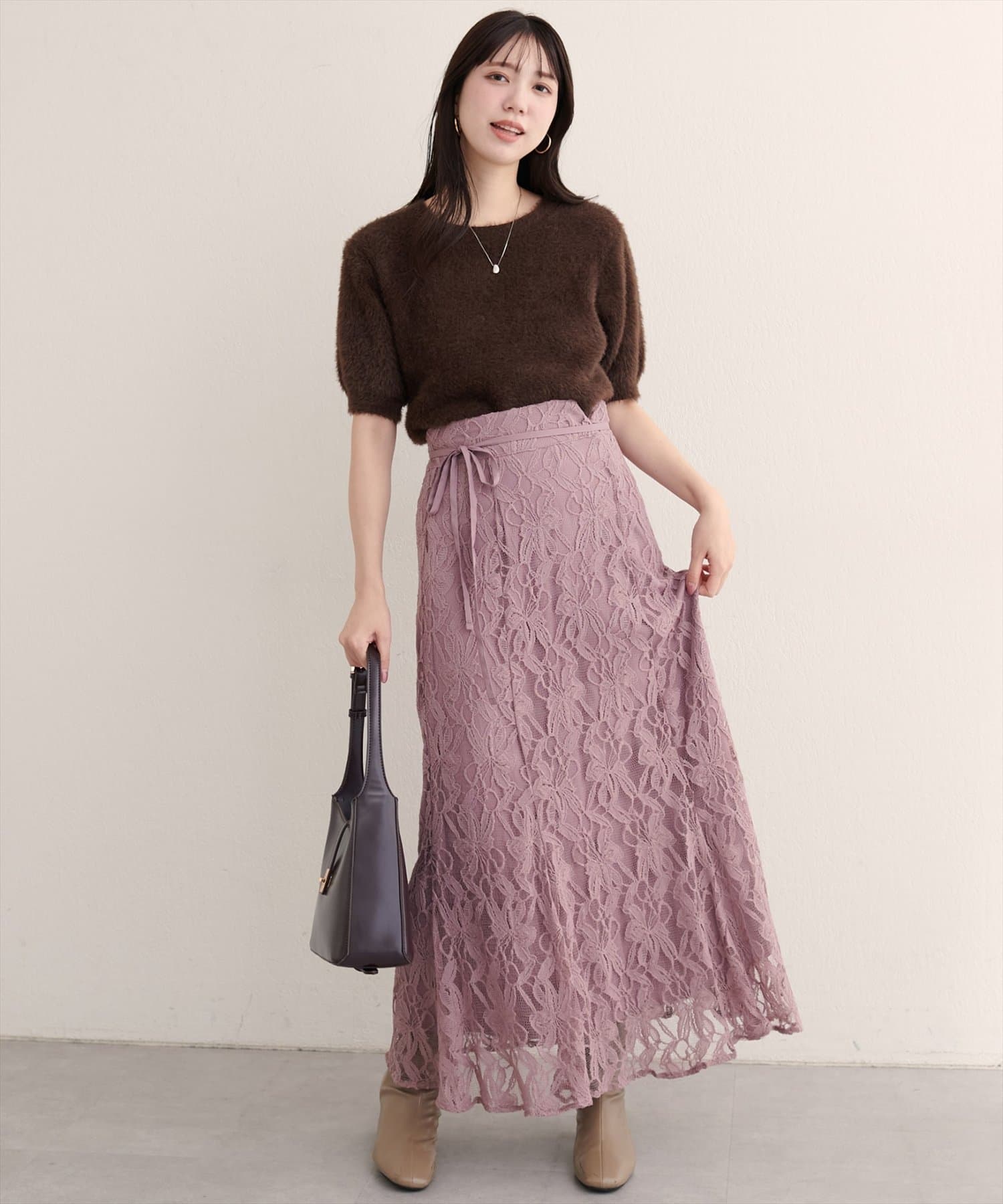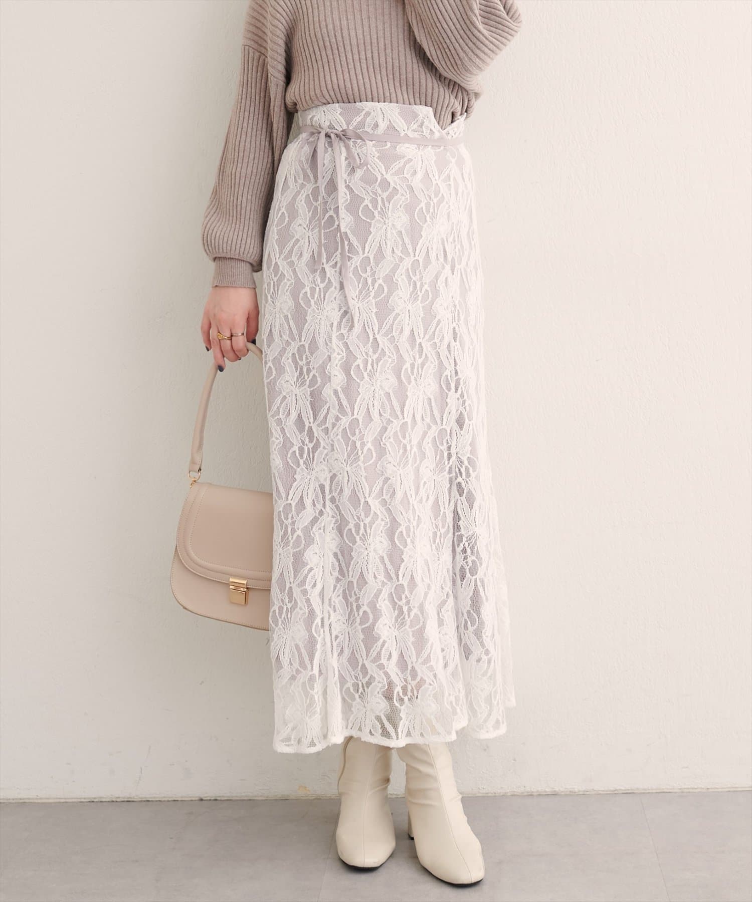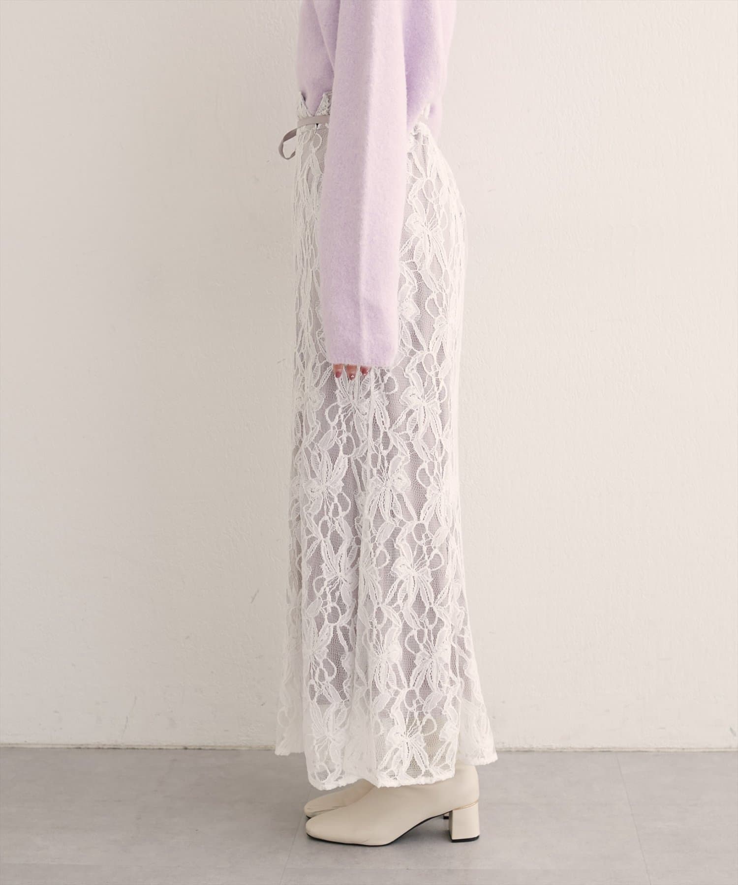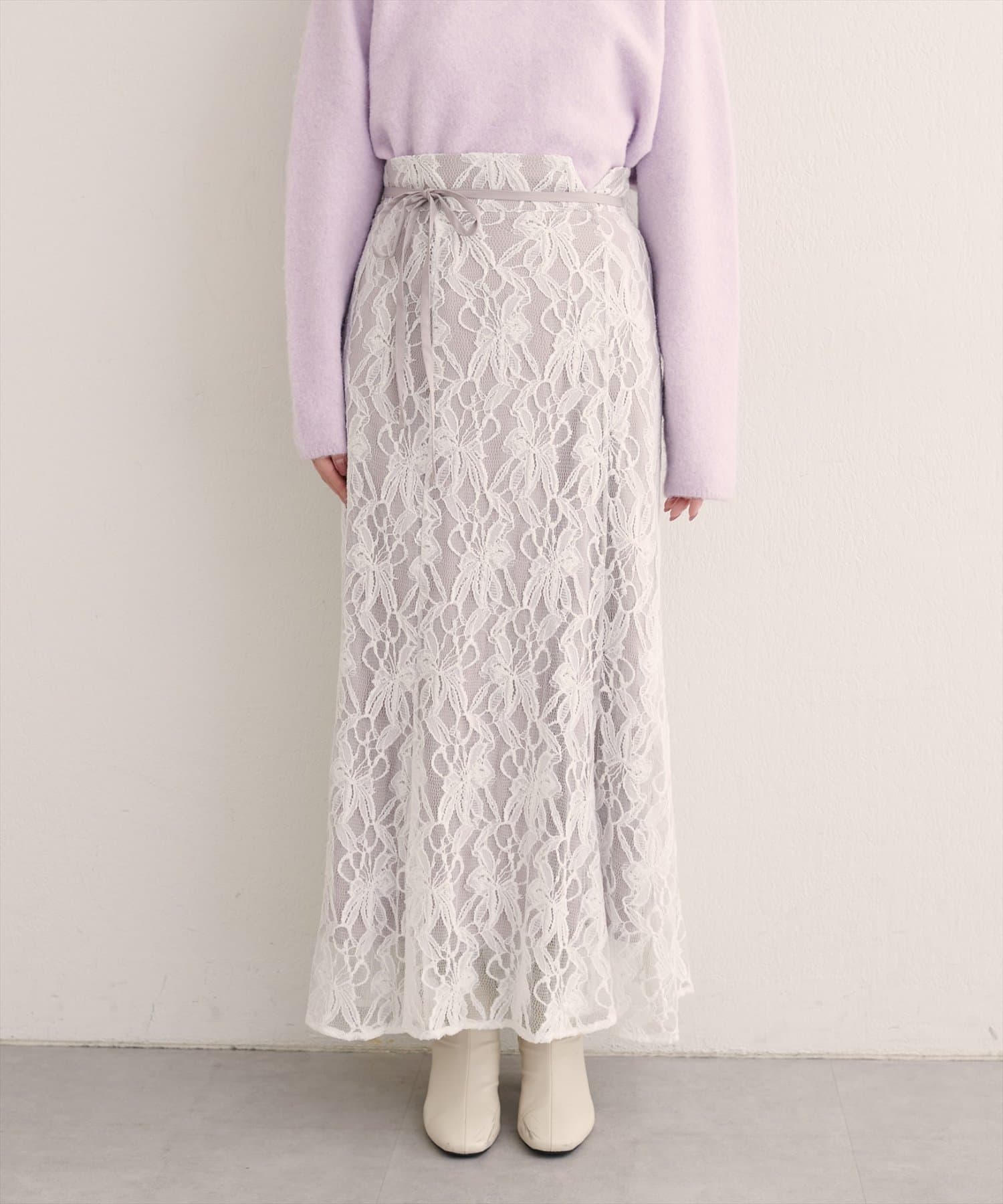 全体を彩るフラワーレースは、甘すぎず上品な印象を与えるデザイン。