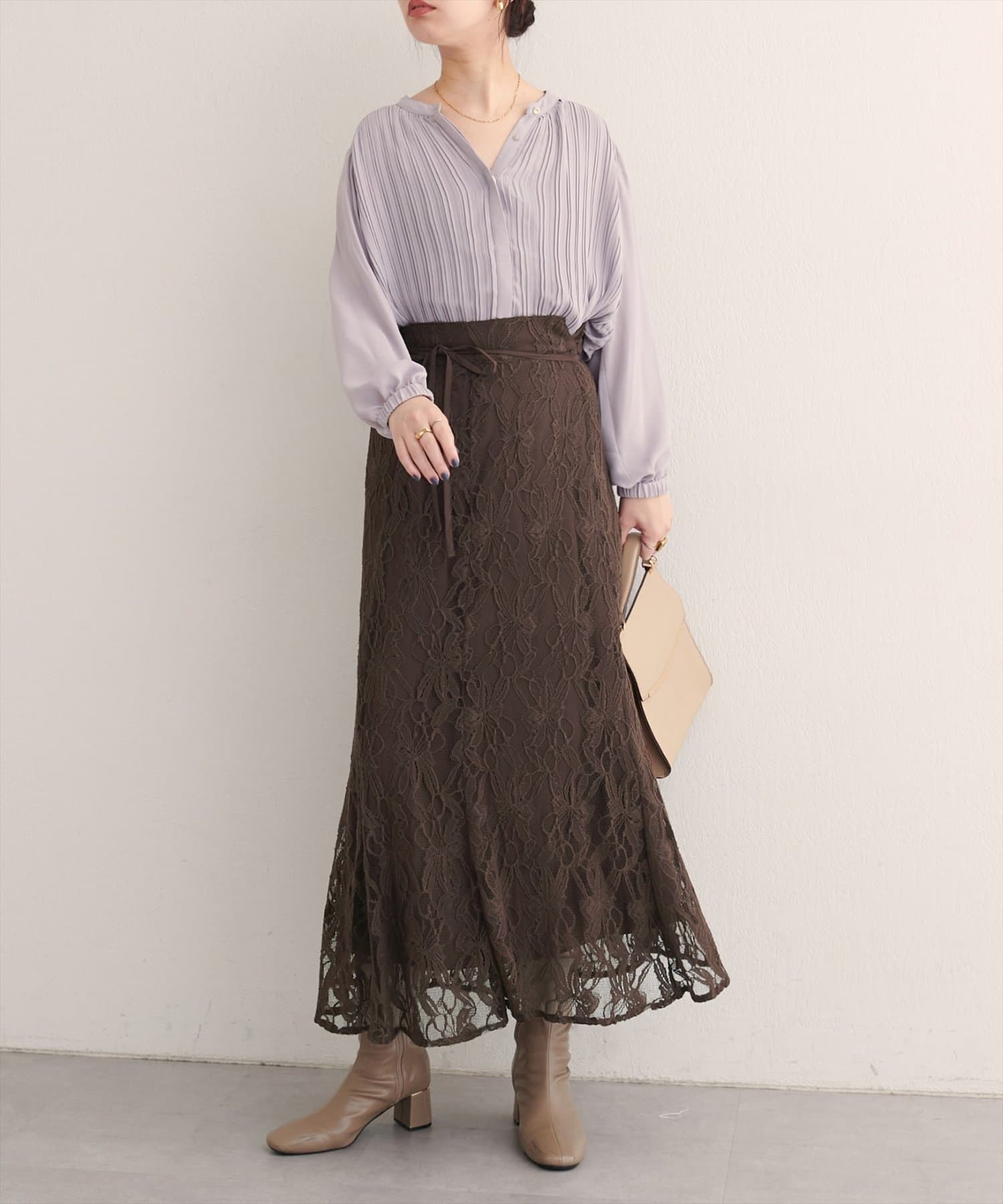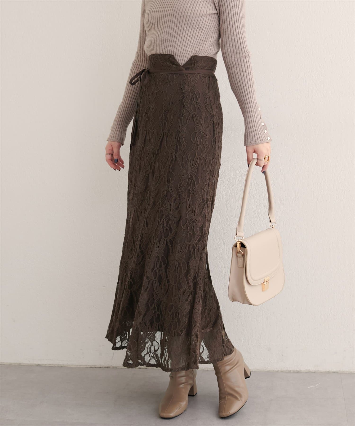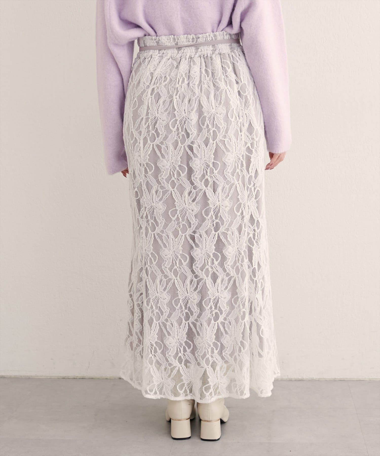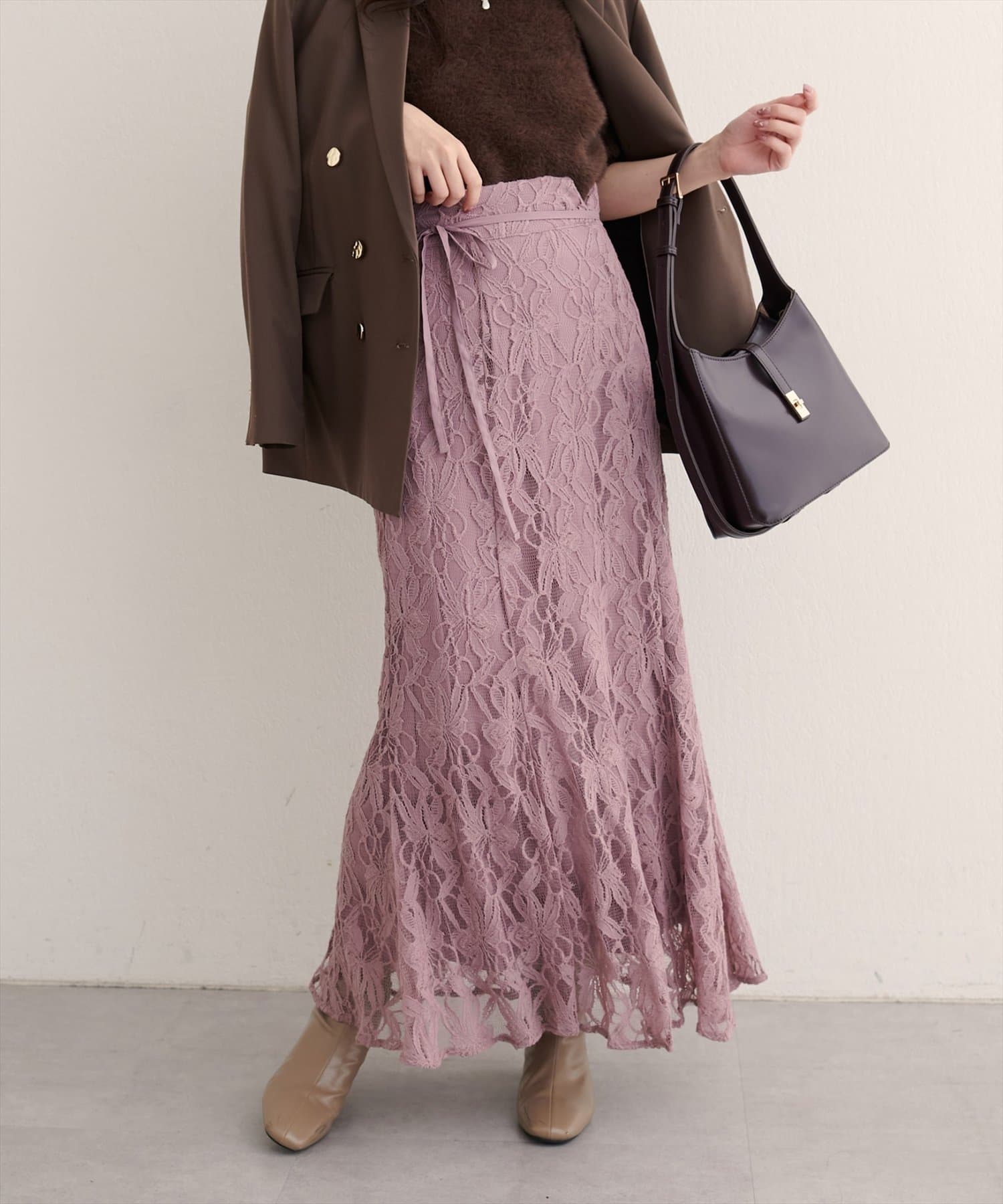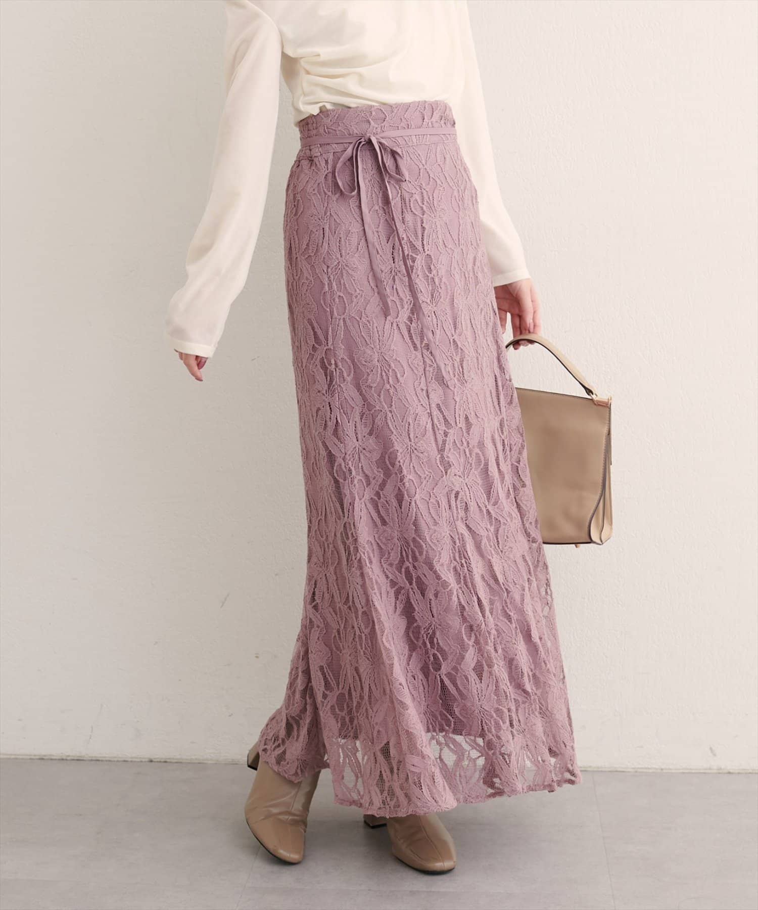 全体を彩るフラワーレースは、甘すぎず上品な印象を与えるデザイン。