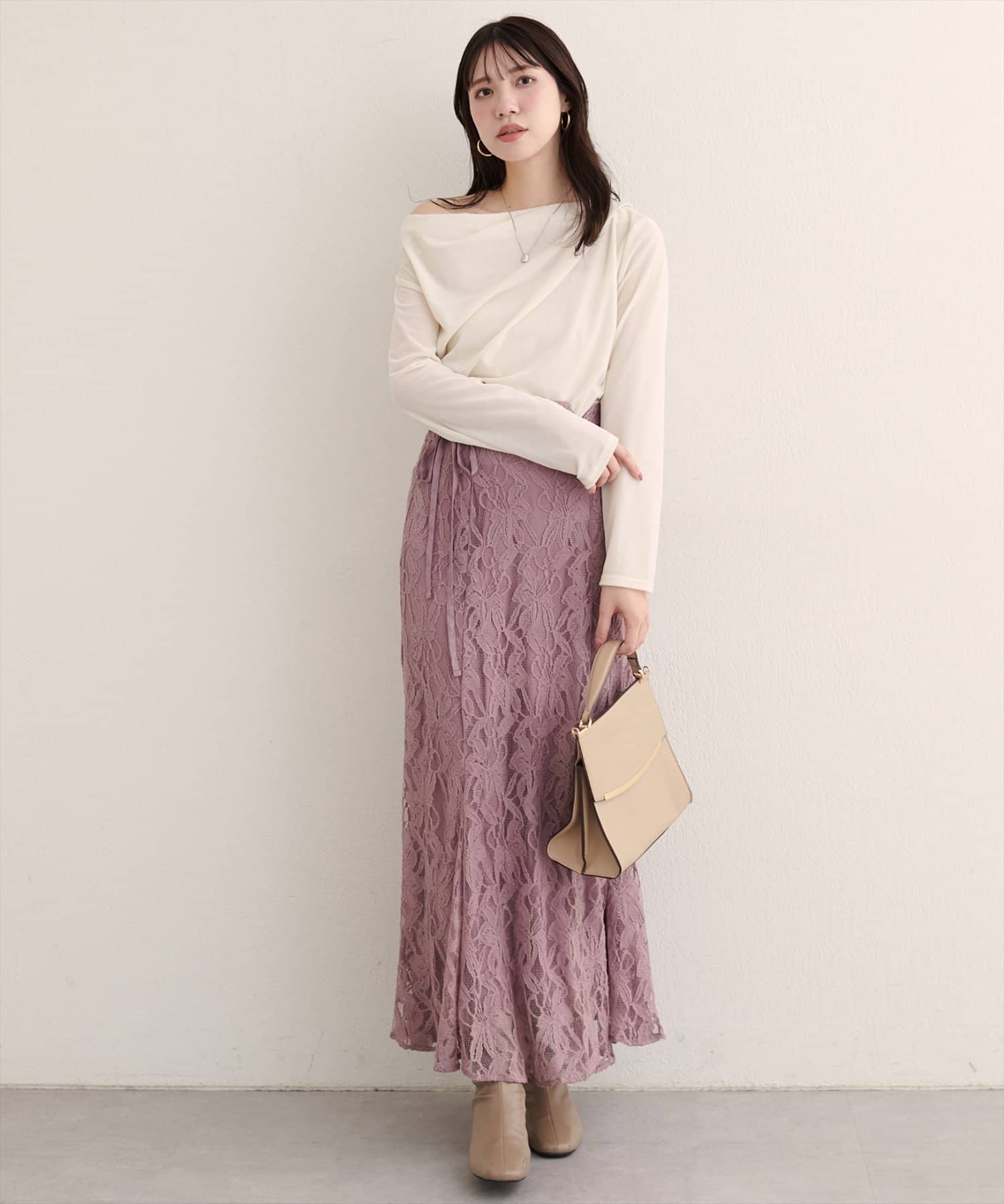 大人の女性がデイリーに着こなせるよう、甘さを抑え、洗練された雰囲気に仕上げました。
