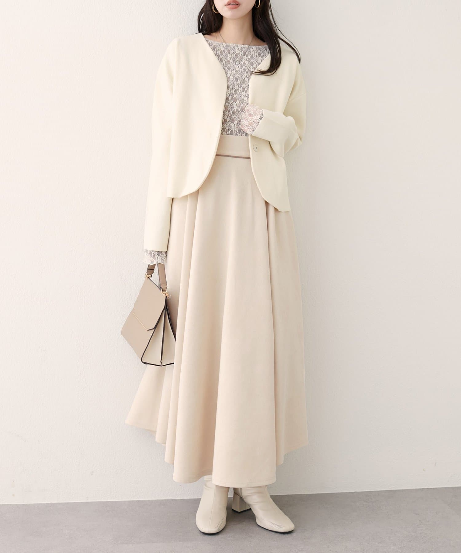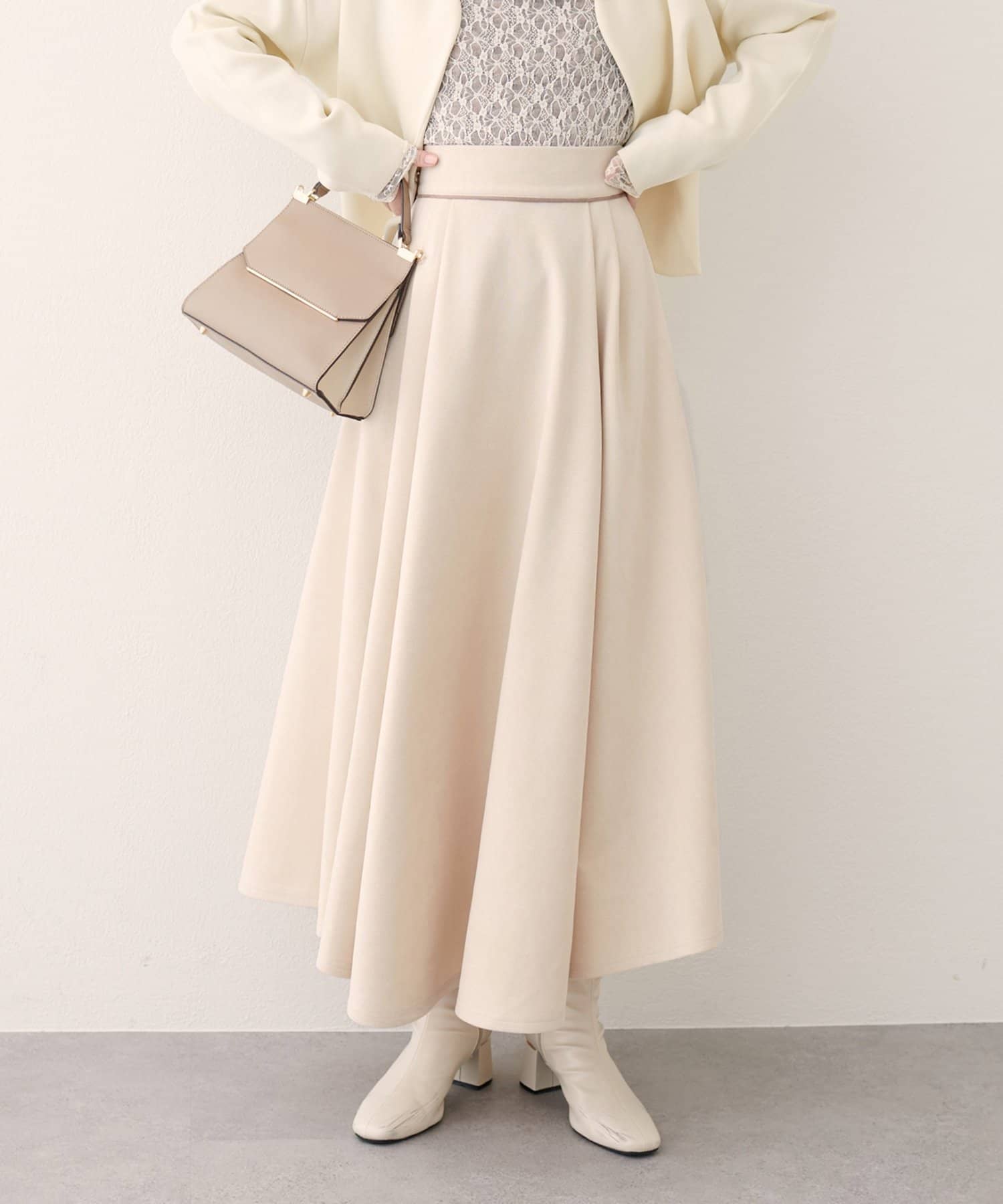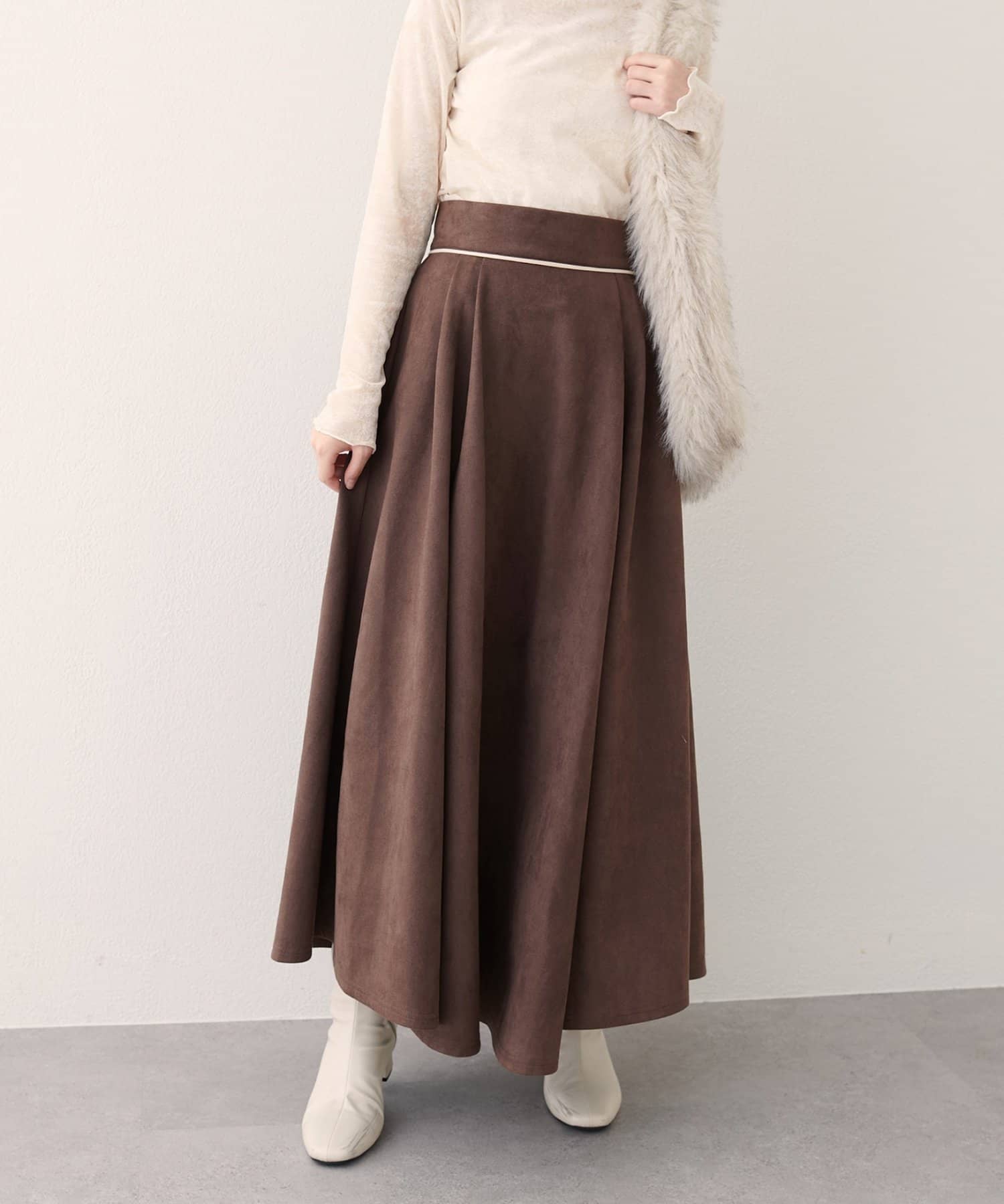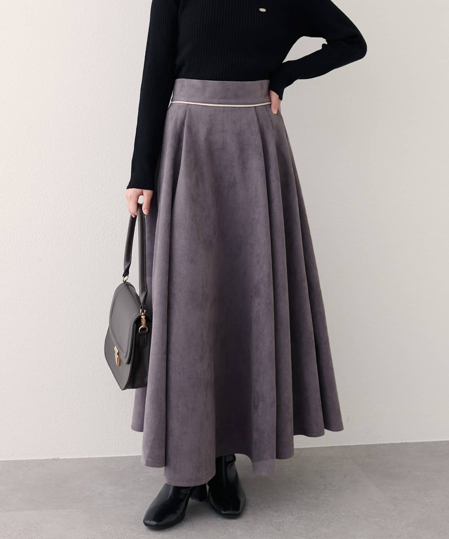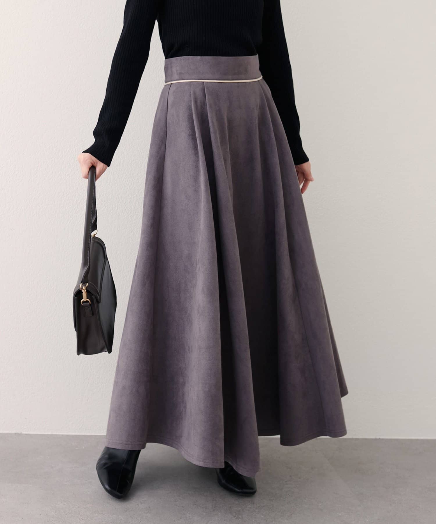 大人の余裕と上品さを纏う、ポンチスエードパイピングサーキュラースカート。