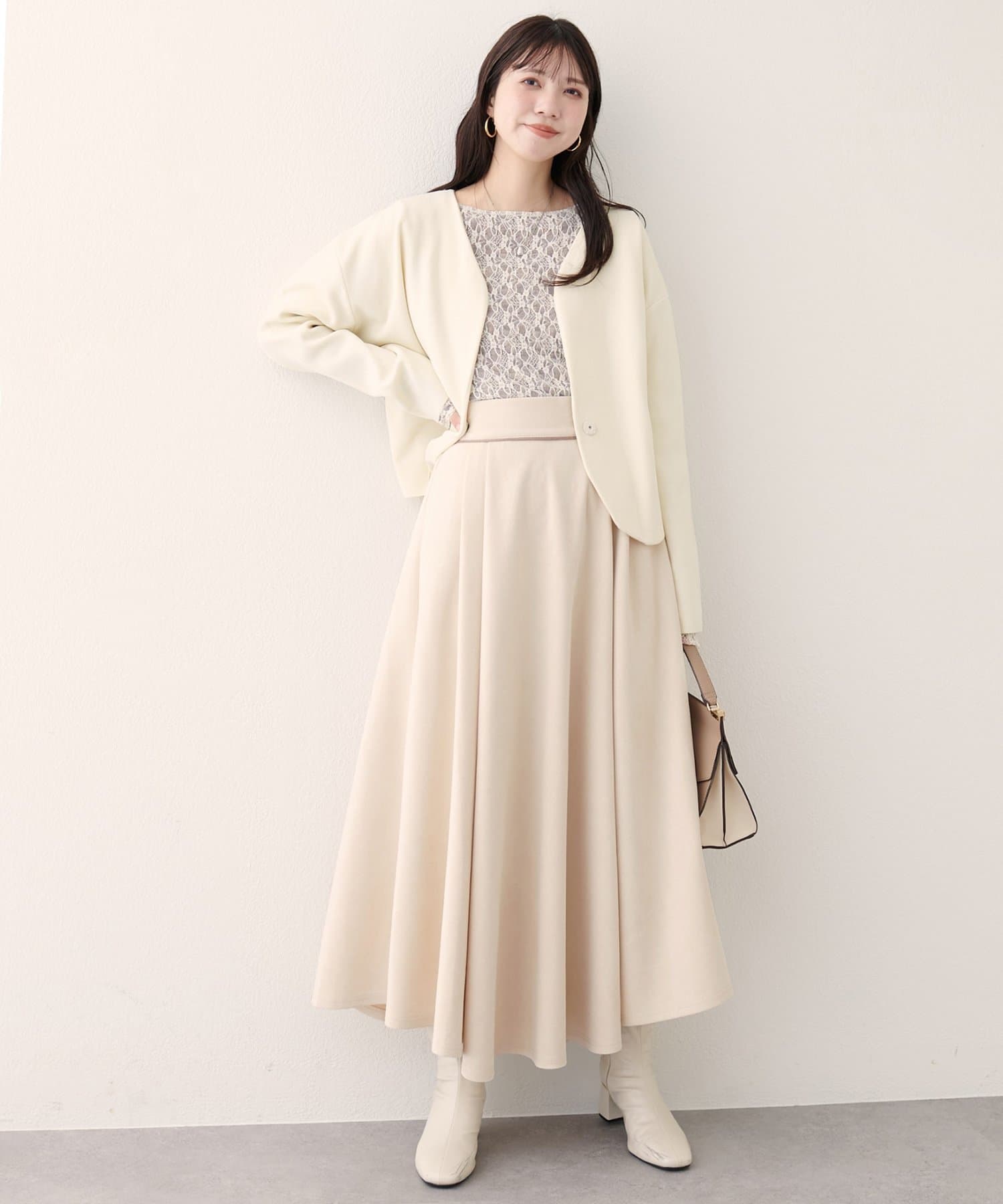 広がりすぎないサーキュラーラインが、上品で女性らしい印象を与えます。