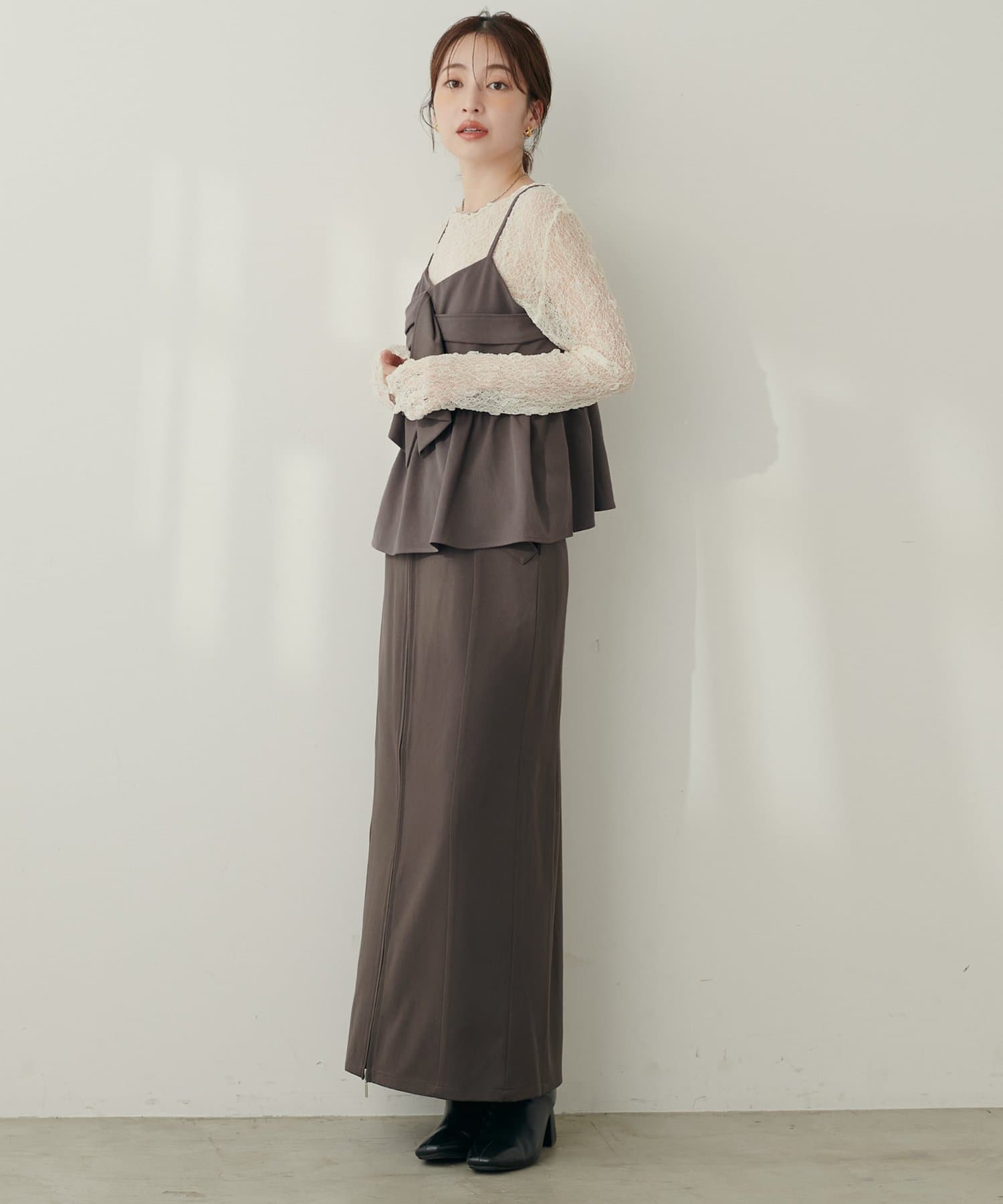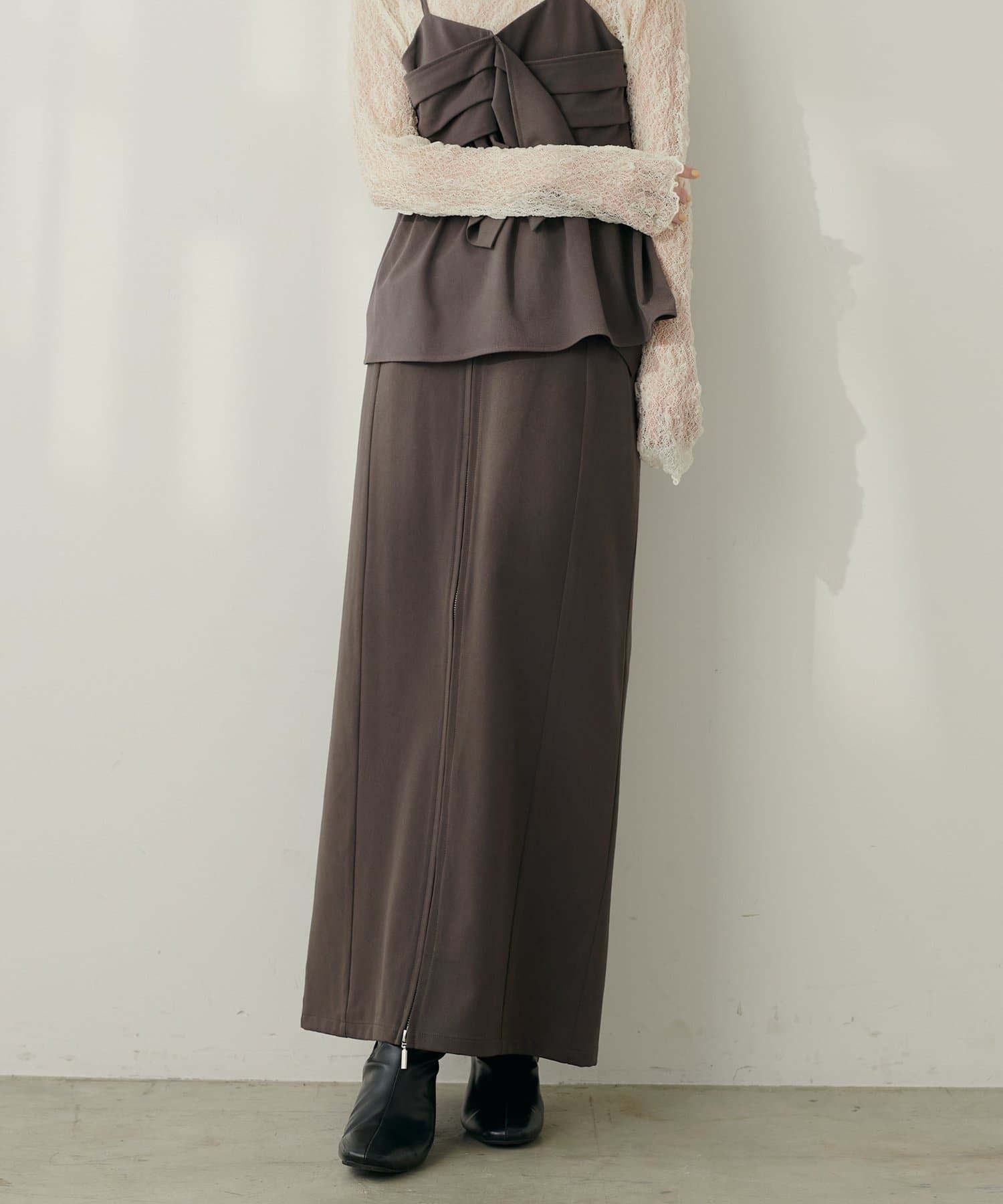 フロント部分にジップが施されており、ジップを開けてスリット見せして着るのがおすすめです。