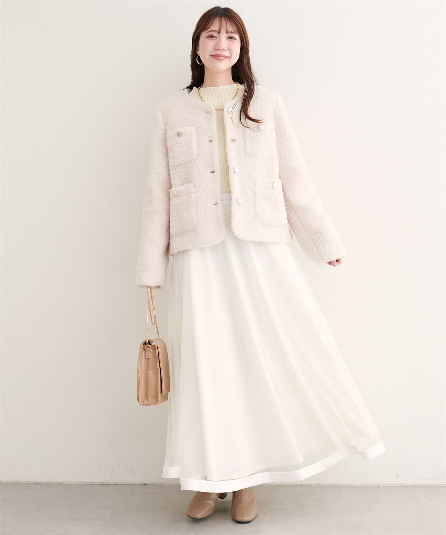 特別な日の装いには、ブラウスやニットと合わせて上品な着こなしを楽しめます。