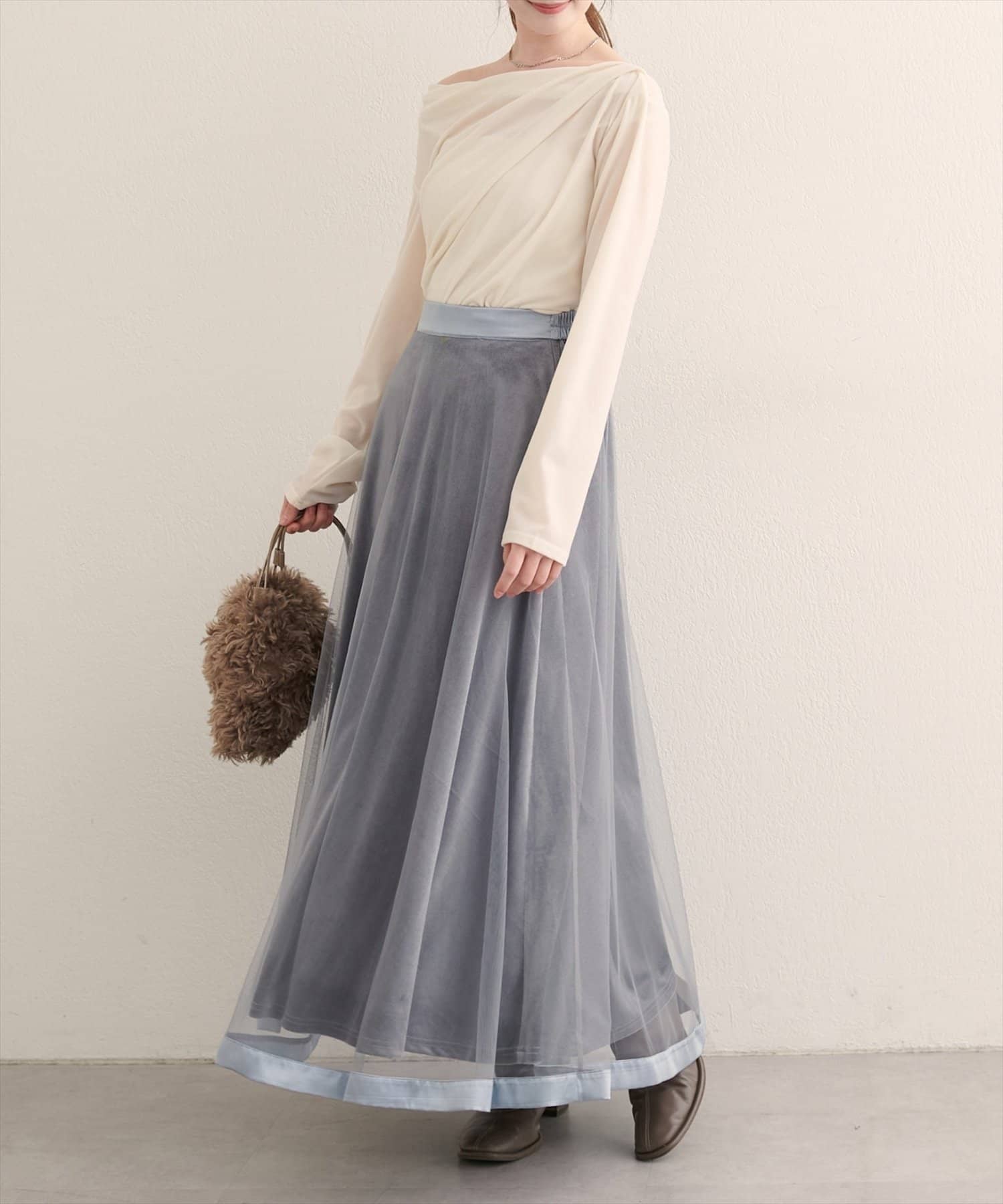 ふんわりとエアリーなチュール素材を贅沢に使用した、大人の女性のための特別なスカート。