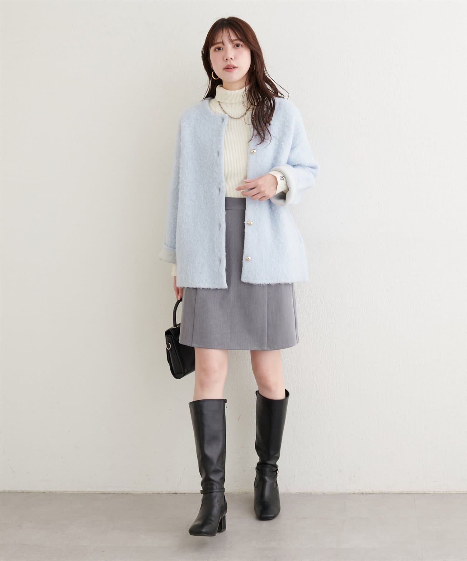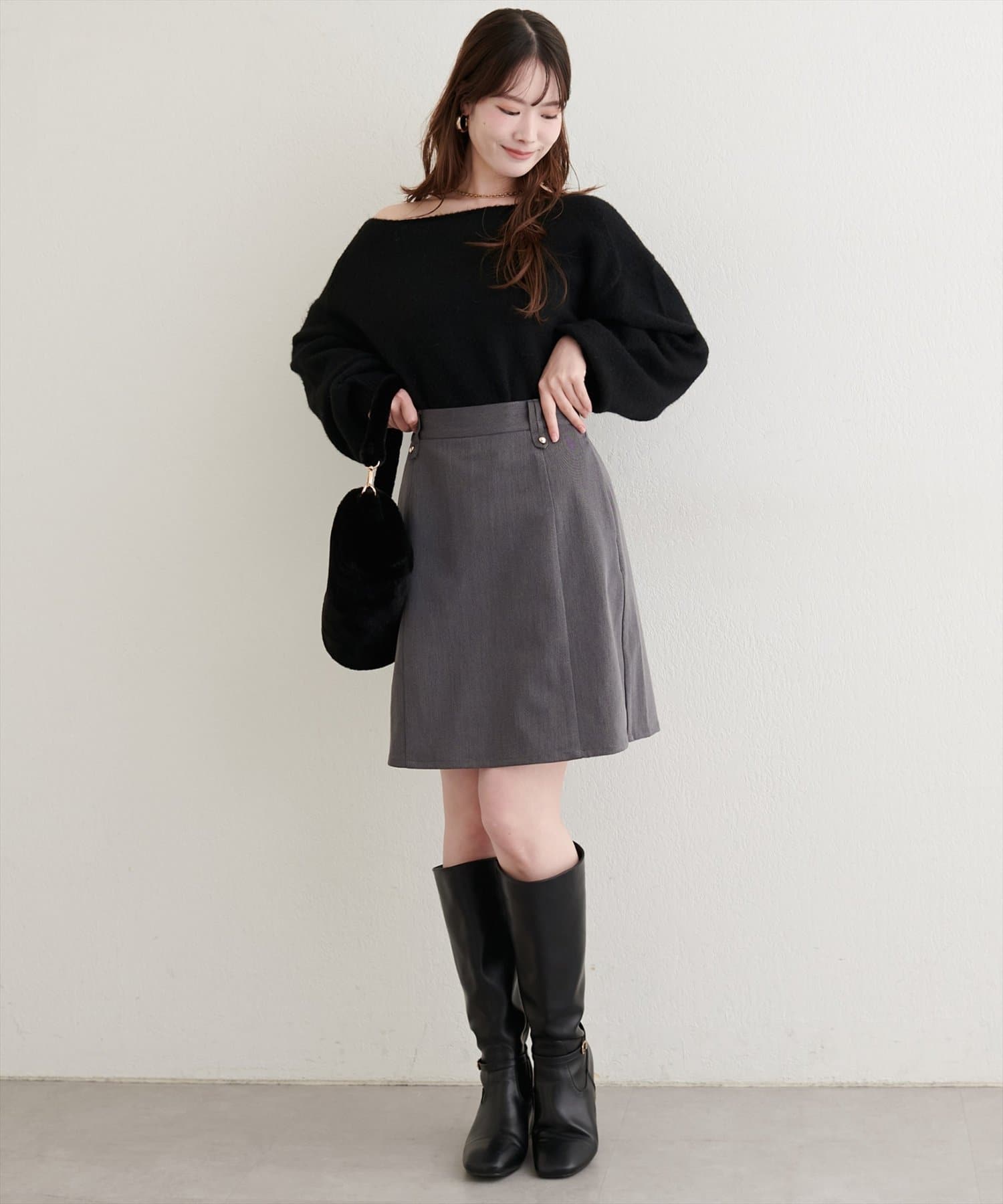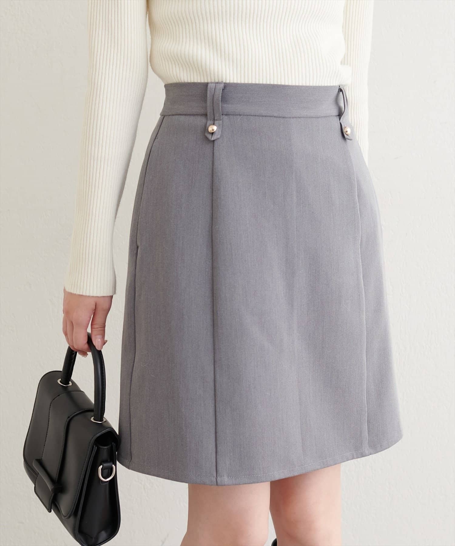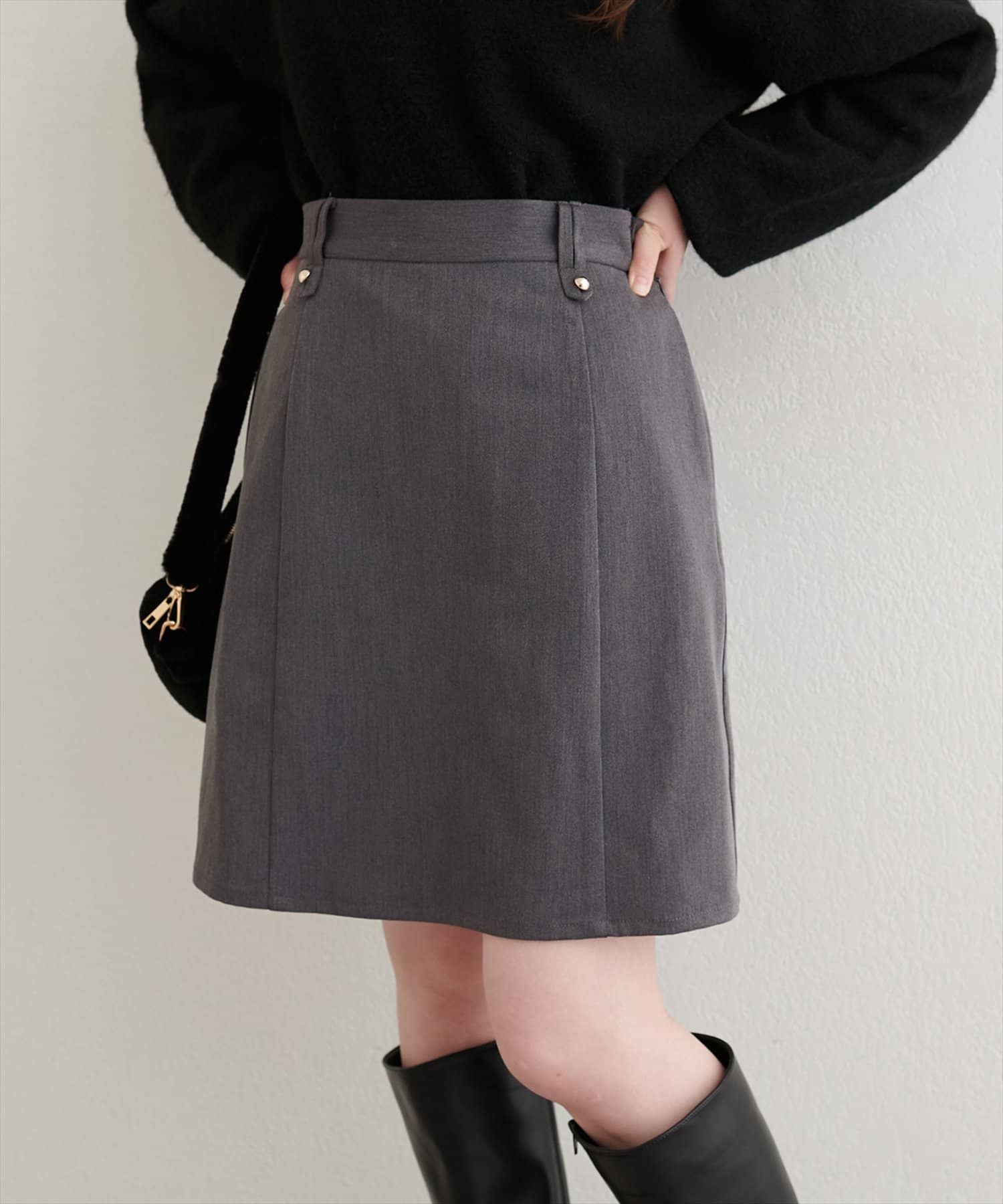 台形シルエットは、気になる腰回りをさりげなくカバーしつつ、脚を細く長く見せてくれる嬉しい効果も。