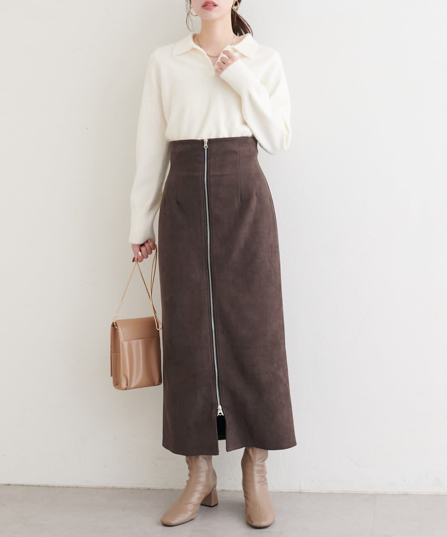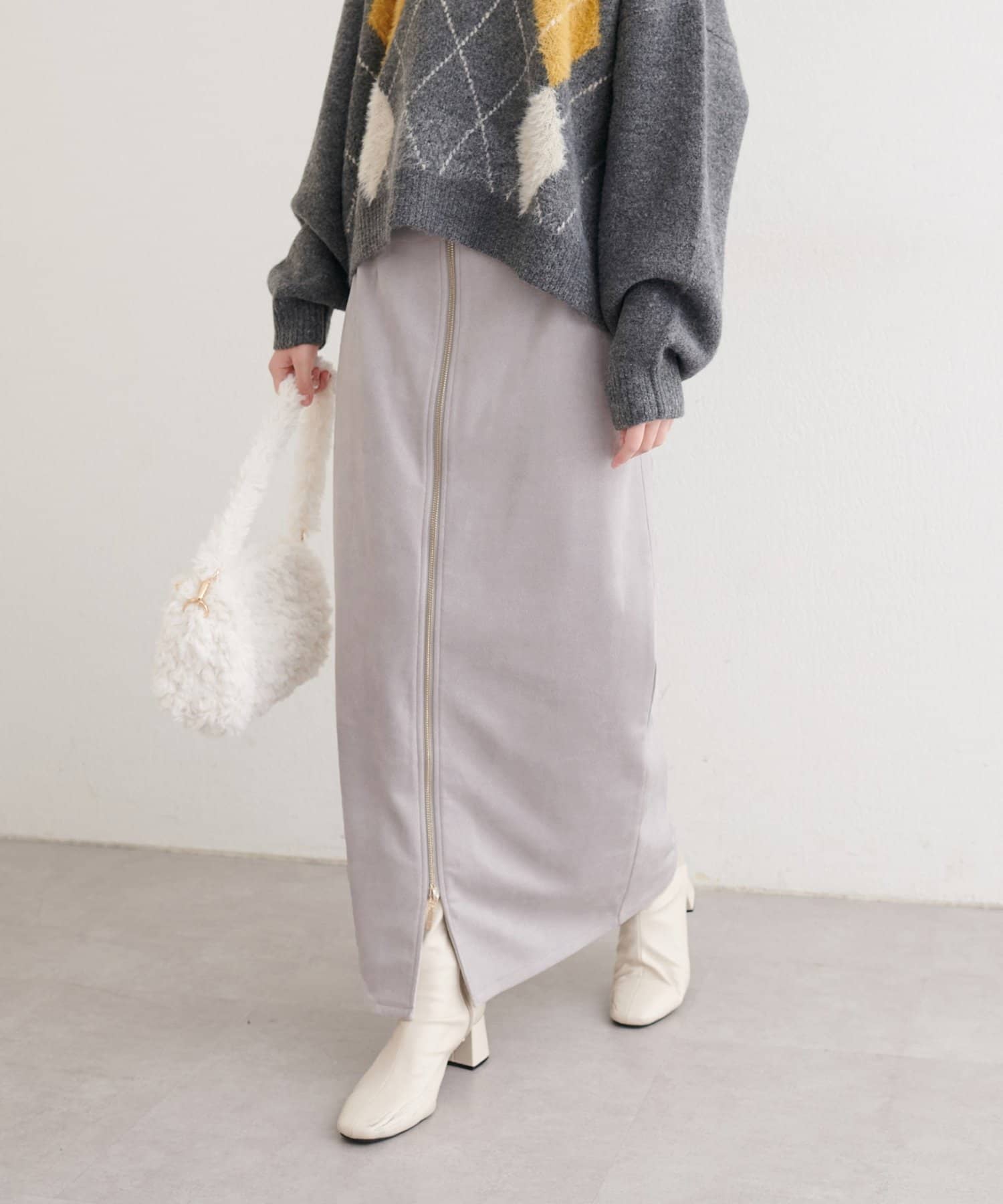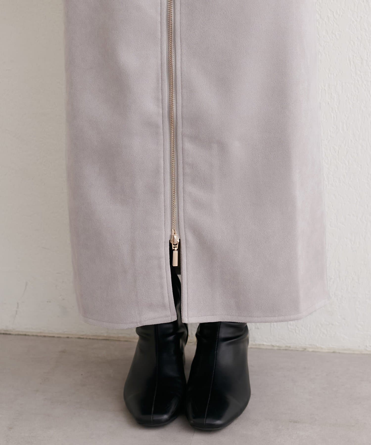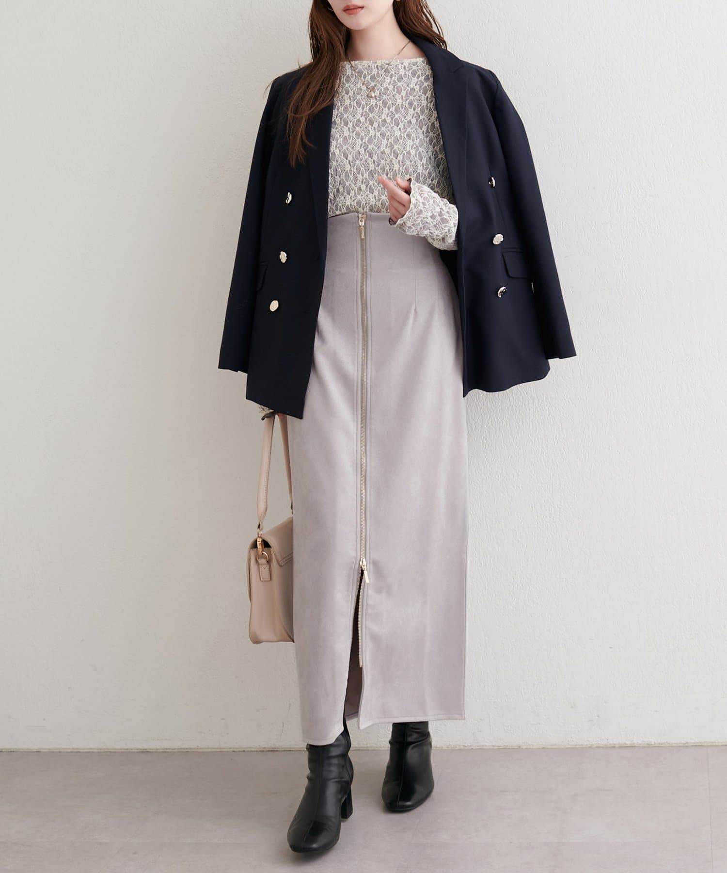 ジップの開閉具合でスリットの深さを調整できるので、着こなしのアレンジも楽しめます。