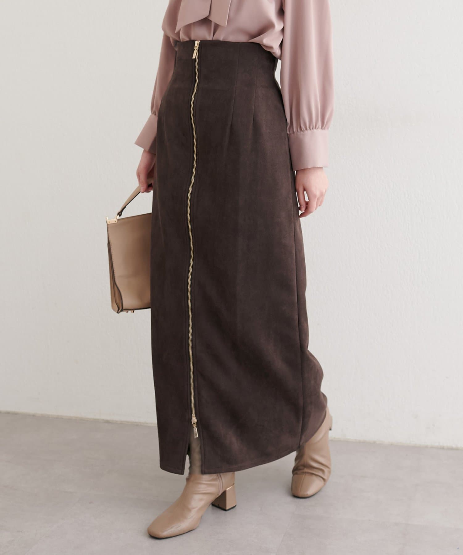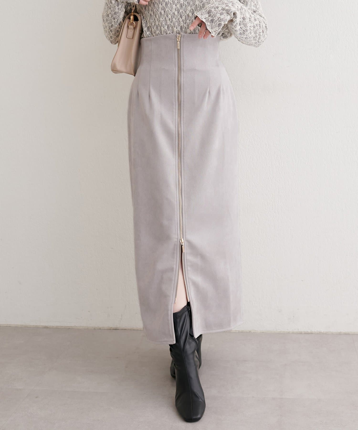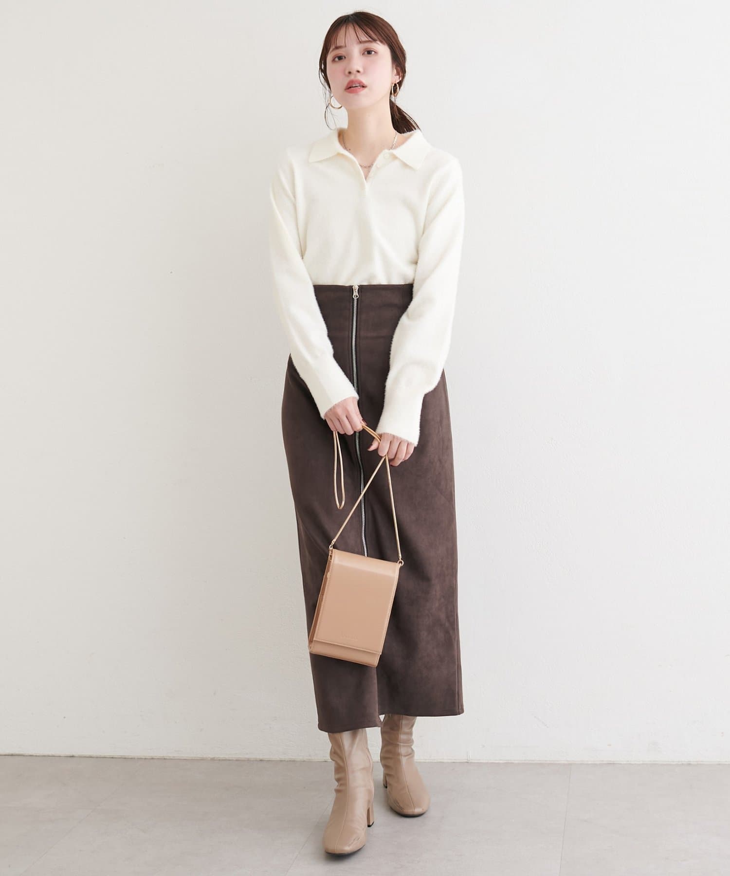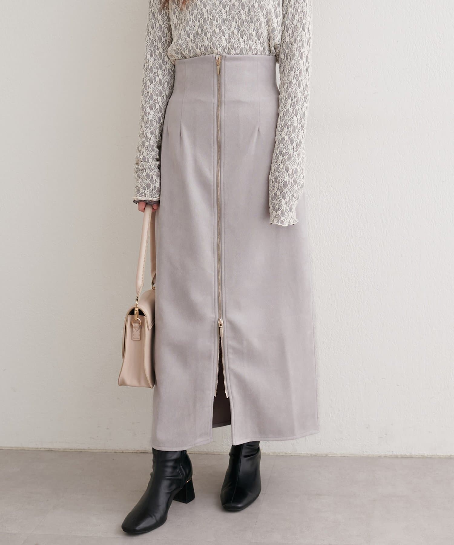 ジップの開閉具合でスリットの深さを調整できるので、着こなしのアレンジも楽しめます。