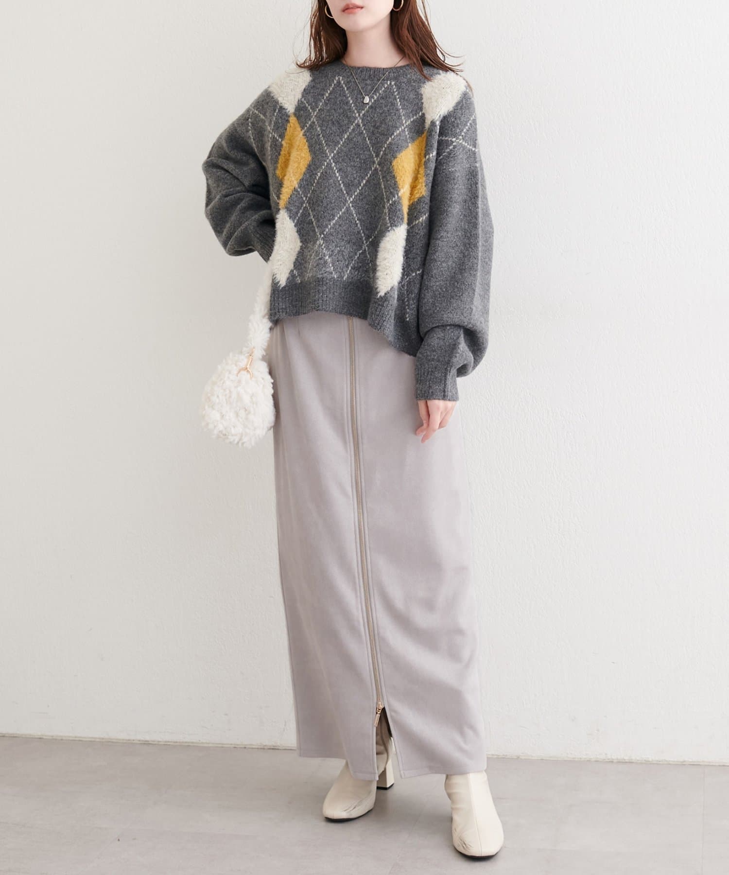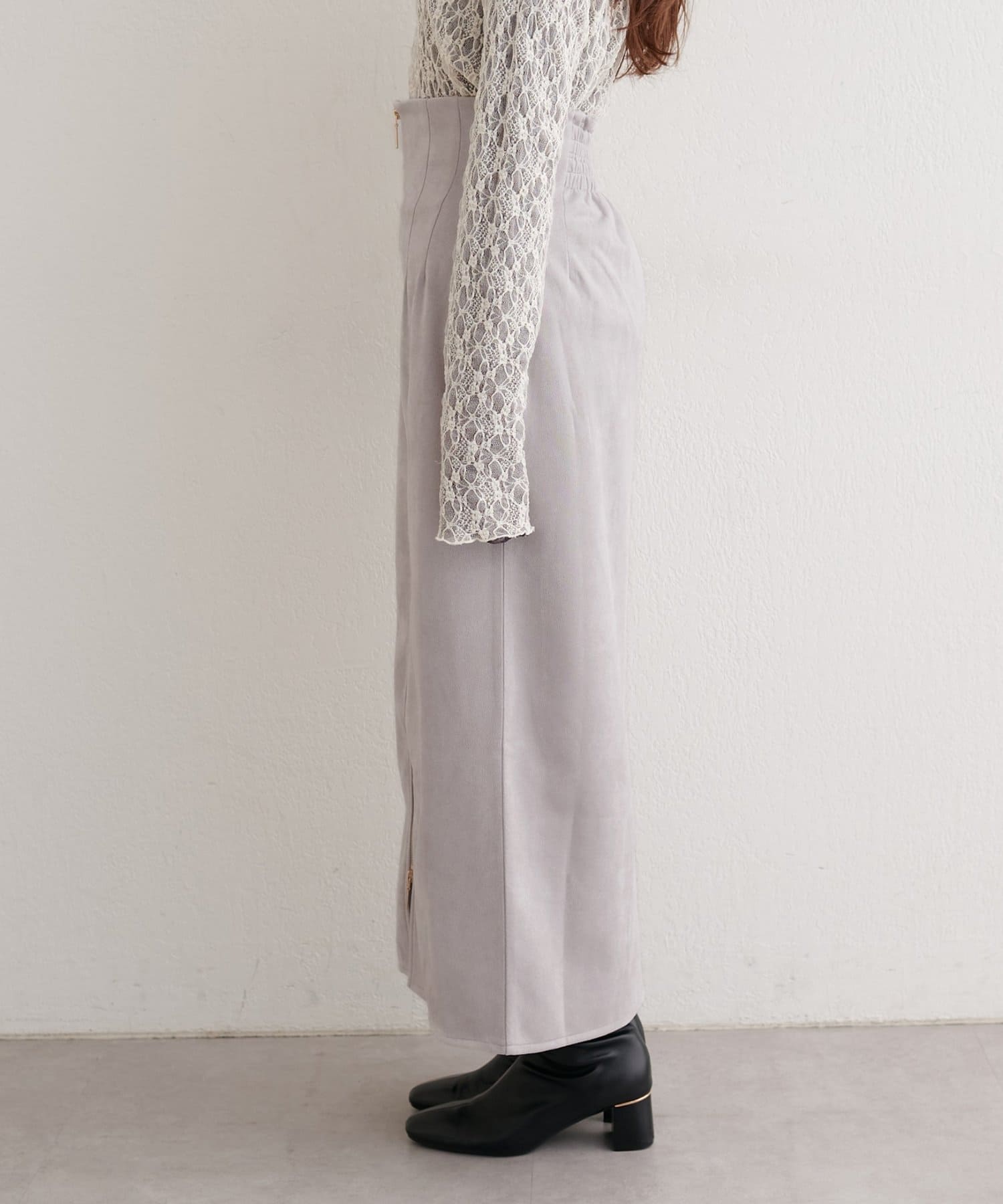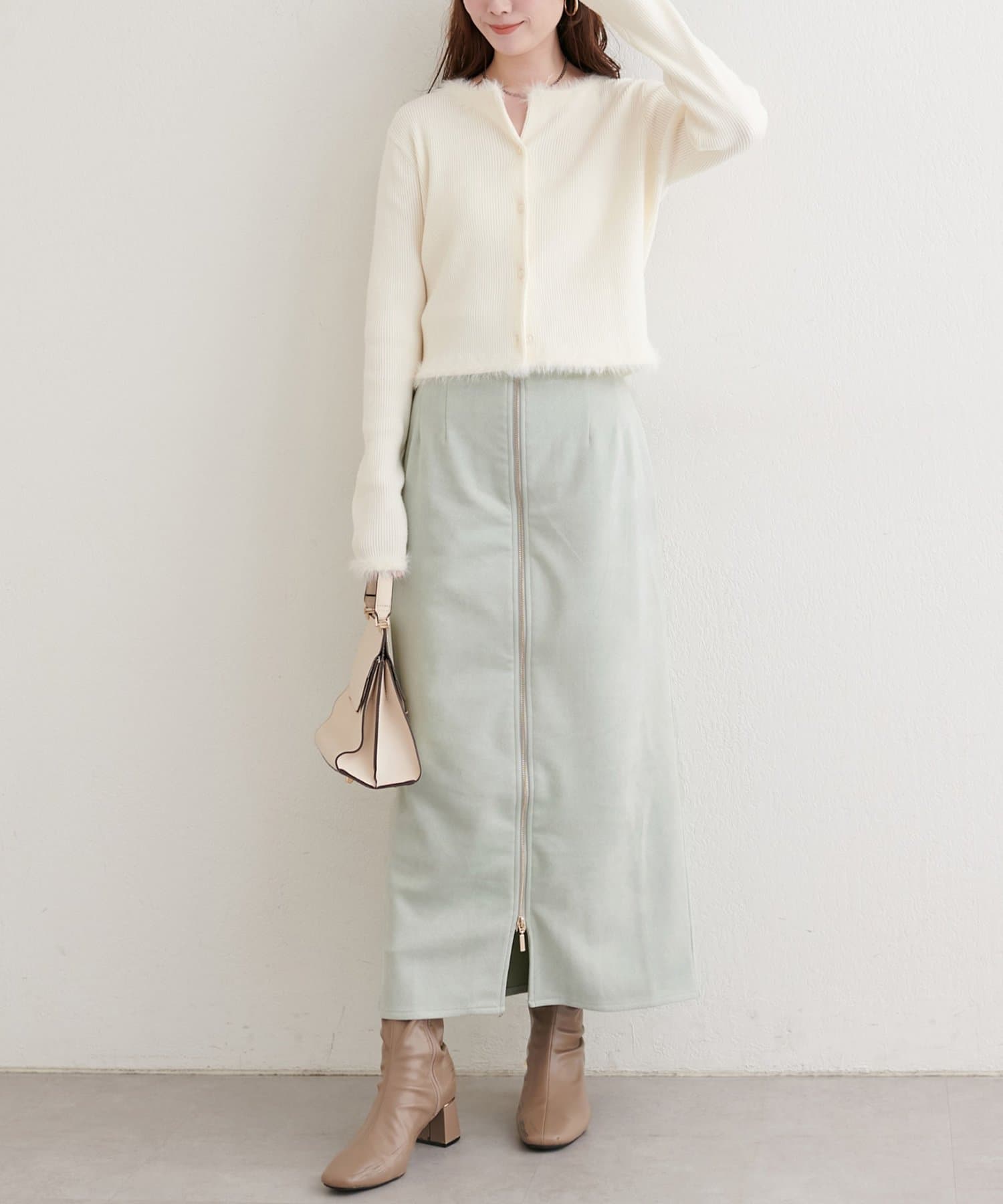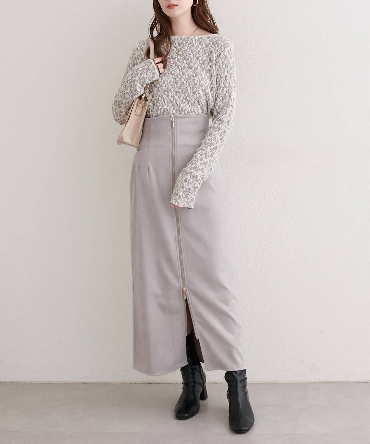 ジップの開閉具合でスリットの深さを調整できるので、着こなしのアレンジも楽しめます。