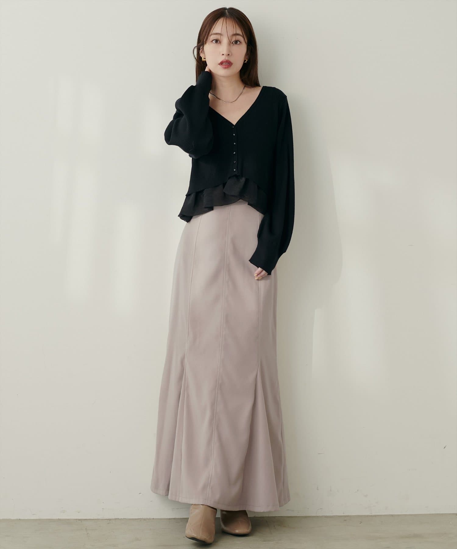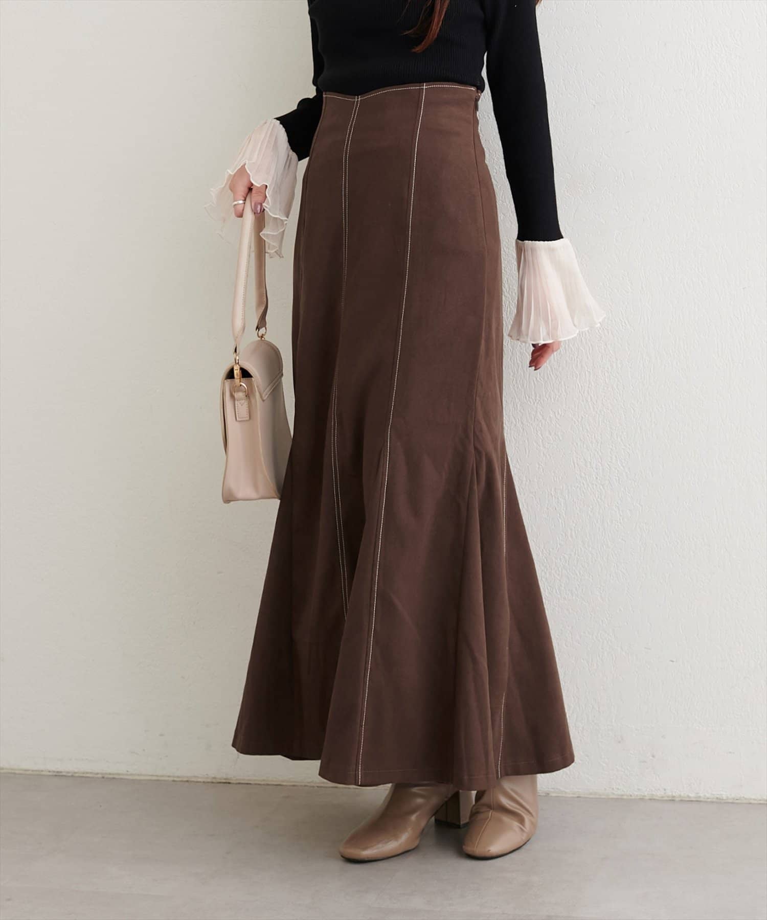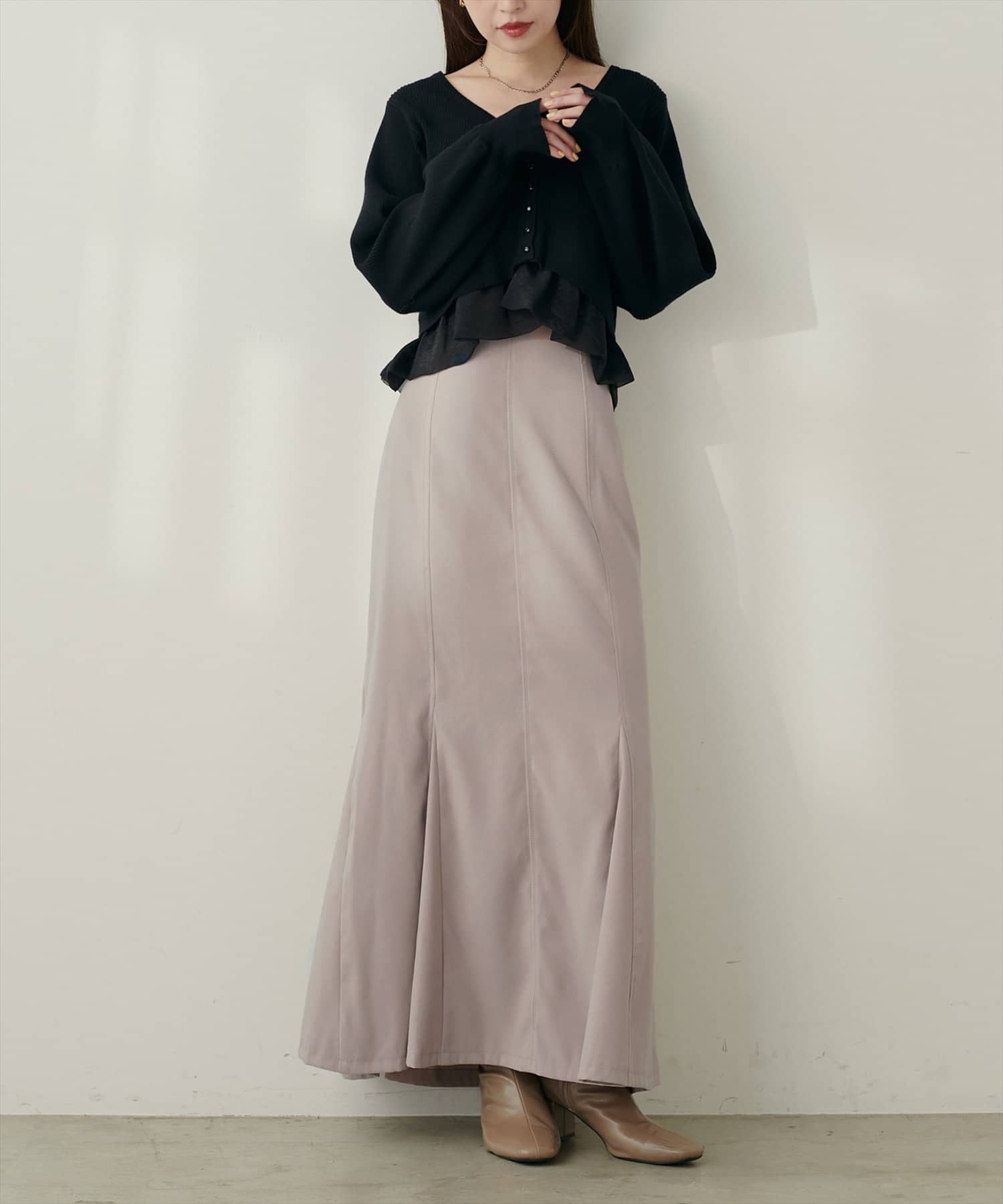 • natural couture(ナチュラルクチュール) 【WEB限定】ハートウエスト起毛マーメイドスカート