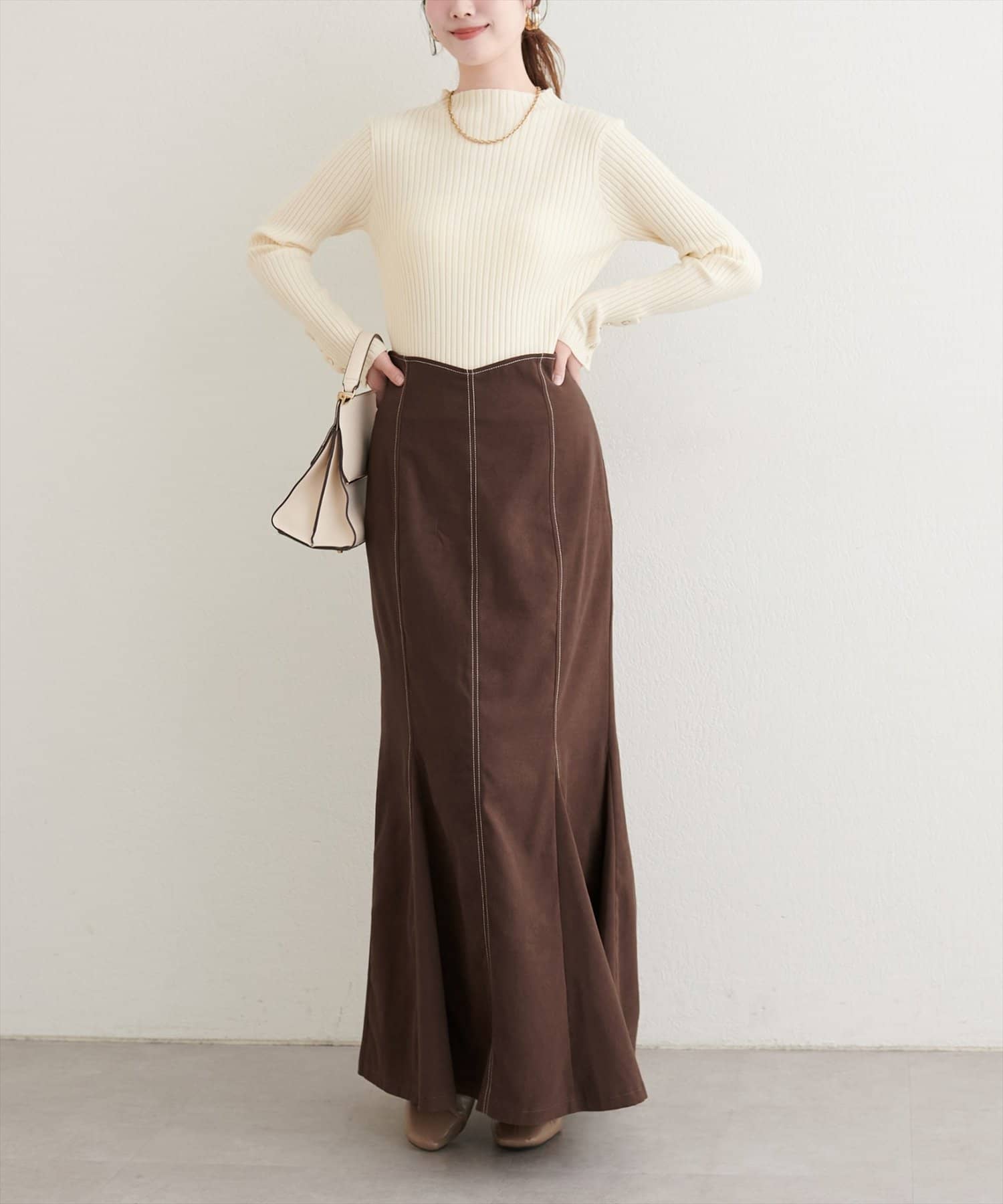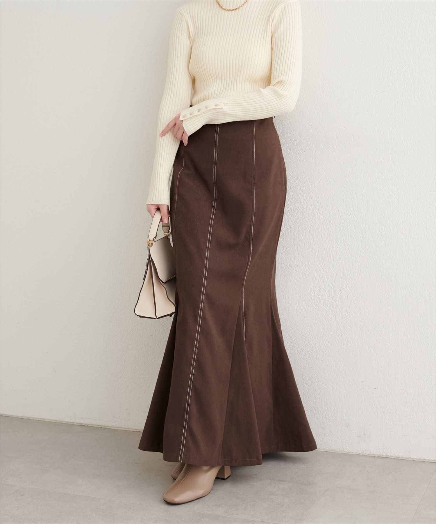 natural couture(ナチュラルクチュール) 【WEB限定】ハートウエスト起毛マーメイドスカート