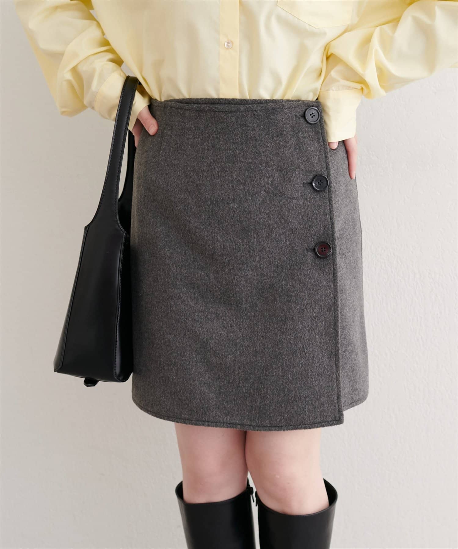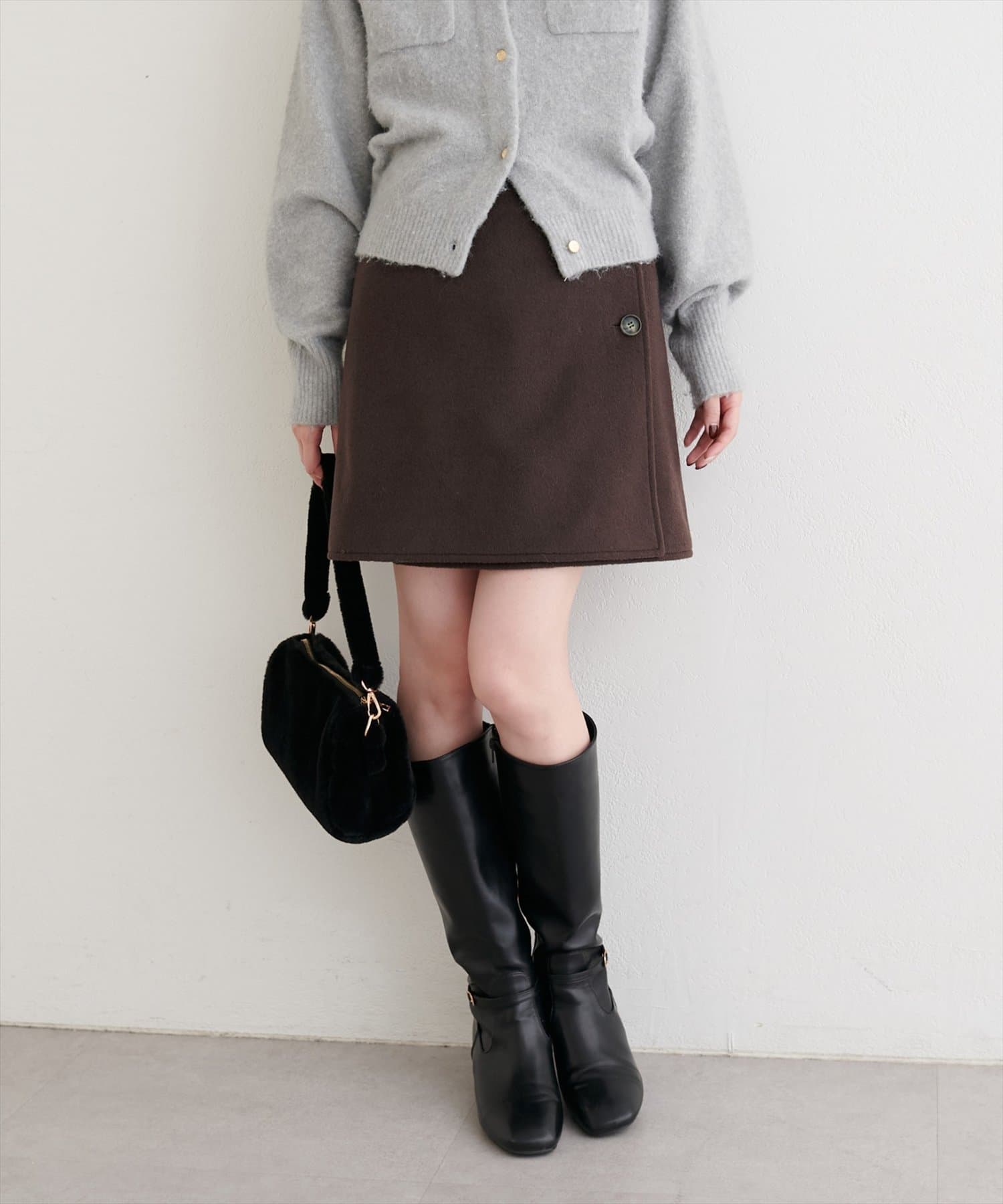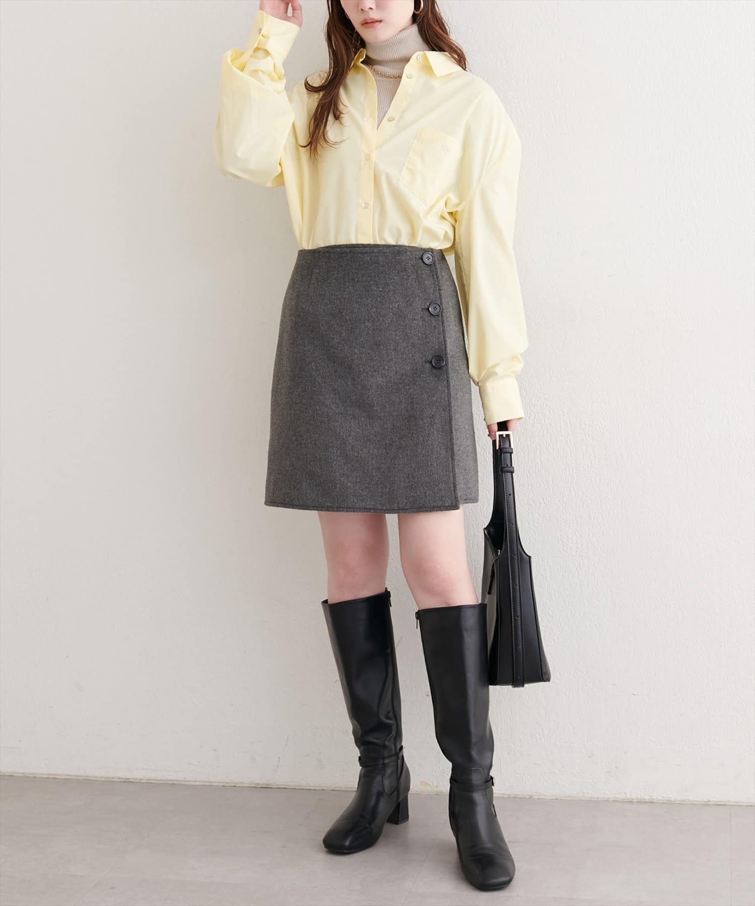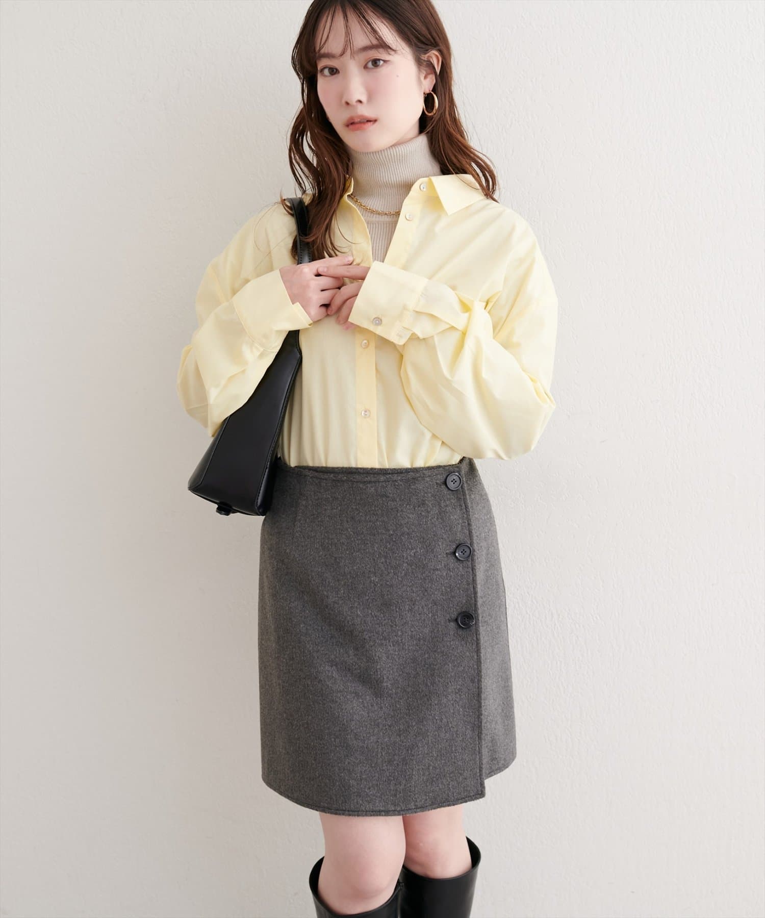 アシンメトリーなラップデザインが、コーディネートに動きとこなれ感をプラス。