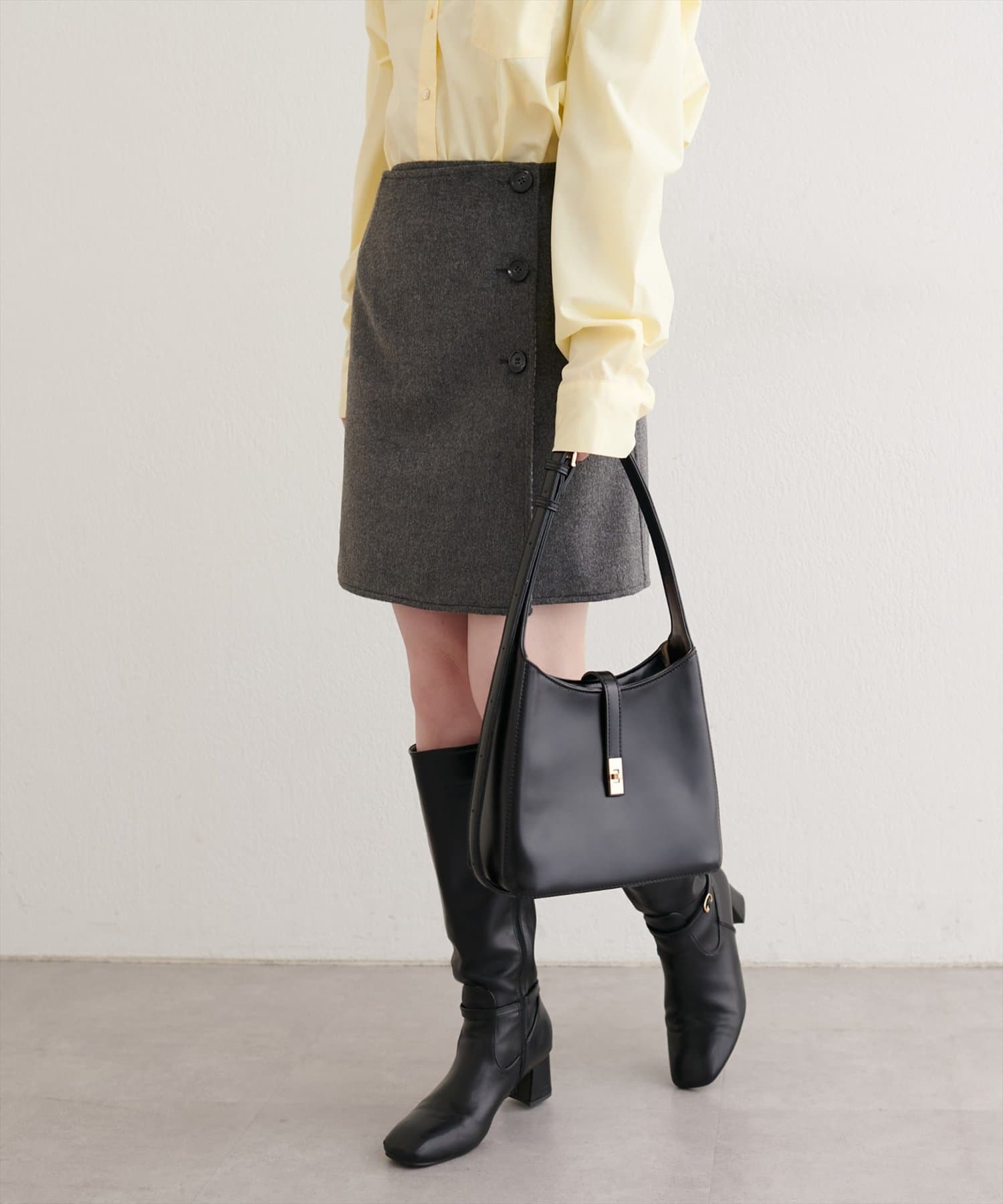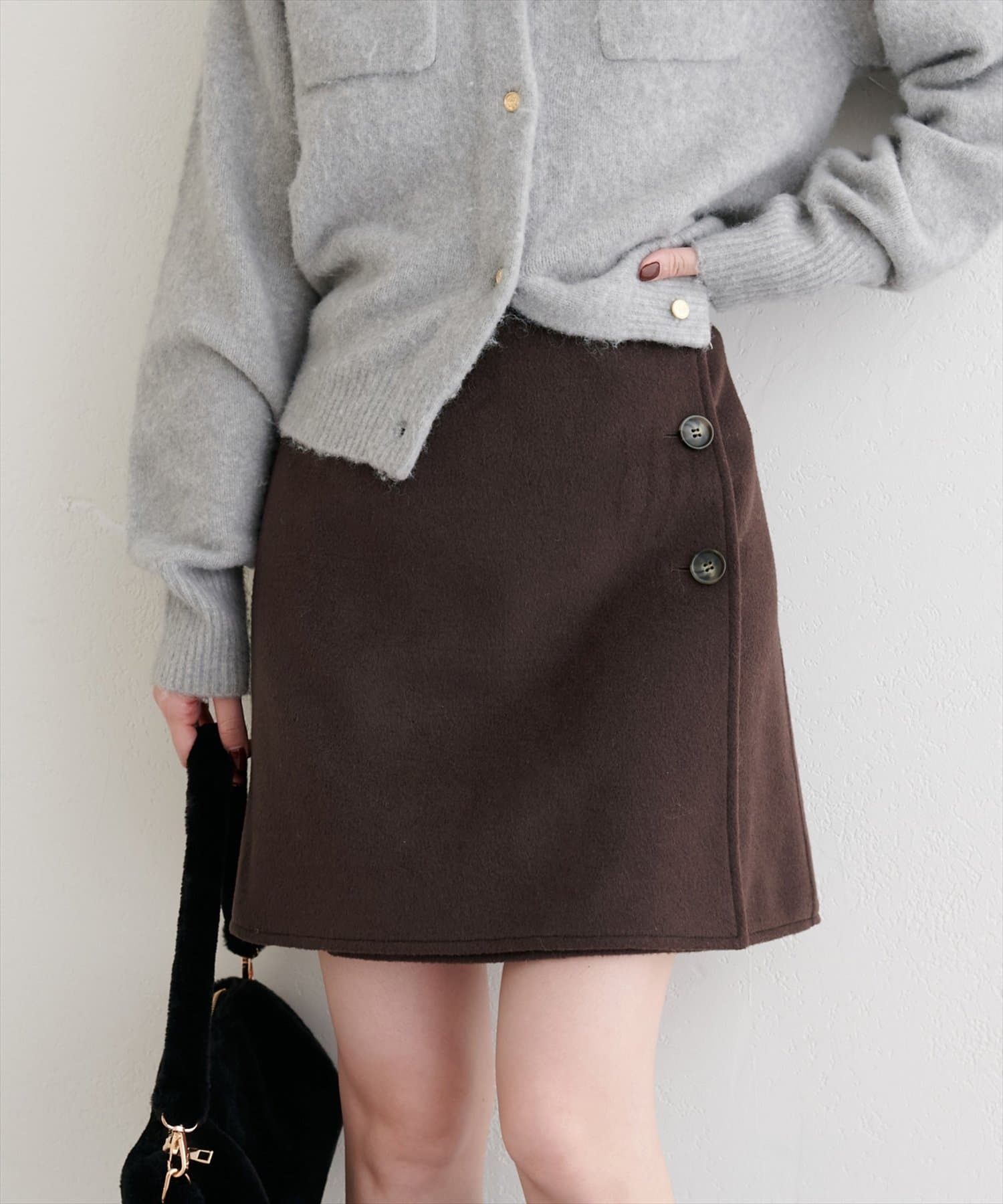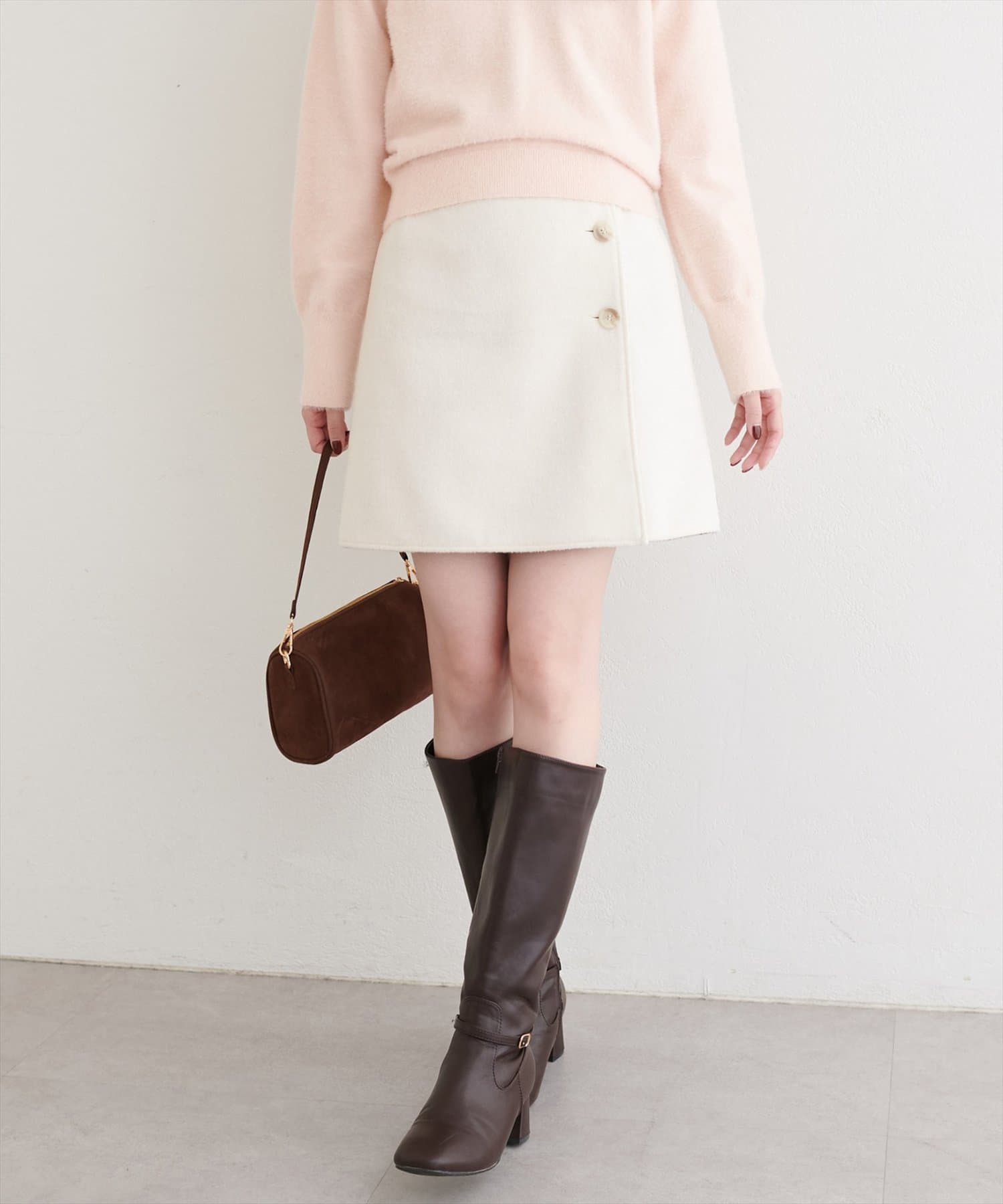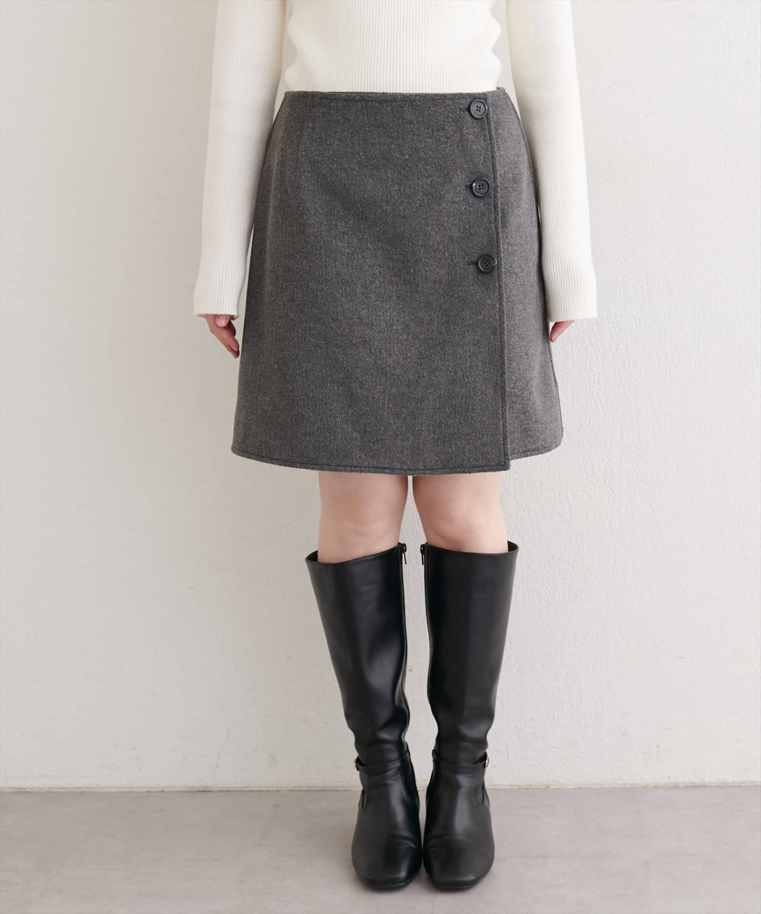 アシンメトリーなラップデザインが、コーディネートに動きとこなれ感をプラス。