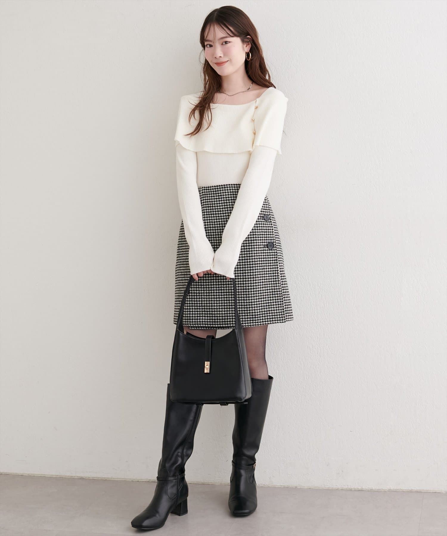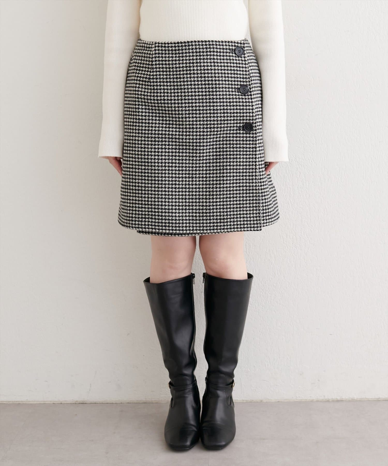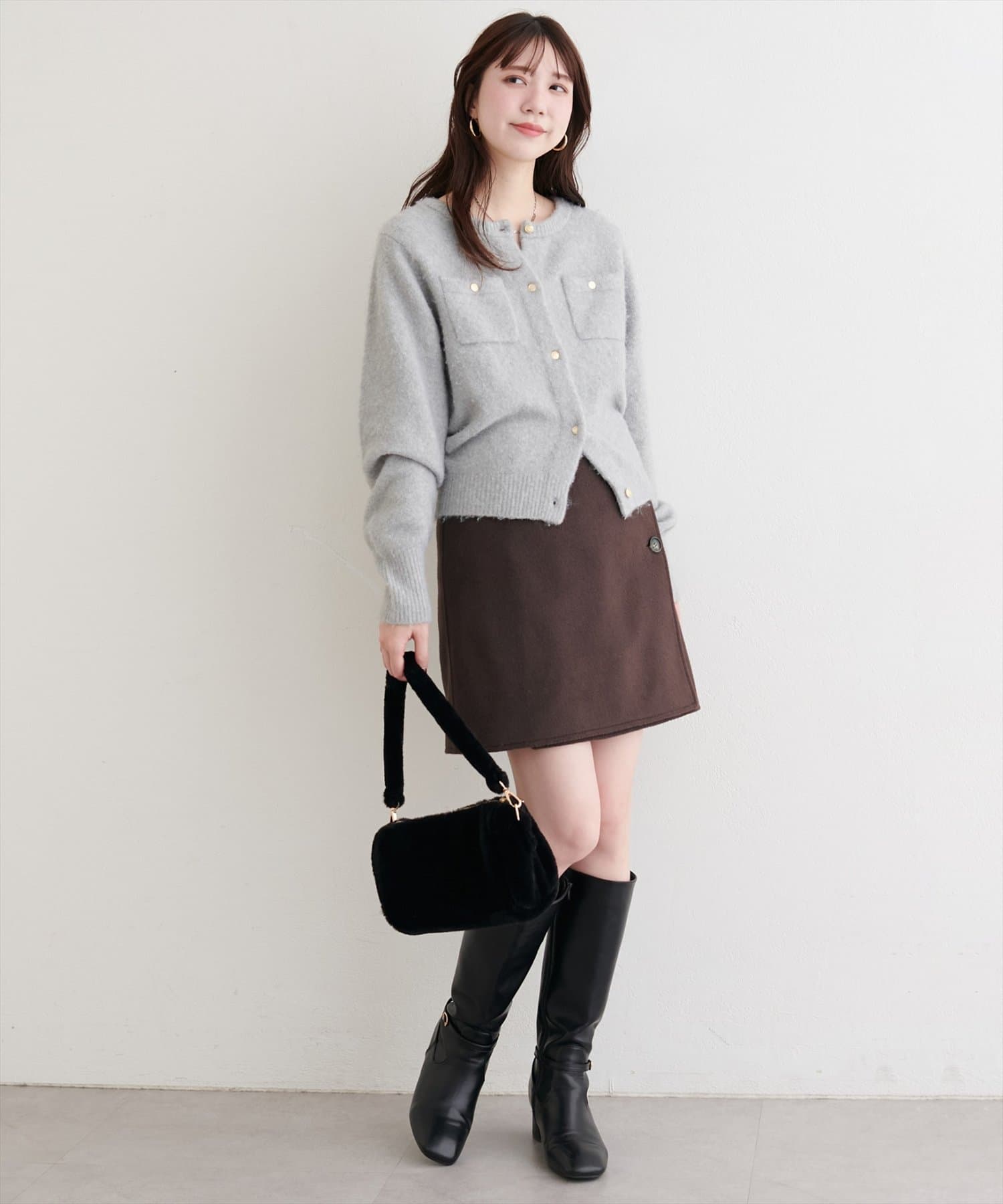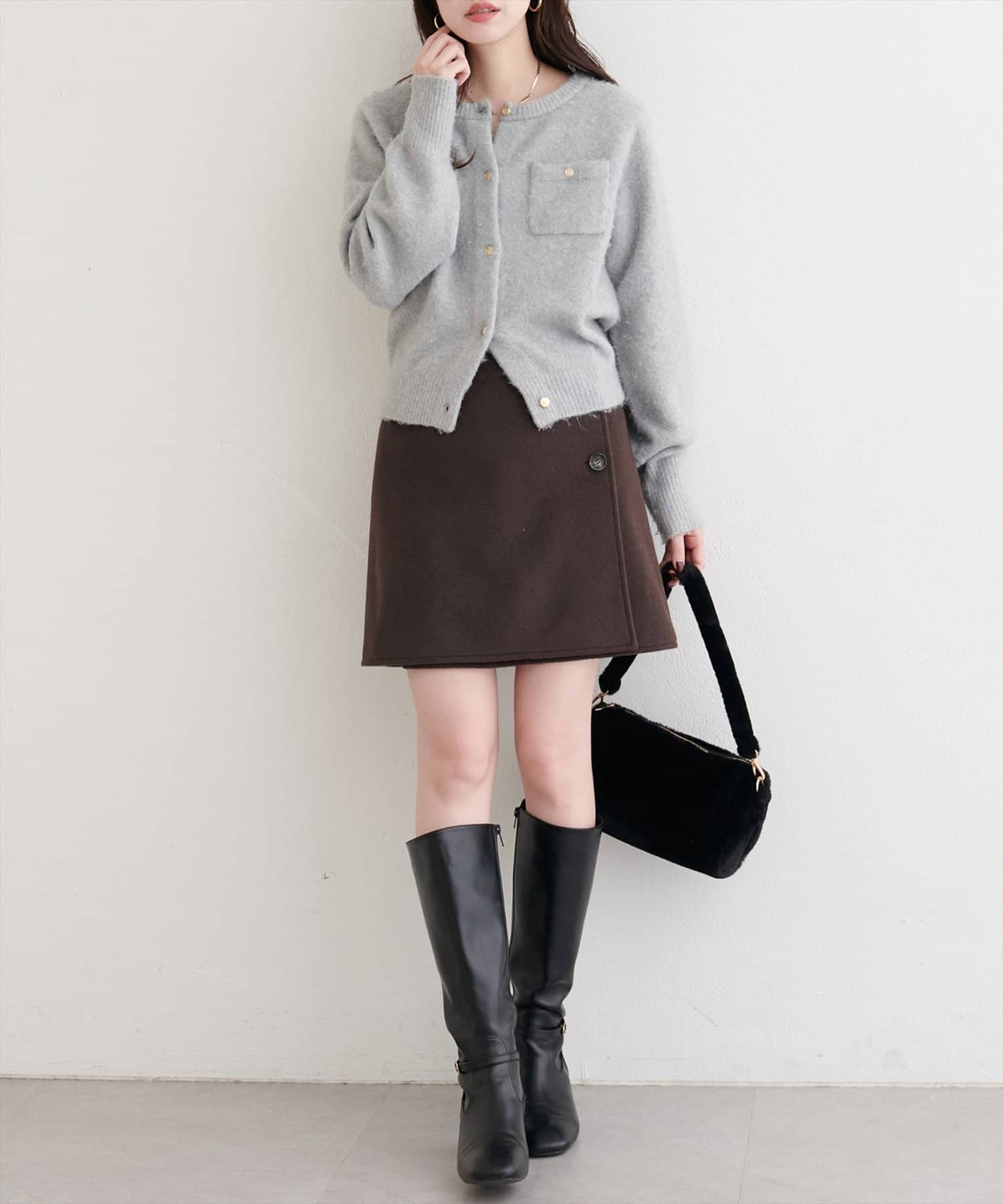 アシンメトリーなラップデザインが、コーディネートに動きとこなれ感をプラス。