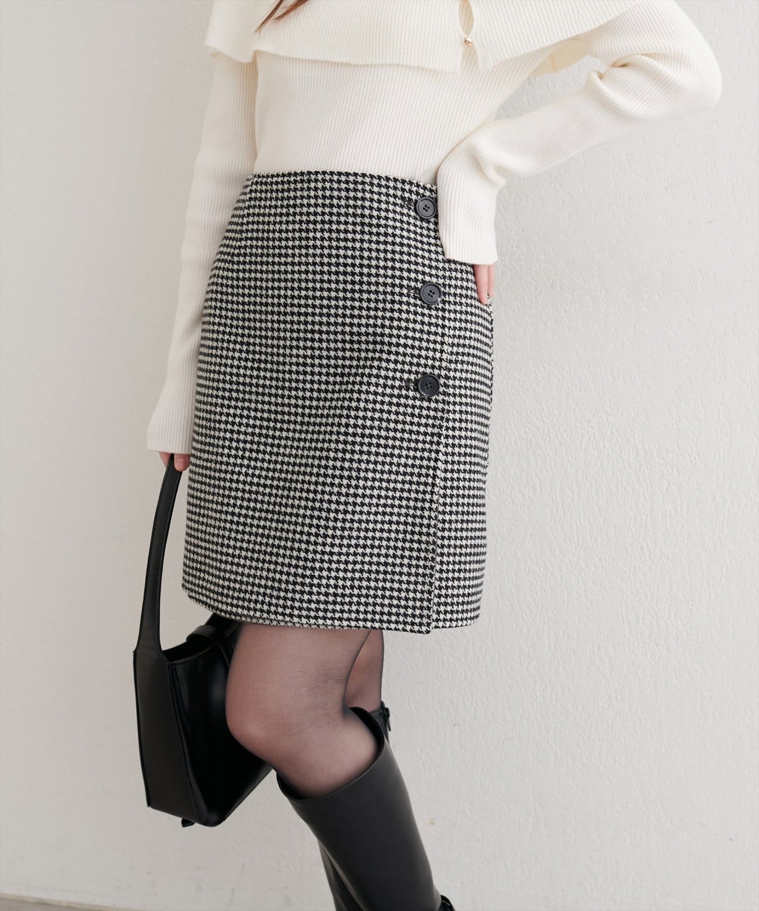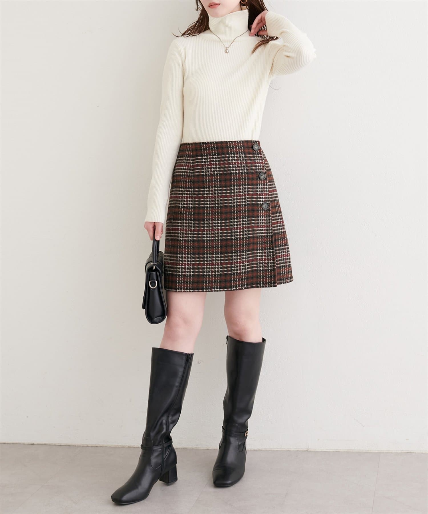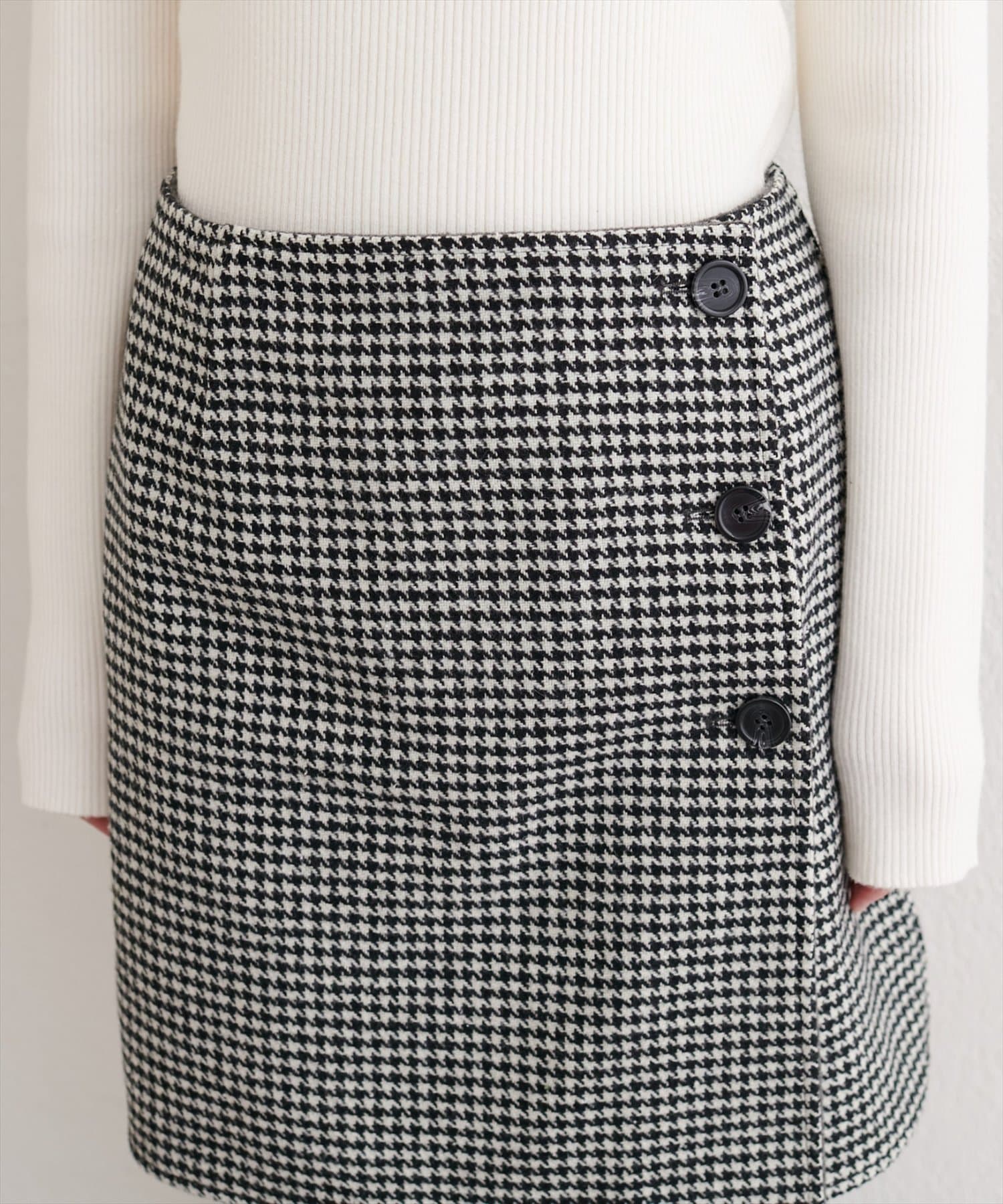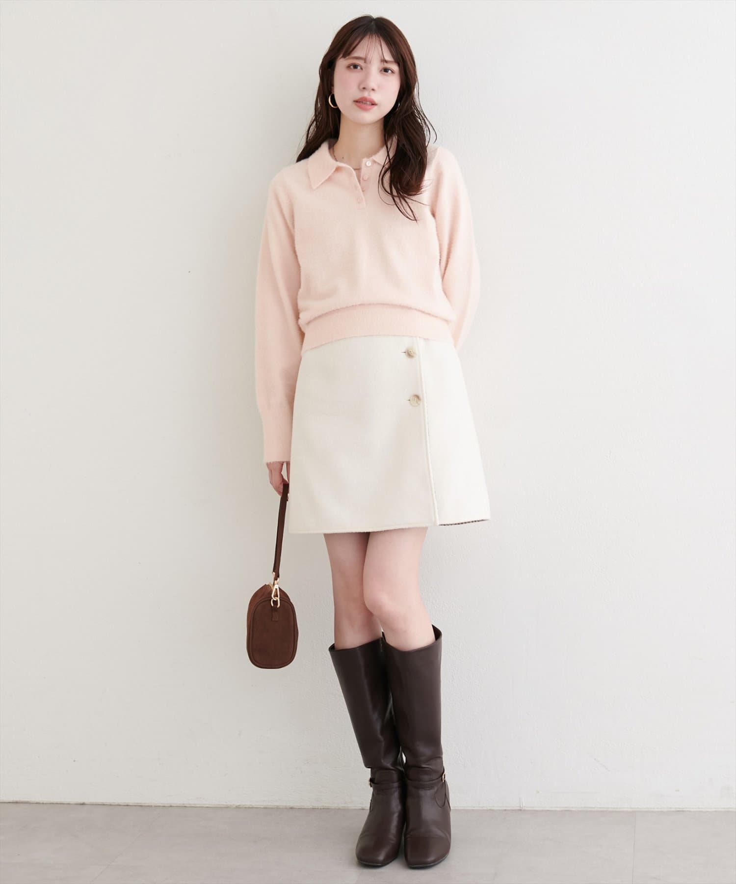 アシンメトリーなラップデザインが、コーディネートに動きとこなれ感をプラス。