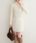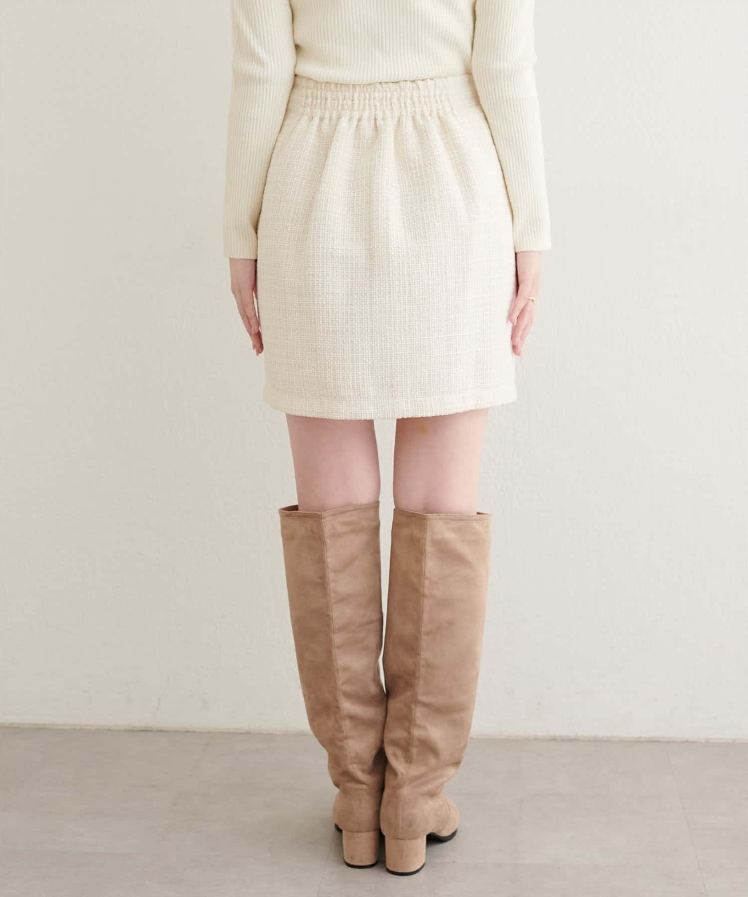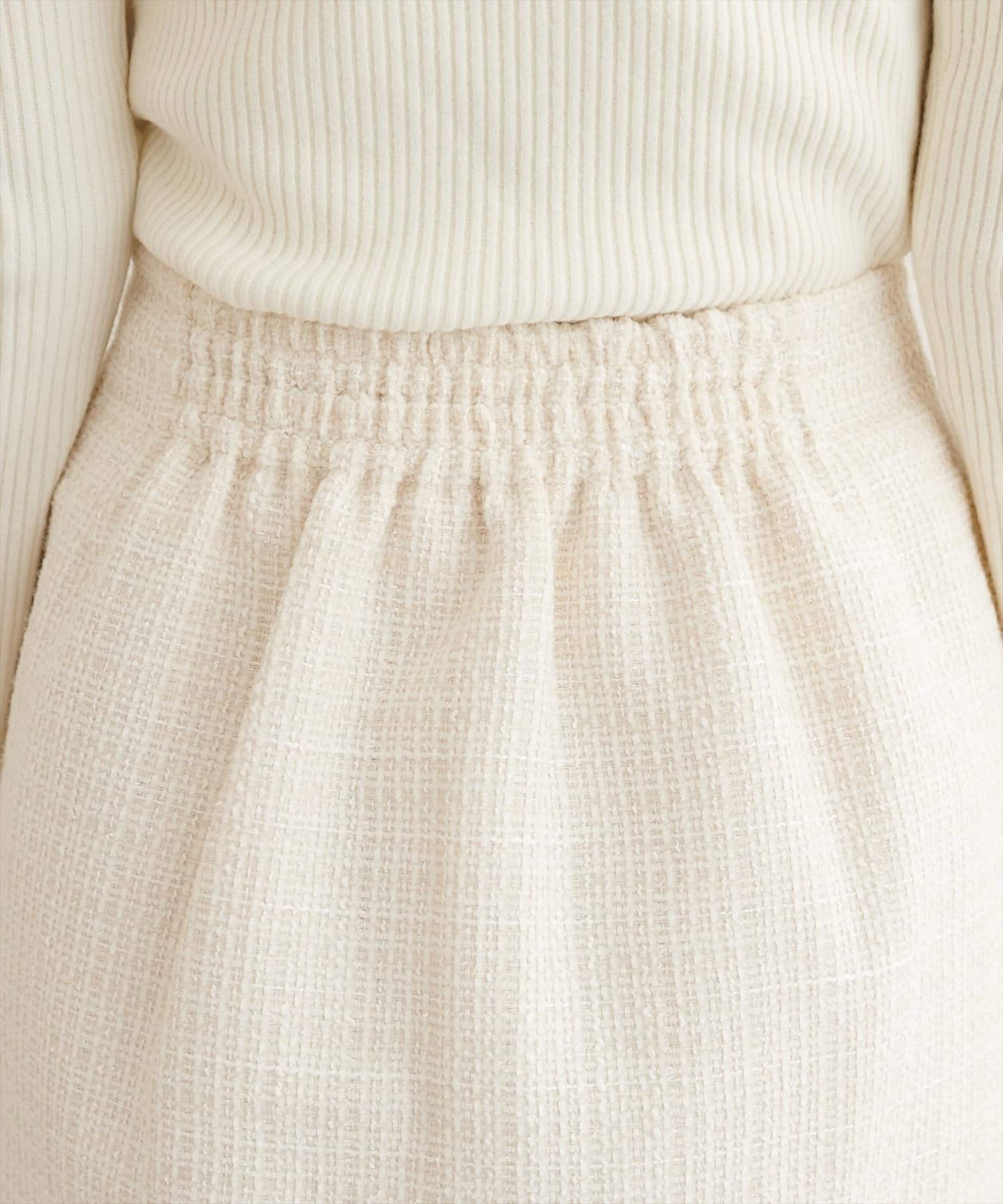 スッキリとしたウエストデザインなので、トップスをアウトスタイルで合わせても変わらずきれいなシルエットになります。