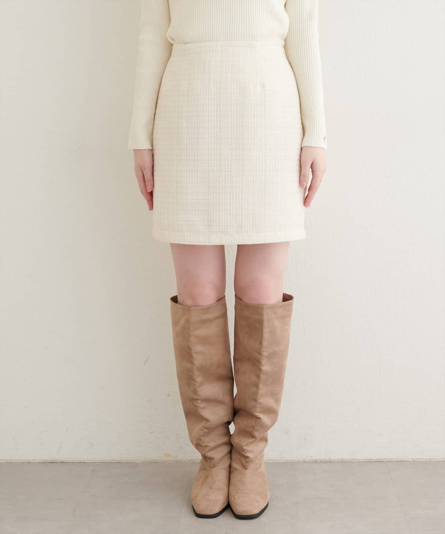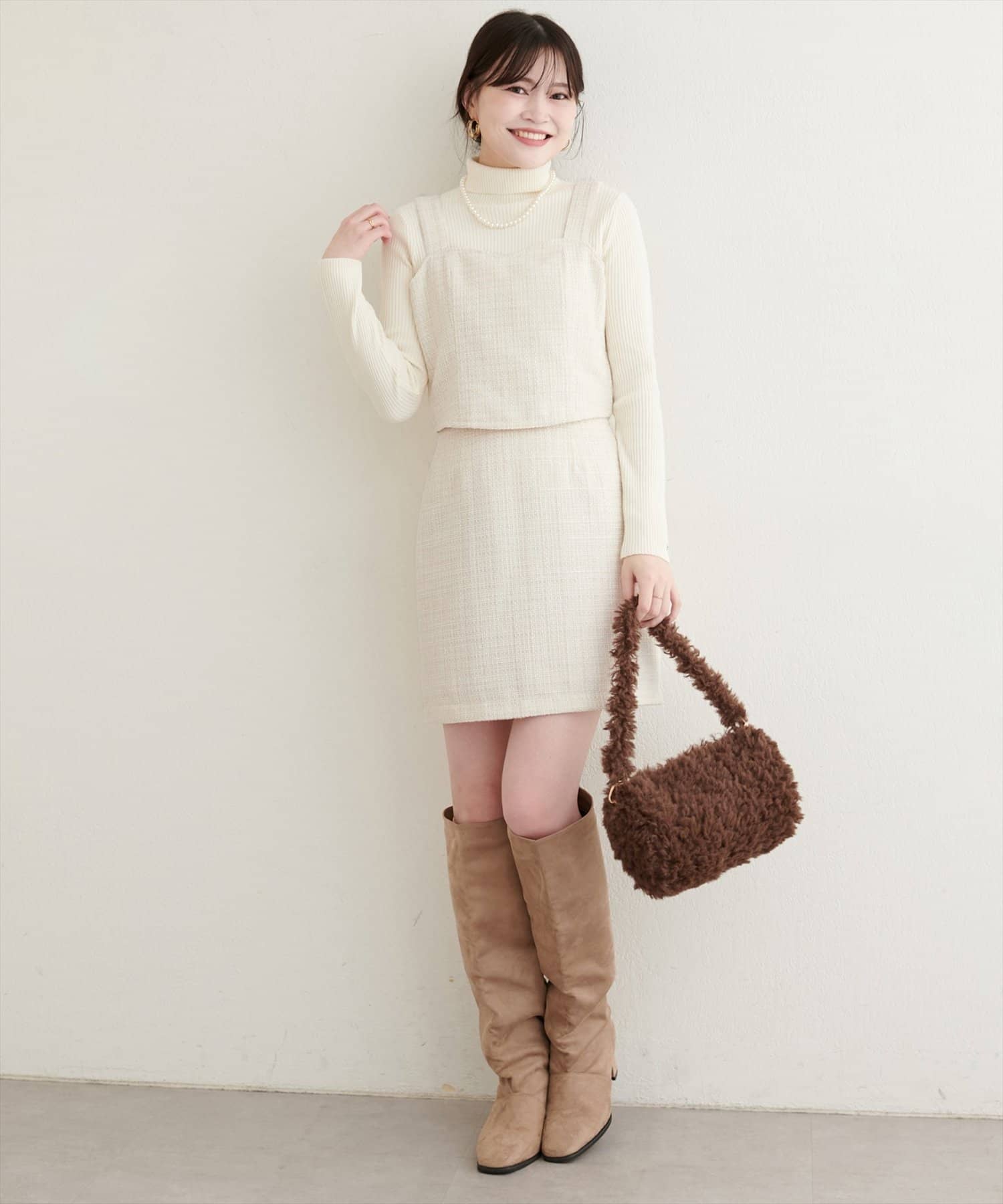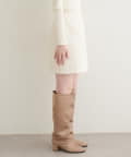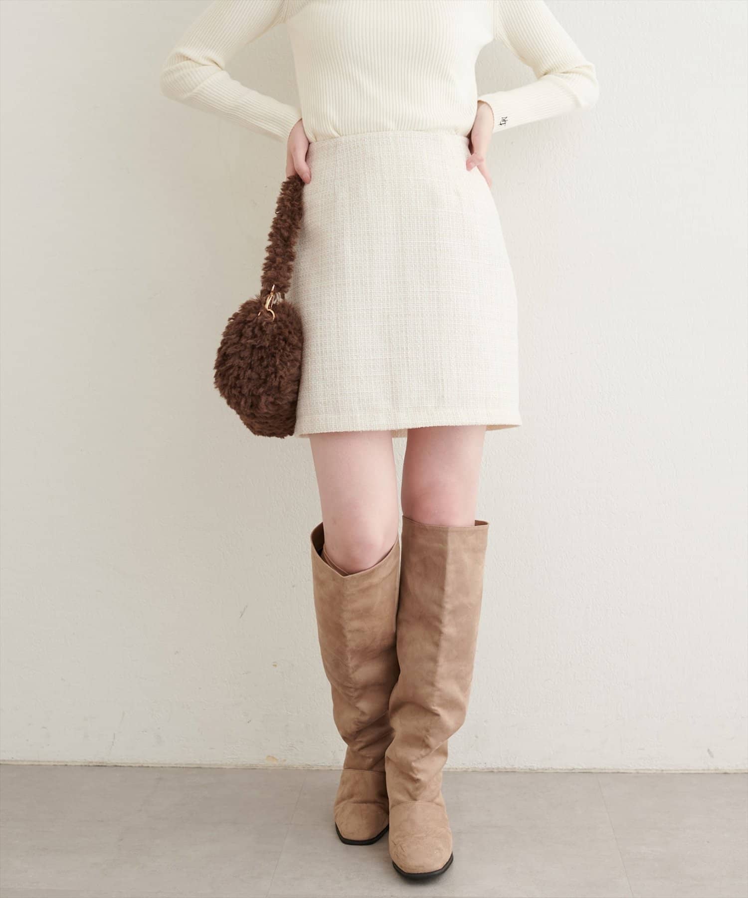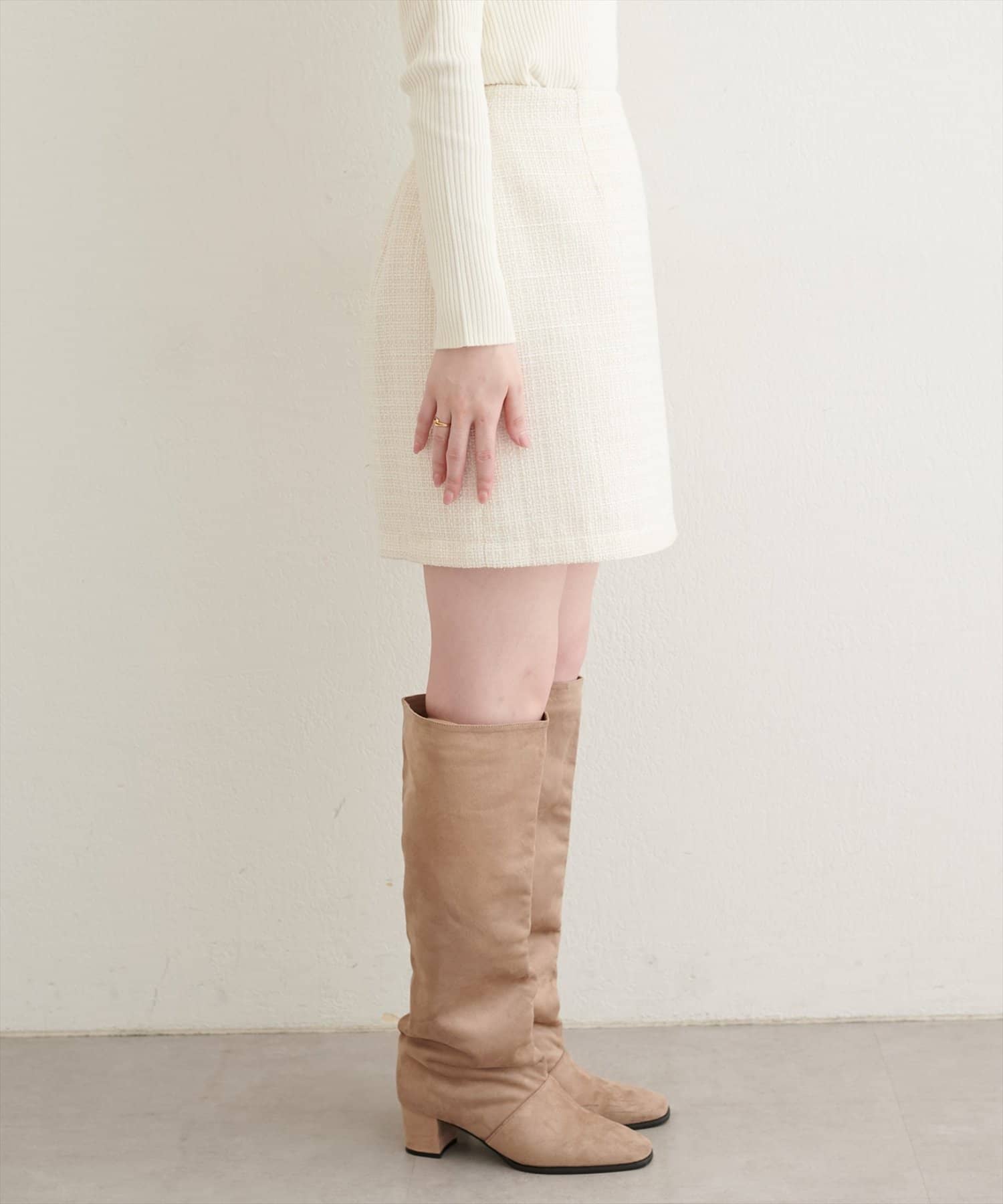 足元の露出が気になるときには、ロングブーツを合わせると肌見せ具合を減らしつつ季節感のあるコーデに仕上がります