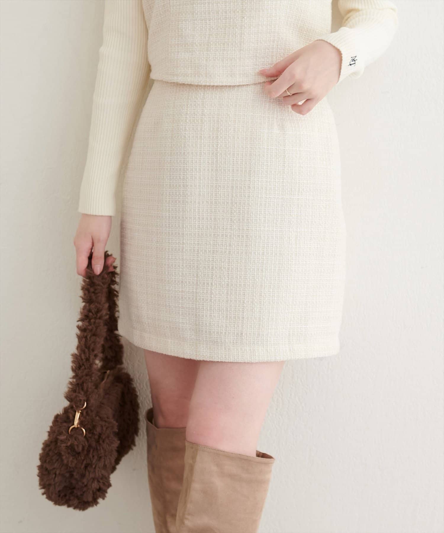 コーデの主役にしたくなる華やかなスカートのトップスには、ジャストサイズのニットやブラウスがおすすめ