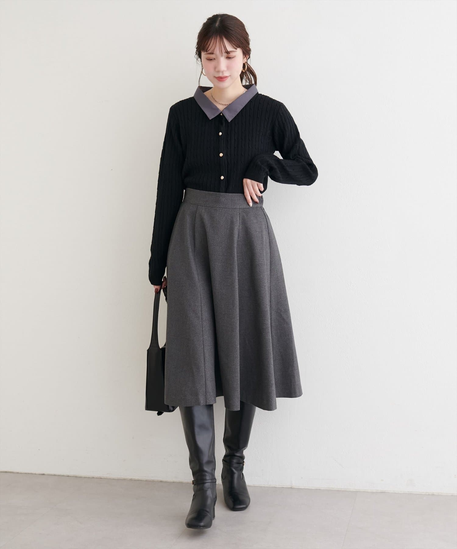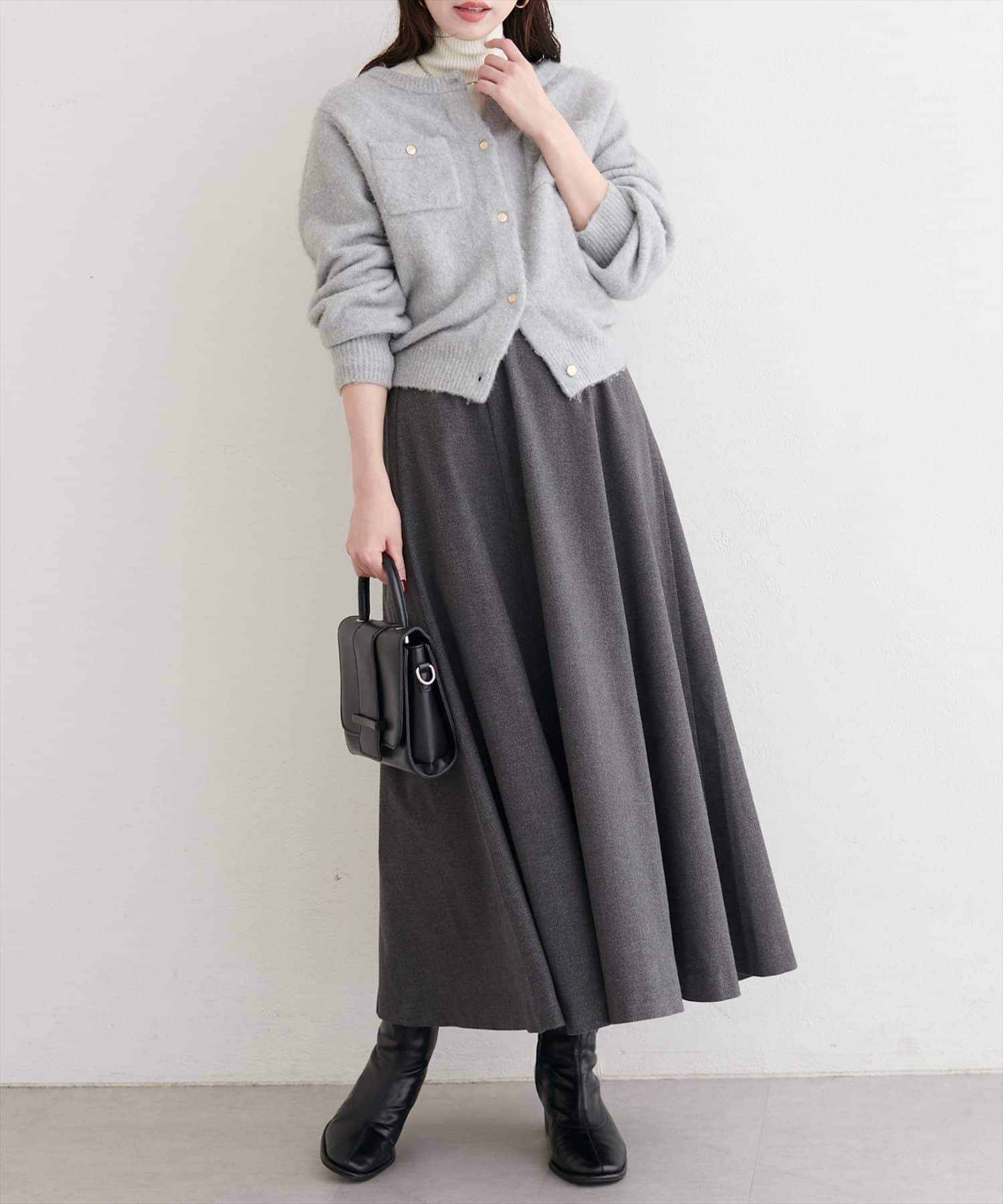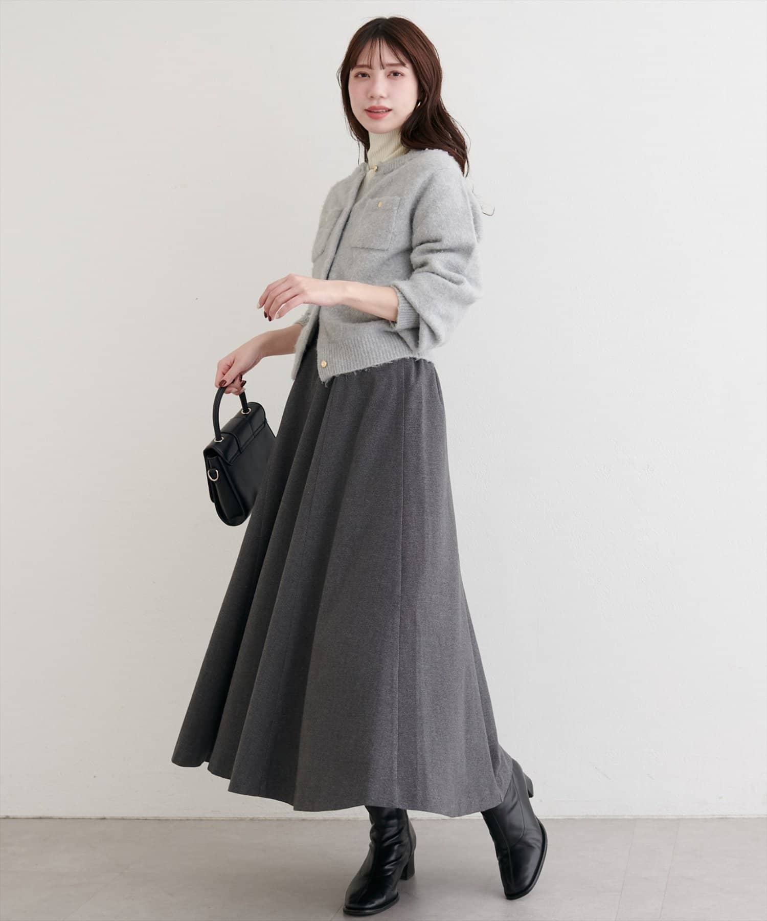 ふんわりと広がるフレアシルエットが、女性らしさを引き立てます。
