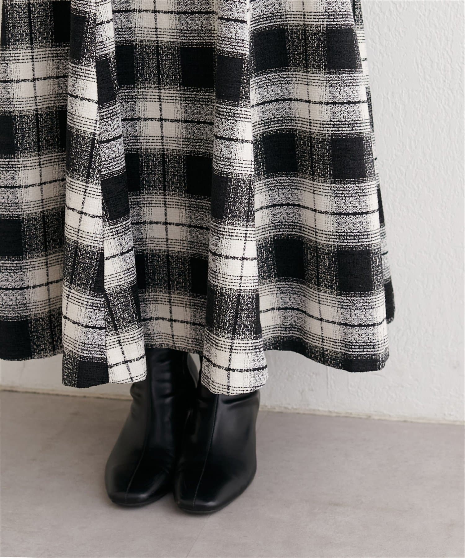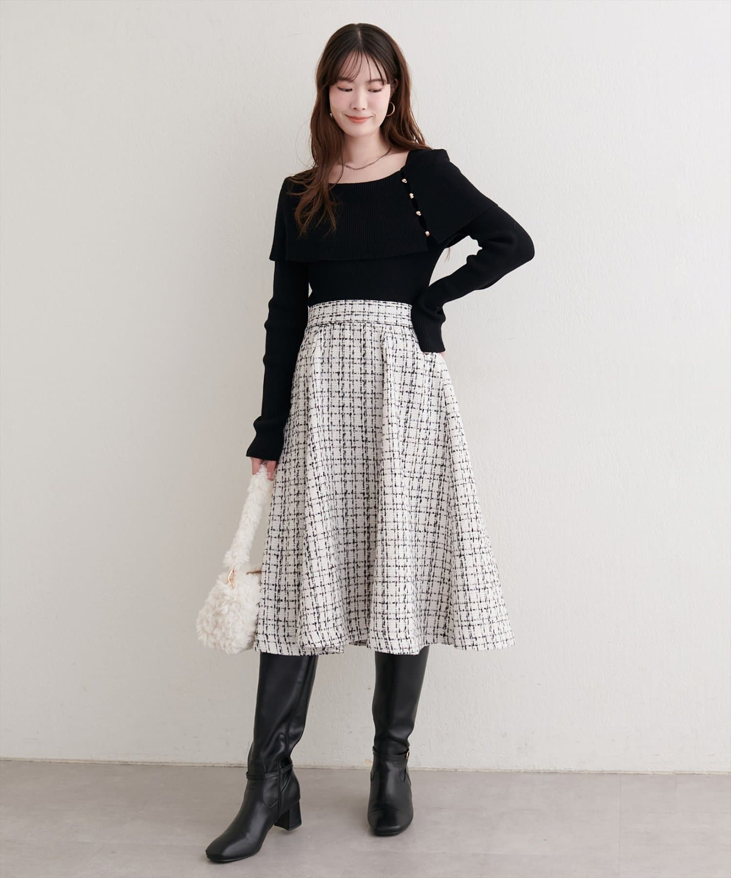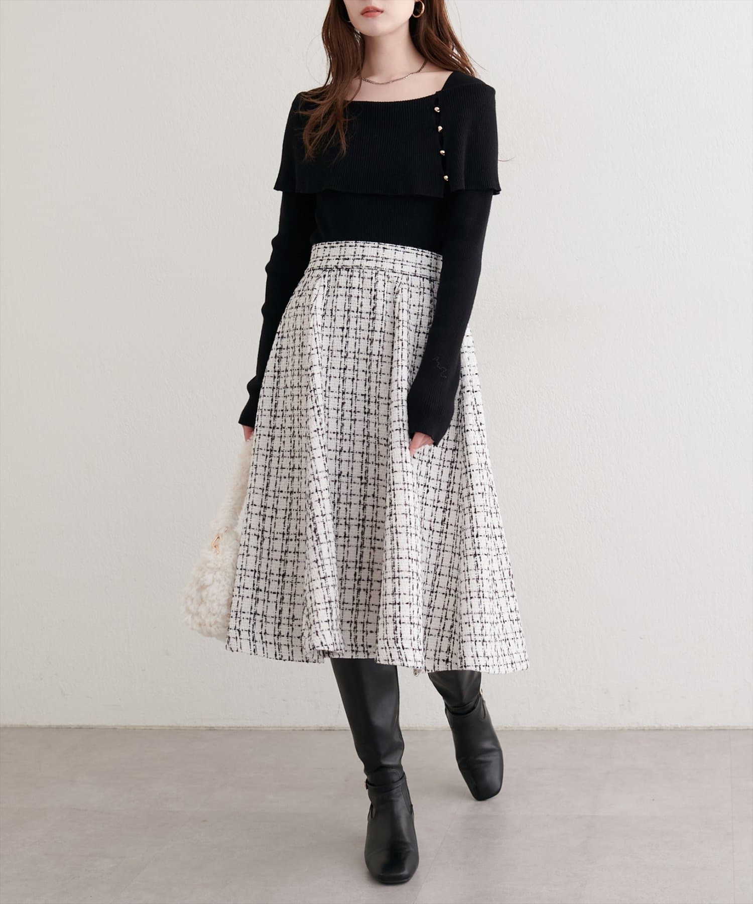 ふんわりと広がるフレアシルエットが、女性らしさを引き立てます。