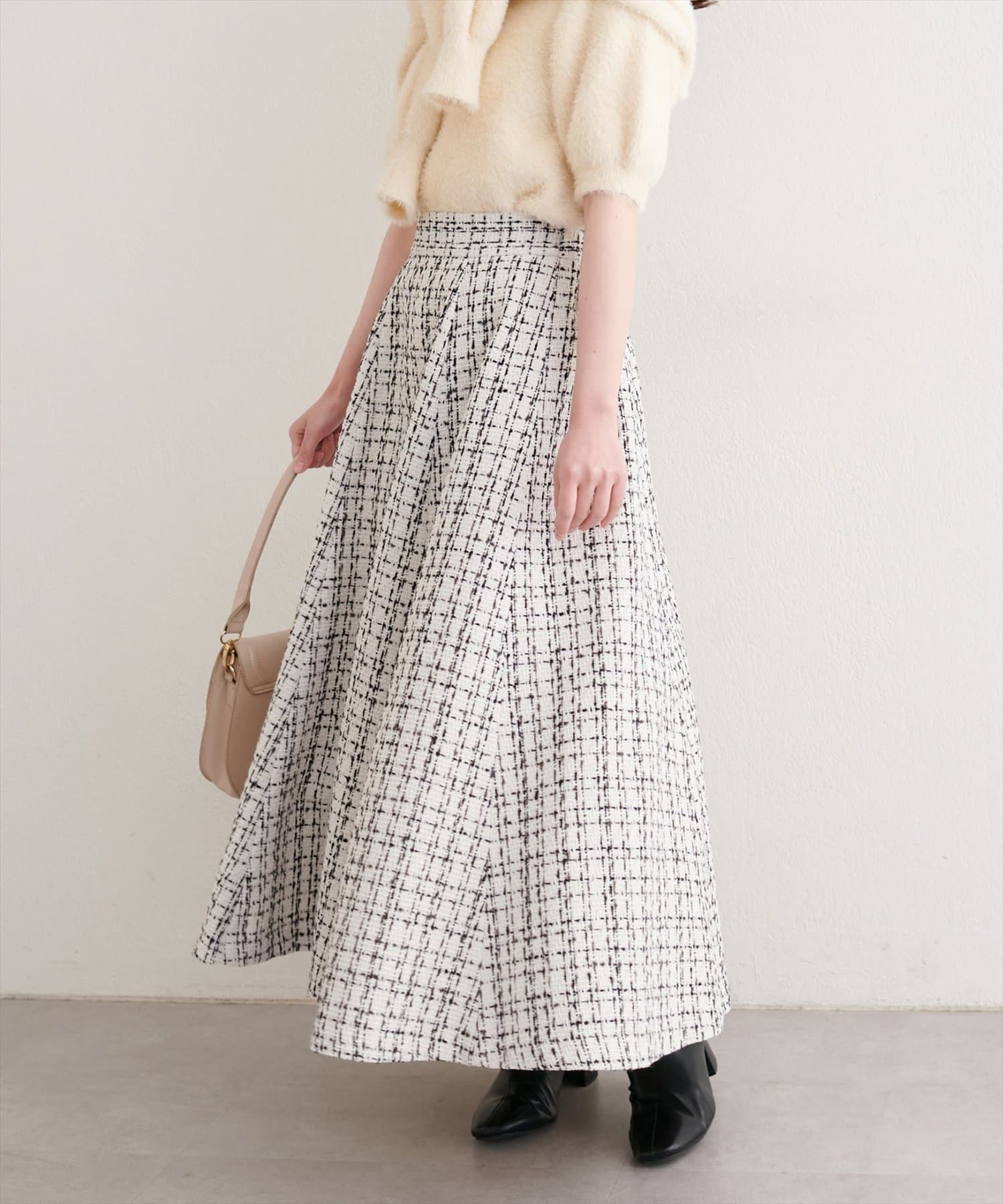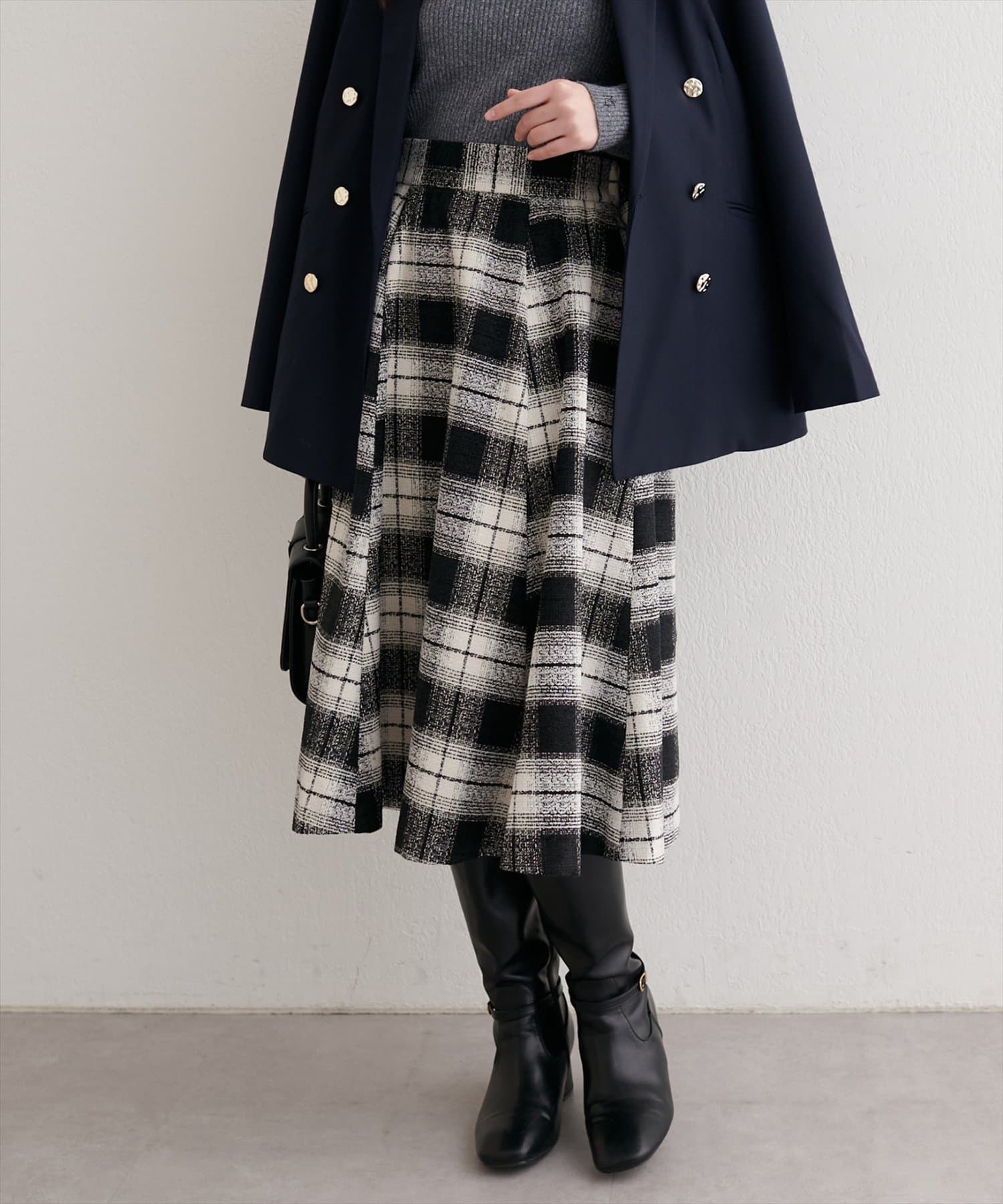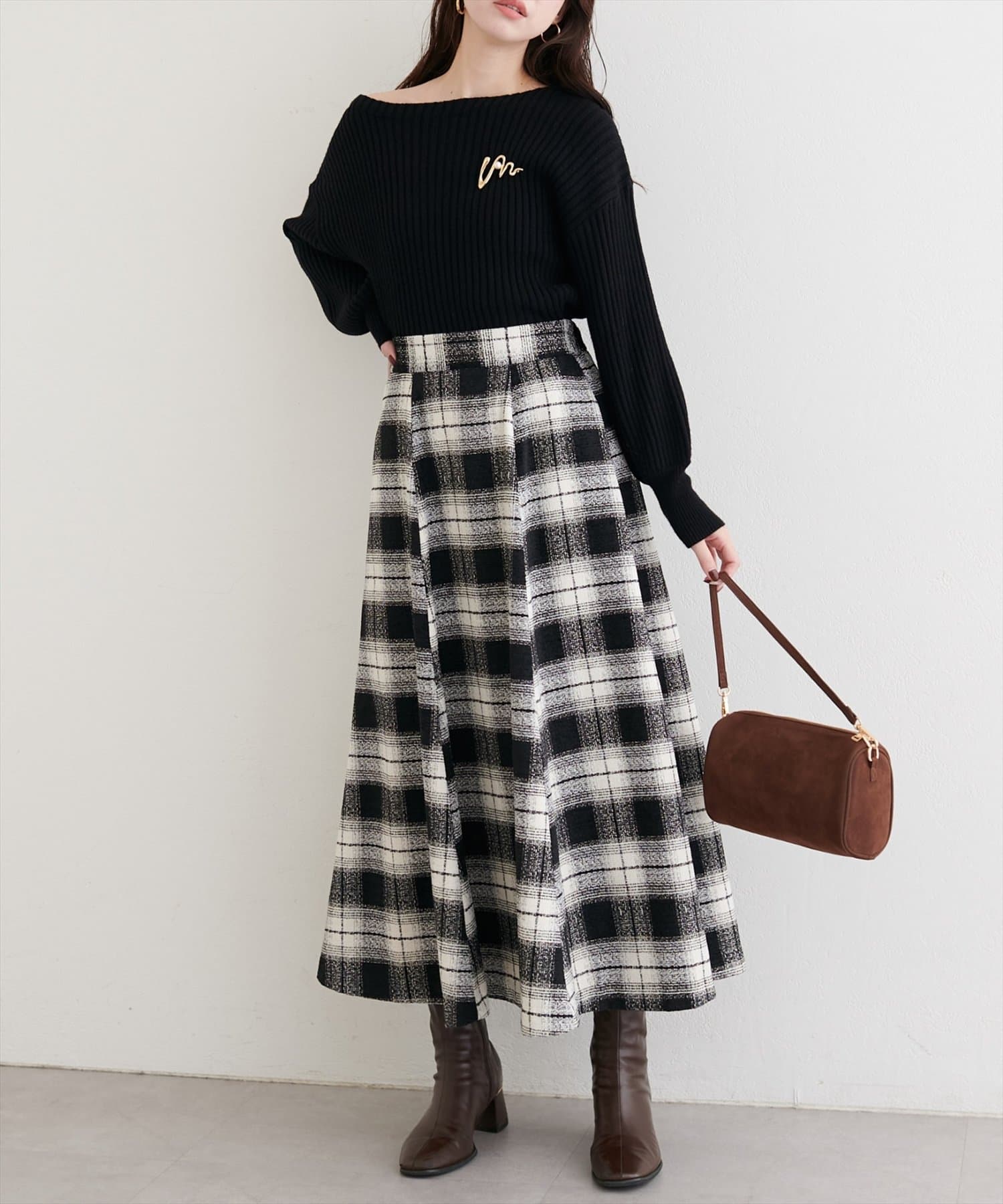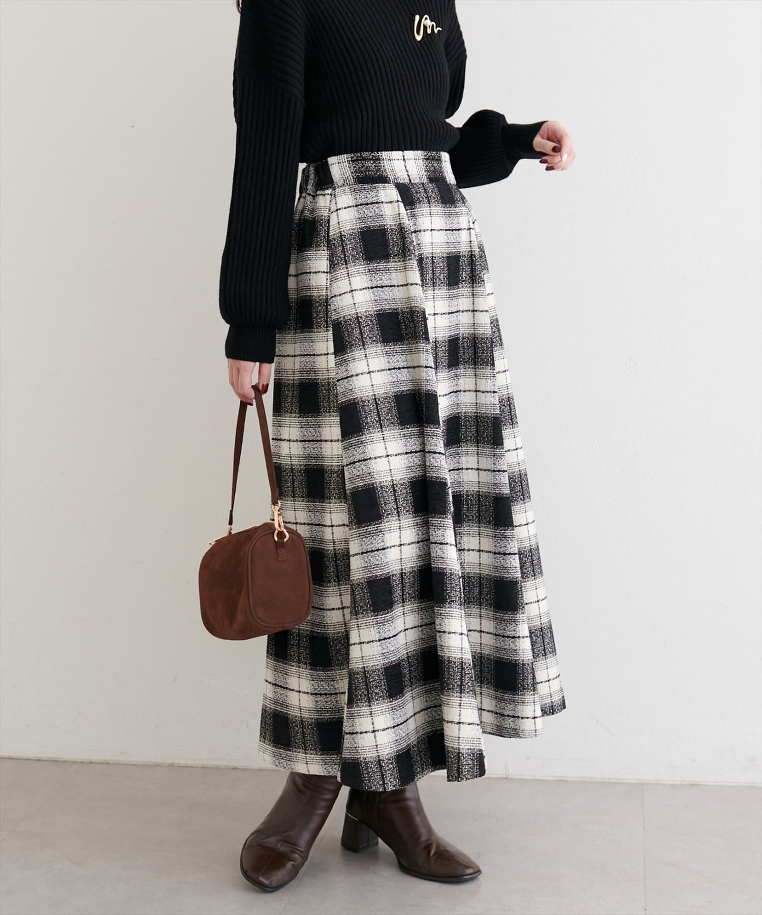 ブラウスやニットと合わせてフェミニンに、Tシャツやカットソーと合わせてカジュアルにと、様々なスタイリングが可能です。