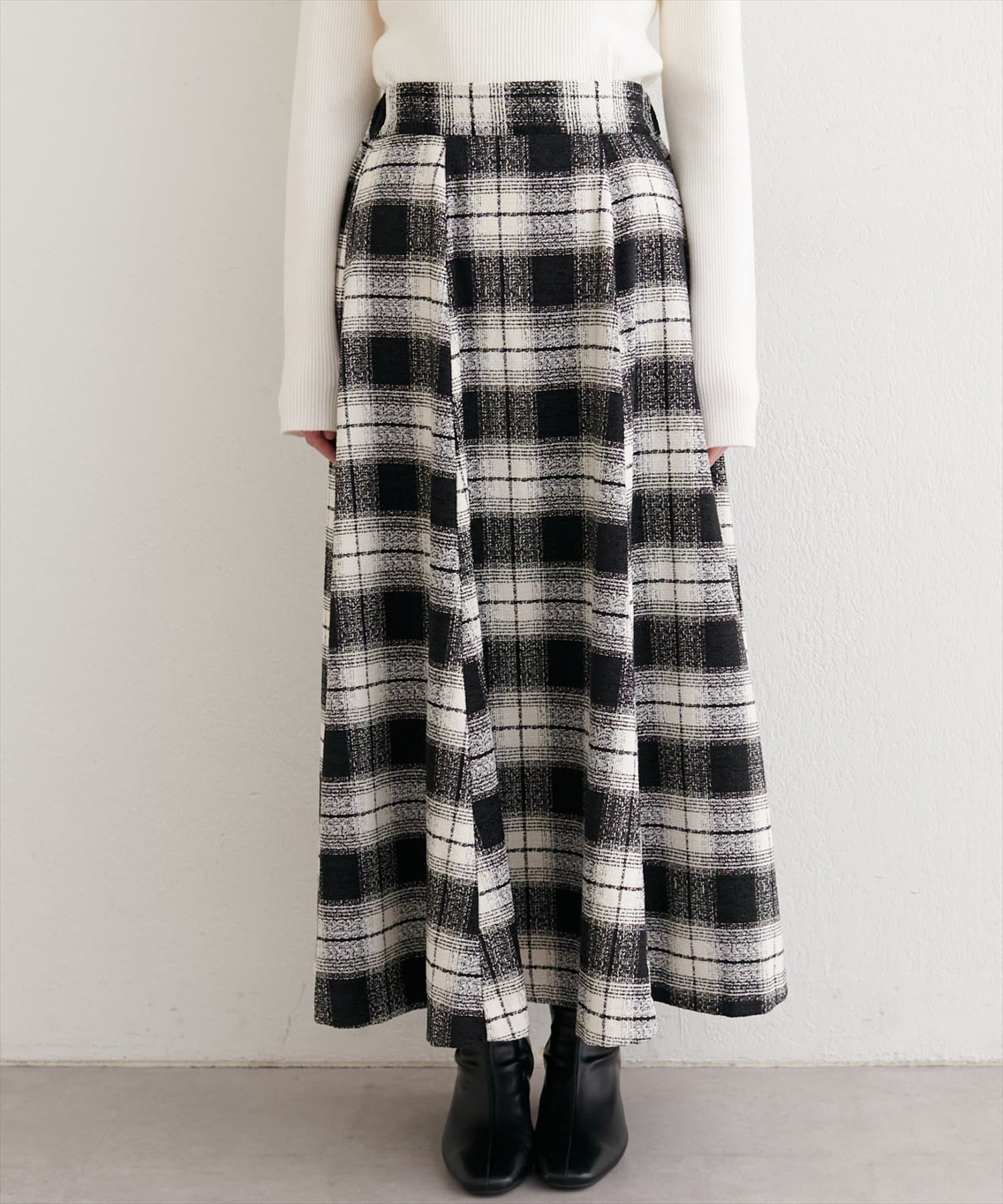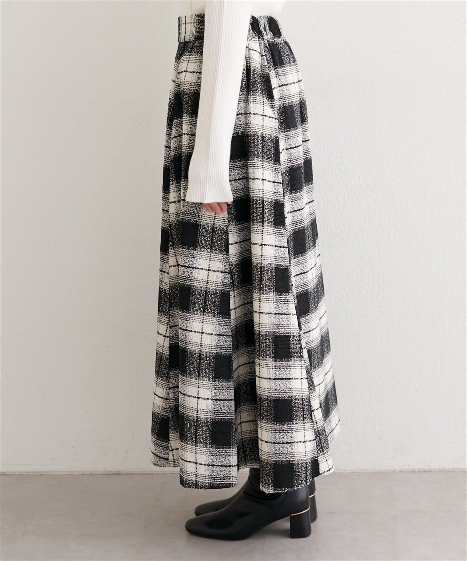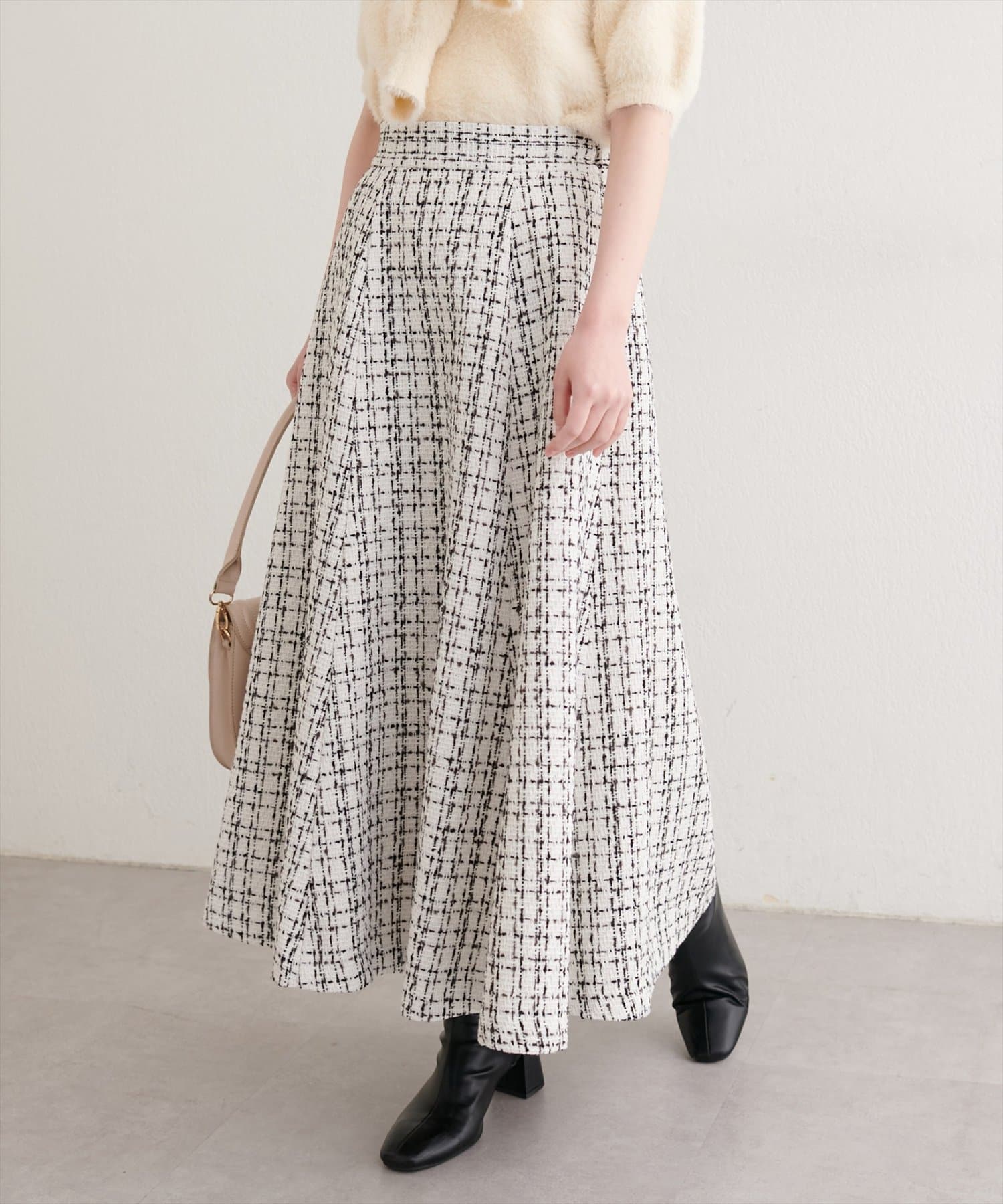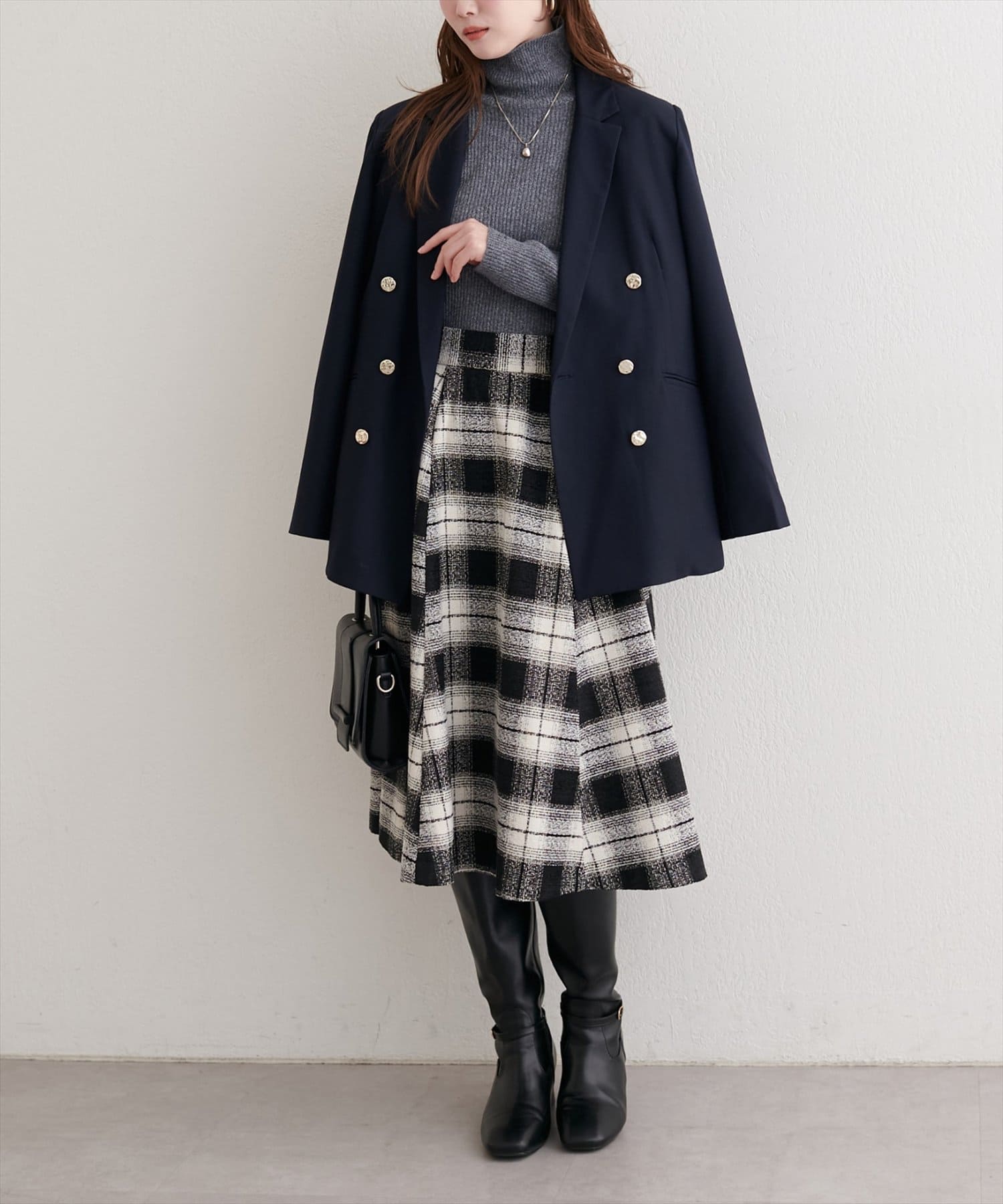 ブラウスやニットと合わせてフェミニンに、Tシャツやカットソーと合わせてカジュアルにと、様々なスタイリングが可能です。