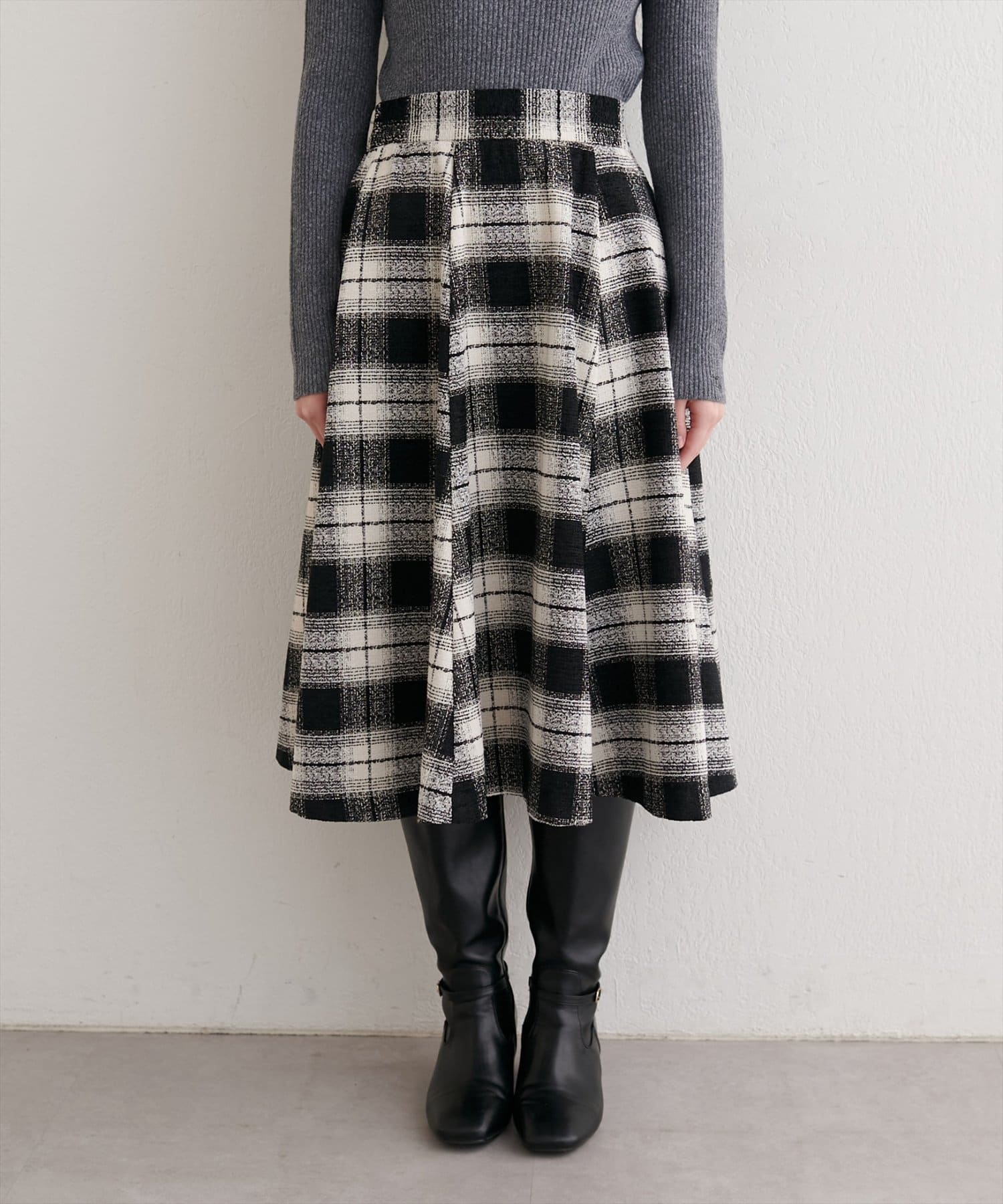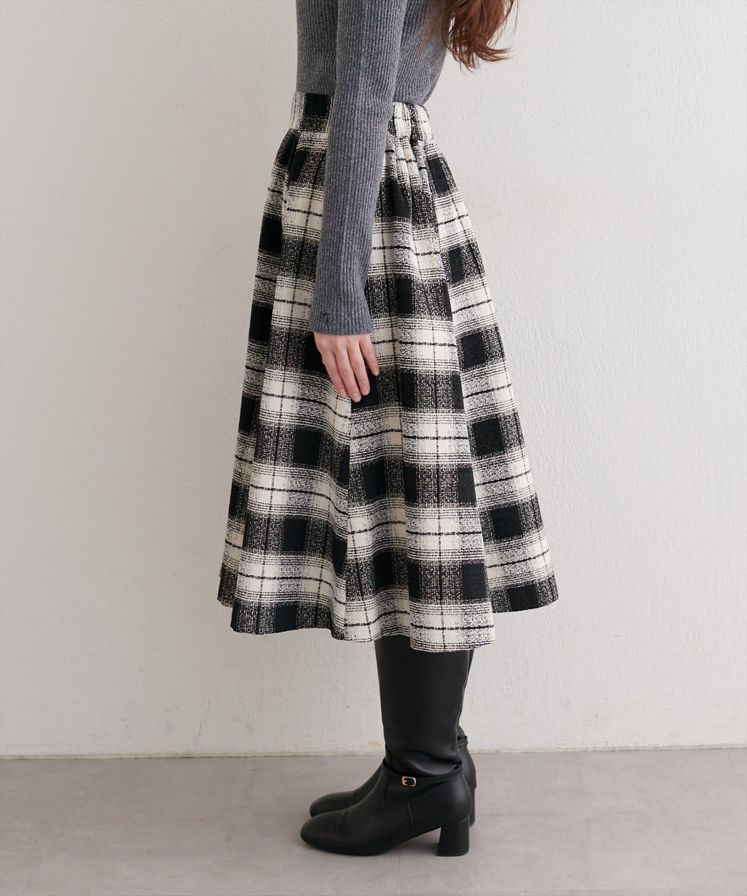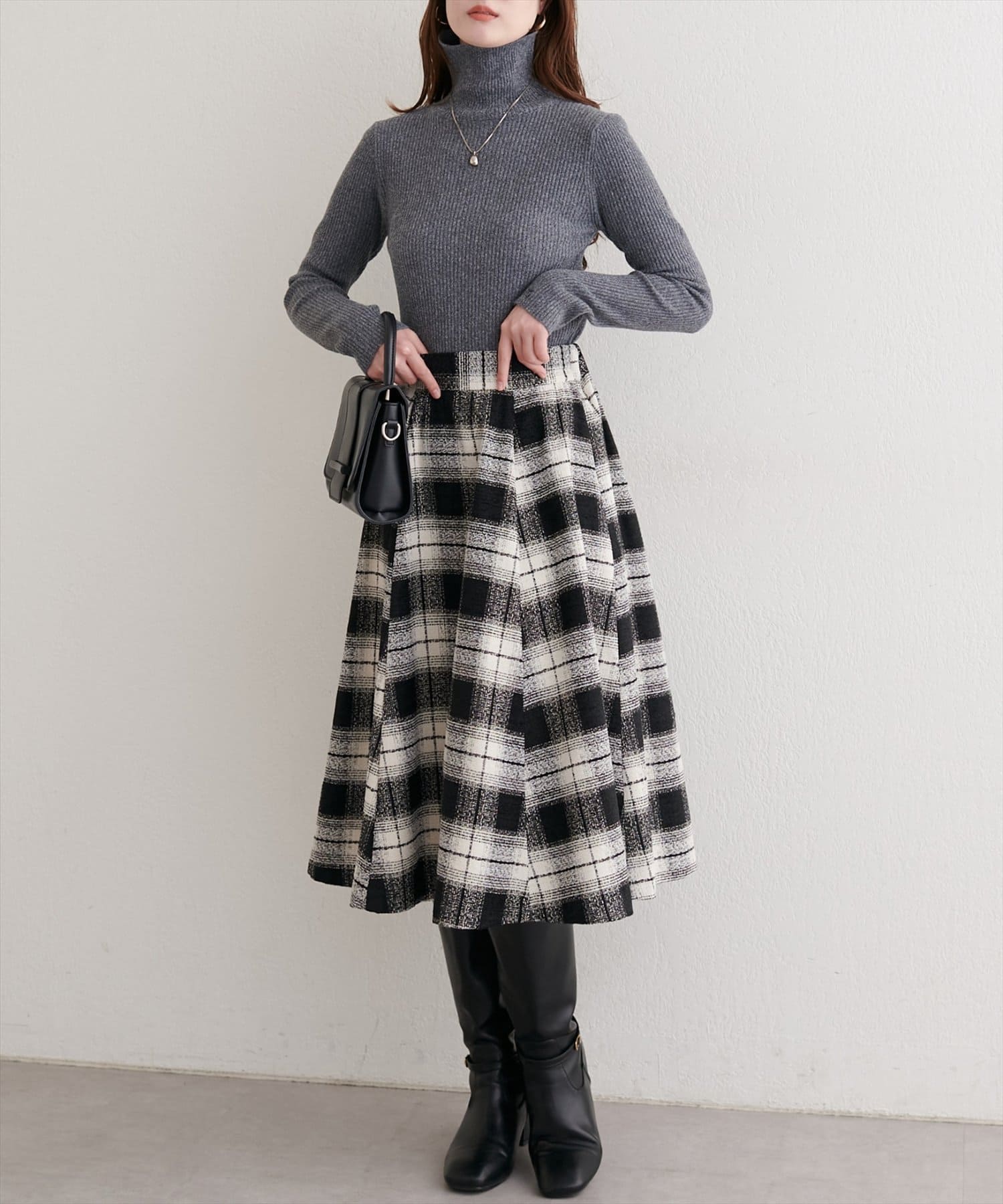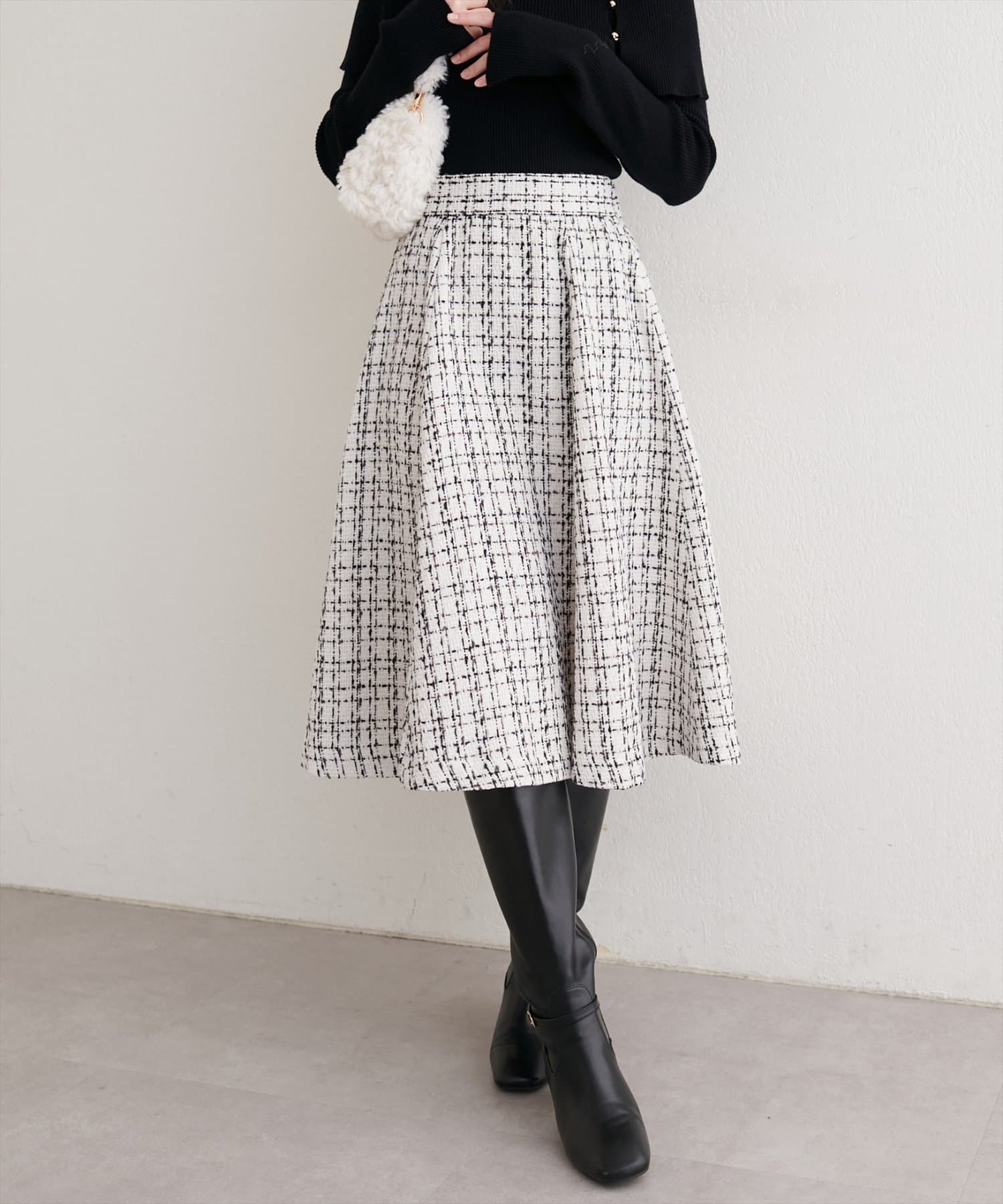ブラウスやニットと合わせてフェミニンに、Tシャツやカットソーと合わせてカジュアルにと、様々なスタイリングが可能です。