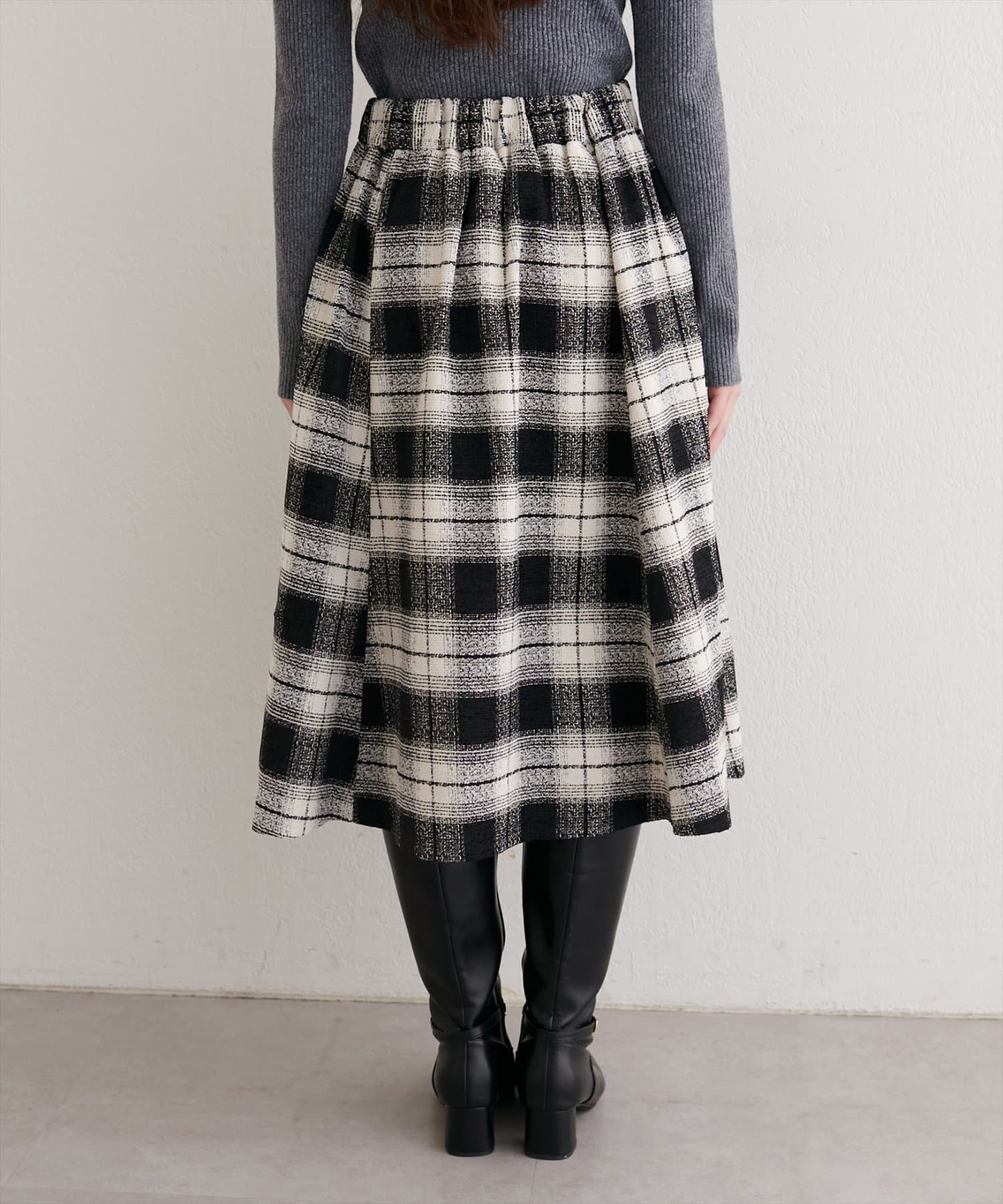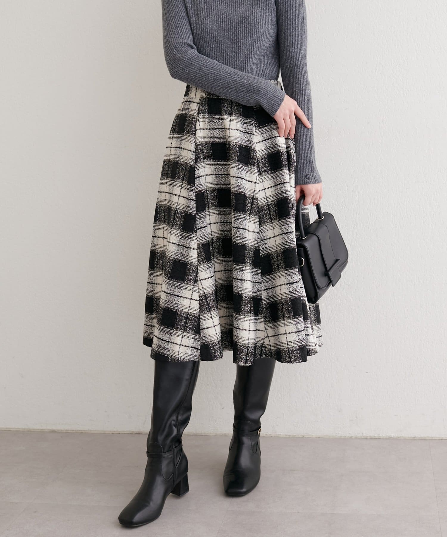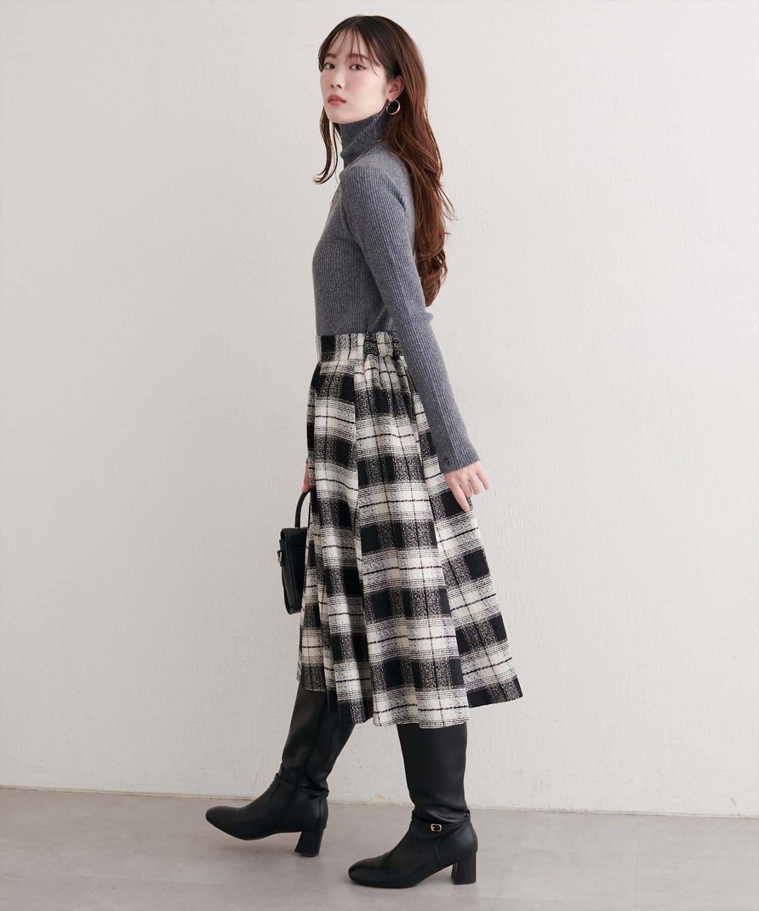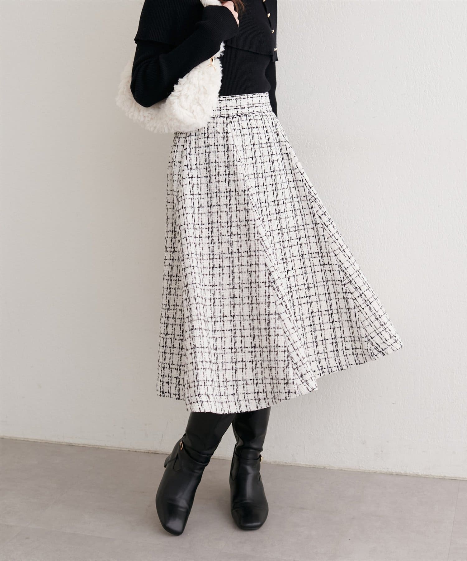 ブラウスやニットと合わせてフェミニンに、Tシャツやカットソーと合わせてカジュアルにと、様々なスタイリングが可能です。