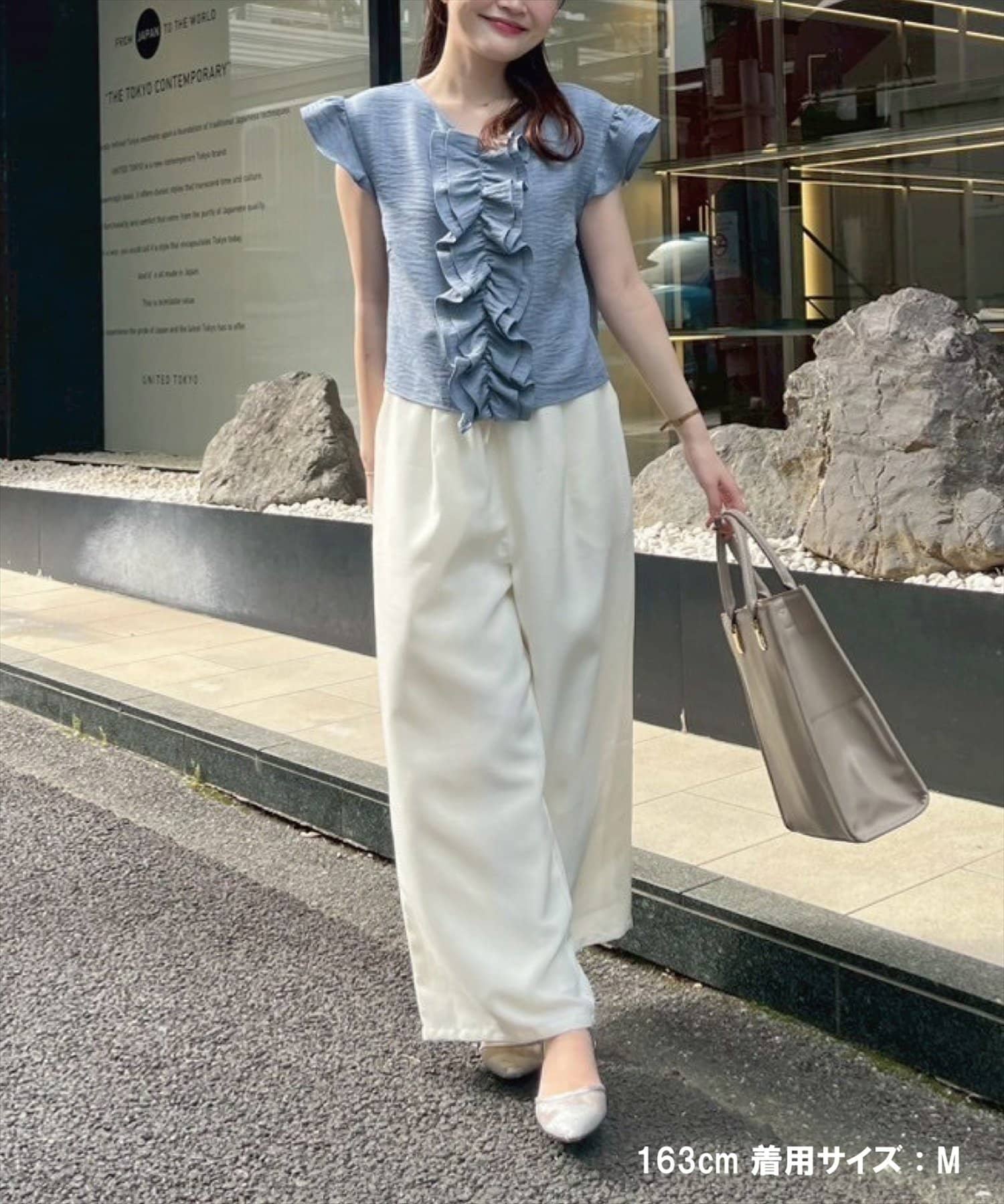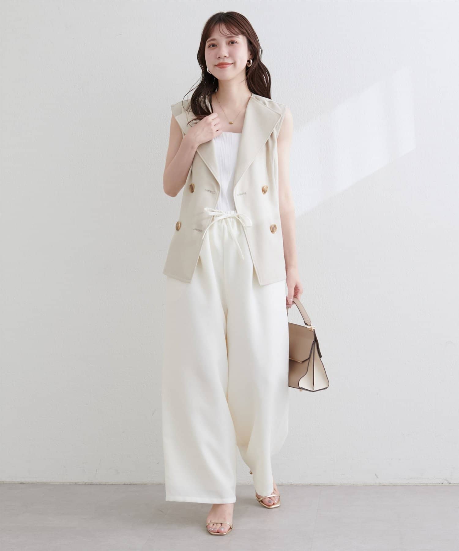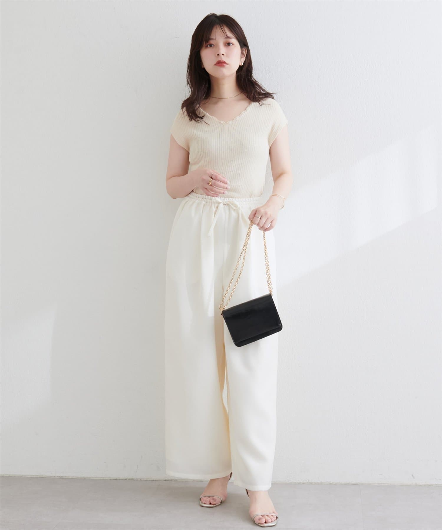カジュアルになりすぎず、きれいなシルエットで上品さをキープ。